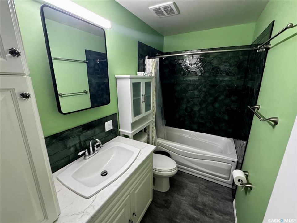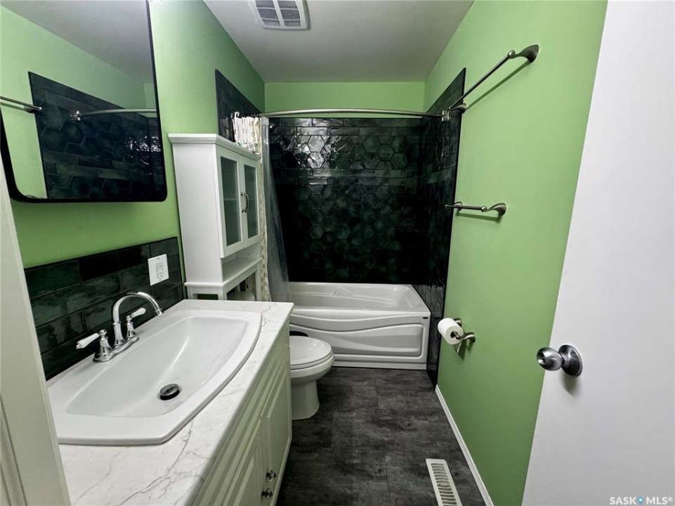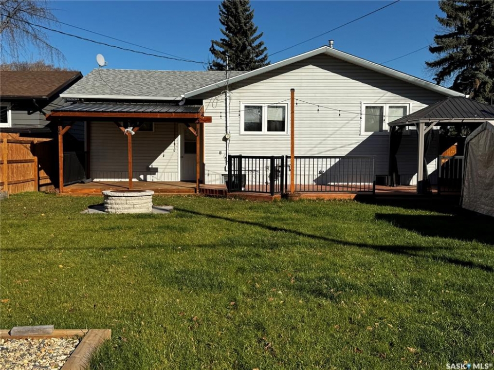 The perfect family home within close walking distance to Preeceville K-12 School. Welcome to 33 3rd Ave NW in Preeceville SK. Driving up to the property you will be welcomed to an asphalt driveway with parking for 2 vehicles. The attached single car garage is heated (natural gas) with direct entry to the home and back yard. Upon entry to the home there is a porch area. A few steps over will take you to the kitchen and dining room area. Upgrades to the kitchen includes flooring, backsplash, and paint. Fridge and stove are included. Relax in the large living room with north facing windows. Down the hall there are two bedrooms with excellent closet space. The 4-piece bathroom completes the main floor living space. The renovated basement features a rec room with bar area and space to have another living room. The bonus room is currently used as a recording studio with extra insulation and thick walls for sound absorption. The third bedroom is in the basement along with a 2-piece bathroom. The utility room has included washer/dryer HE Gas Furnace with Central Air, Gas Water Heater (2016), Water Softener, Sump Pump, and 100 Amp Panel. Moving outdoors, the back yard is fully fenced with access points from the front yard, back alley, and garage. The deck area faces south with 110 square feet covered. and the other 360 square feet open. There is lawn in the front and backyard of this property. Lots of room to add a garden space and for parking of your rec vehicles. Preeceville SK is located 1 hour north of Yorkton SK and surrounded by beautiful lakes. Enjoy year round outdoor activities in and around Preeceville. Preeceville is a full service town with Health Centre, Grocery, Restaurant, Fuel, Hardware, and Specialty services. This property is not for rent or rent to own. All viewings must be booked and viewed with a licensed Saskatchewan real estate agent.