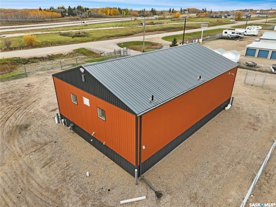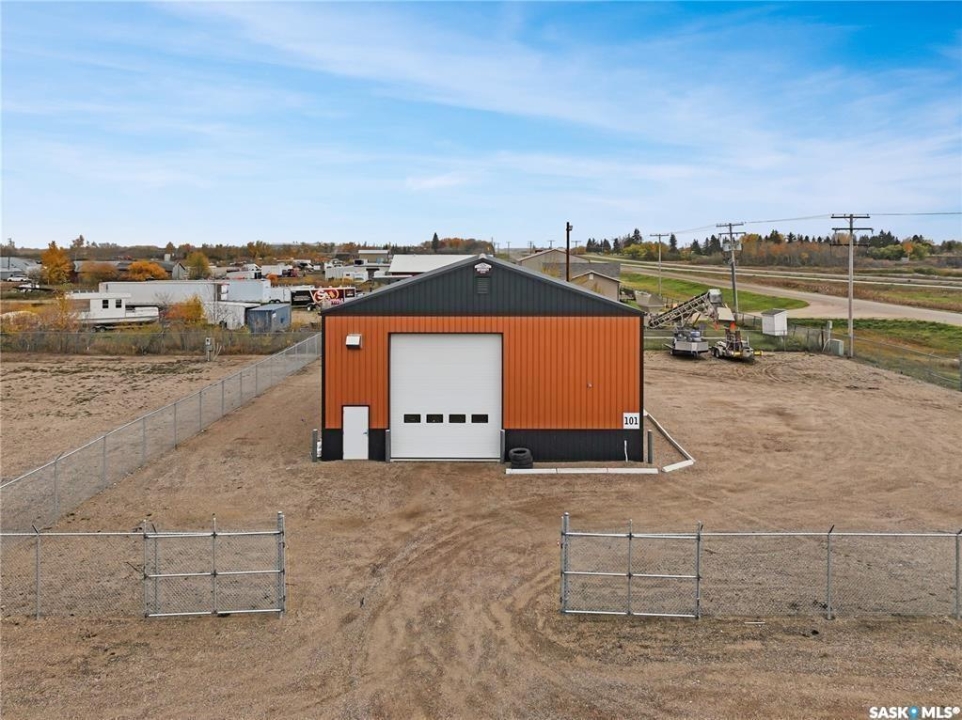 High-Exposure Commercial Property with 2400sqft Shop & FIVE fenced serviced compounds/lots. This 2.54-acre highway-front property offers outstanding visibility and flexibility. It includes a like-new(2021) 2,400sqft commercial shop (40' x 60') with 18' ceilings, a 12' x 16' overhead door, radiant heat, bathroom, kitchenette, and fenced yard. The building is designed for expansion with optional mezzanine space. Also included are five fully fenced, serviced compounds (each 100' x 150') with double-gate access—perfect for storage, equipment, or business operations. All lots are cleared and fully serviced with natural gas, power, and telephone. Ideal for workshops, manufacturing, or retail use, this property delivers prime highway exposure, secure fencing, and move-in-ready infrastructure.