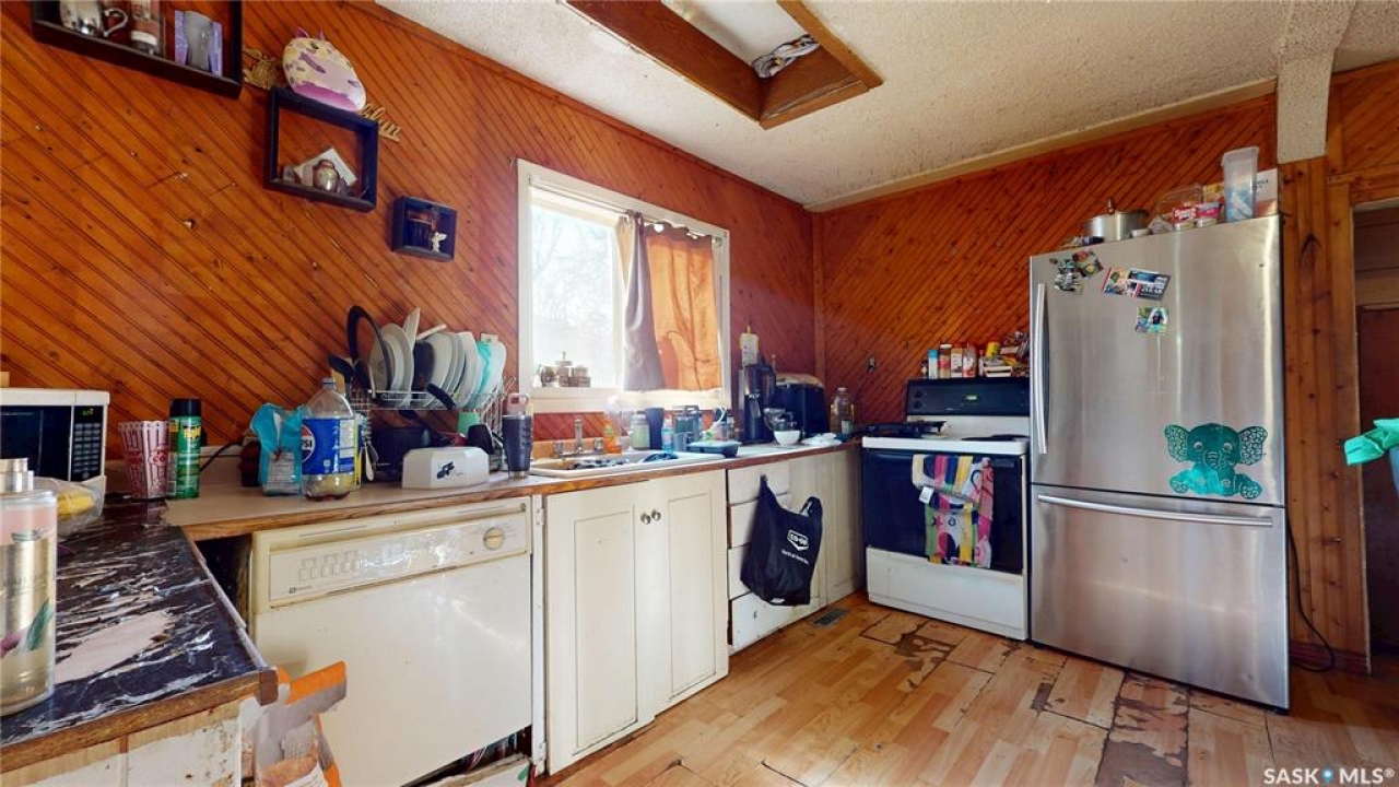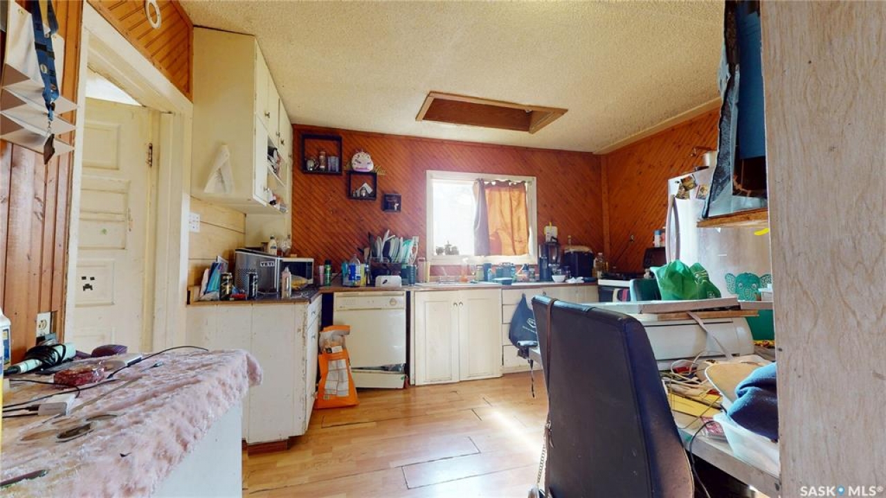 #107 Walsh Street in Maple Creek 30 min to Cypress Hills and 1 hr to Medicine Hat. This home offers affordable home ownership to do a custom renovation to make it your own. The home has been a rental for many years, presently renting as a 2-bedroom; the larger bedroom is only heated with a plug-in electrical. The sq. footage listed for this home has been reduced because of the unheated area. Actual footprint is 1262 sq. ft. Rental property is in short supply in Maple Creek, with rents climbing due to supply and demand. The home should receive upgrades to continue as a good rental, but is a perfect size for a single tenant. If you don't want to have a rental, this location would be a great place for a new single-family or multi-family build. With the Tenant in place, please take the opportunity to view the virtual tour as a preliminary viewing.