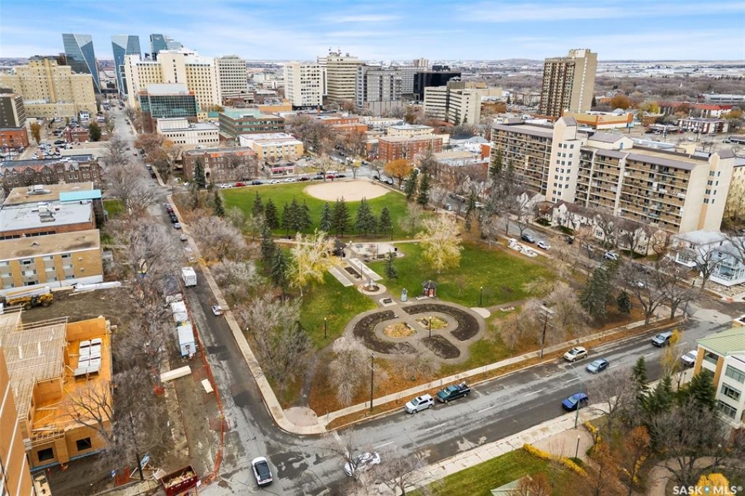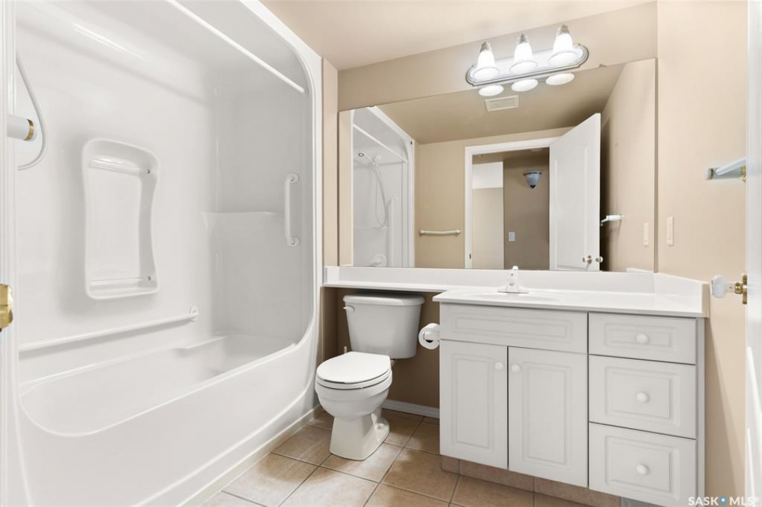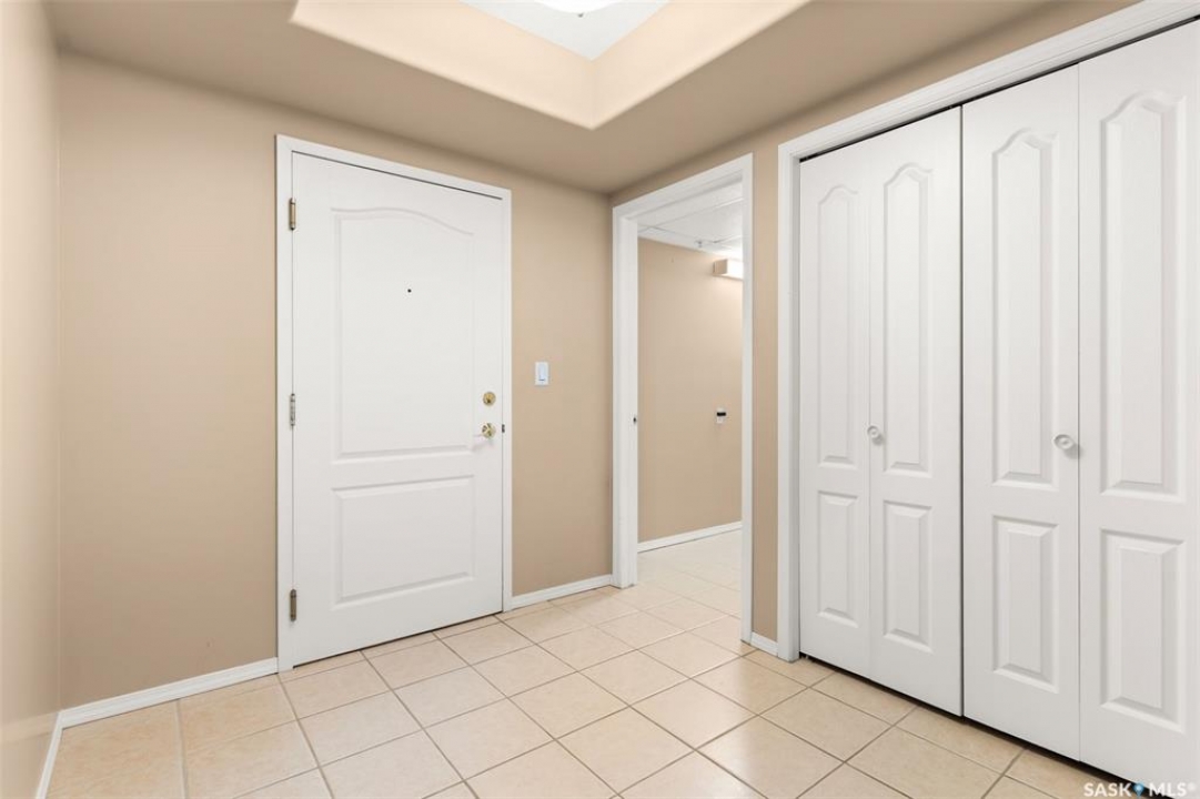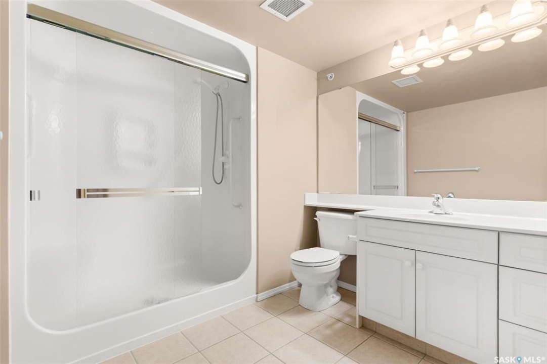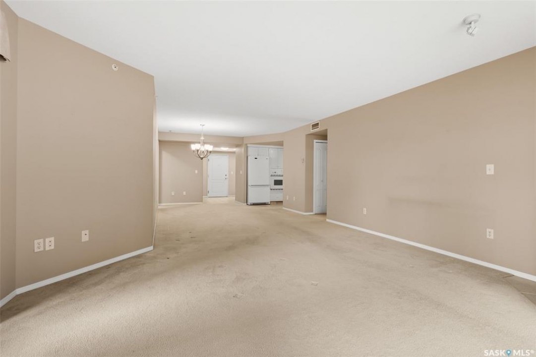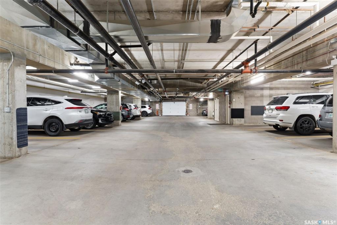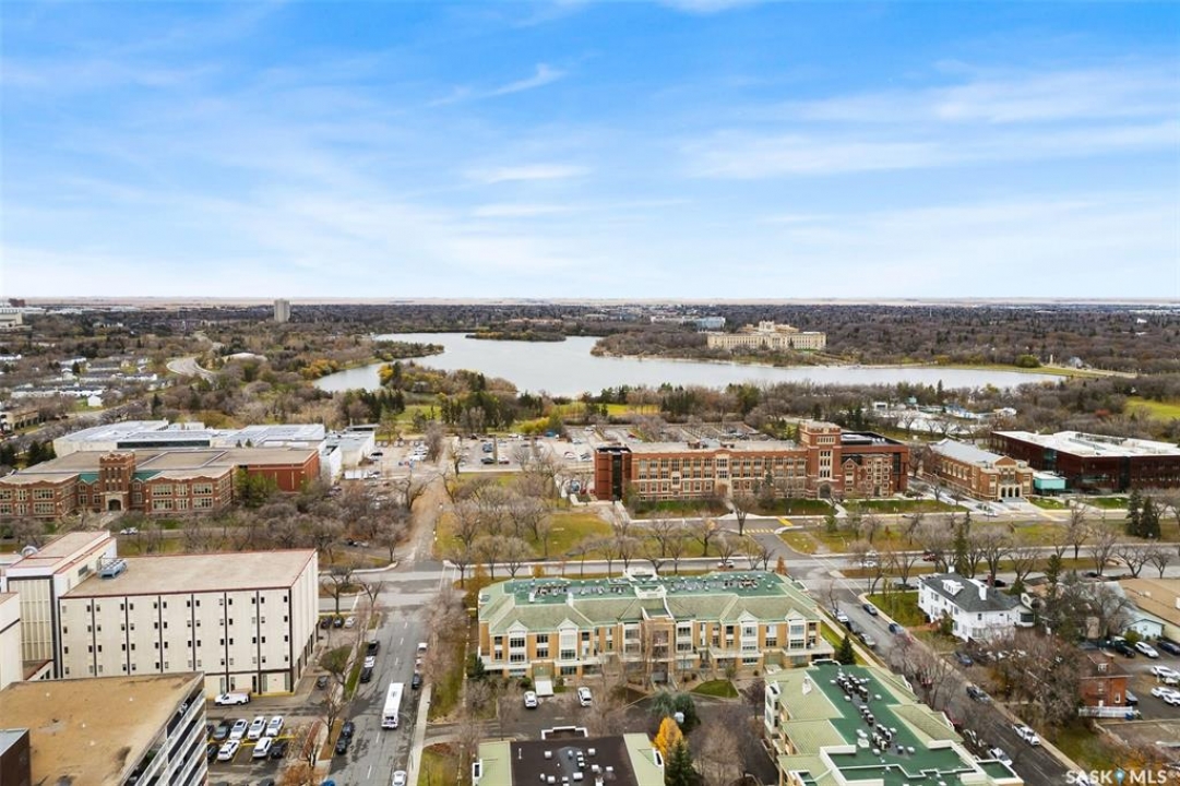 Experience the height of elegant, easy living in this impressive executive condo in the highly sought-after College Park community. Offering 1,338 square feet of thoughtfully designed space, this third-floor unit is filled with natural light and features an open-concept layout ideal for relaxing or entertaining. Step into a grand tiled foyer that leads to the spacious main living area. The inviting living room is anchored by a cozy gas fireplace and a sunlit alcove surrounded by windows—perfect for reading, working, or unwinding. The dining area easily accommodates a large table, while the well-appointed kitchen offers ample cabinetry, white appliances including a built-in oven and cooktop, and generous counter space. A covered east-facing balcony provides a peaceful retreat for morning coffee, complete with a gas BBQ hookup for outdoor dining. The spacious primary suite includes a large walk-in closet and a sleek three-piece ensuite with an oversized shower. A second bedroom offers flexible space for guests or a home office, with a four-piece main bath nearby. Additional conveniences include in-suite laundry with shelving, custom blinds, central air, and elevator access. This condo also includes a 120-square-foot secure storage room and a heated underground parking stall (#31). Residents enjoy an amenities room with games and fitness equipment, a parkade car wash, off-street visitor parking, and a same-floor garbage chute. Steps from Wascana Park, shopping, dining, and essential services, it's also within walking distance to downtown, Darke Hall, and the refurbished Globe Theatre. Enjoy refined urban living at its best—condo fees cover heat, water, sewer, garbage/recycling, exterior maintenance, lawn care, snow removal, building insurance, and reserve fund contributions. Contact your realtor for more information or a private tour.
