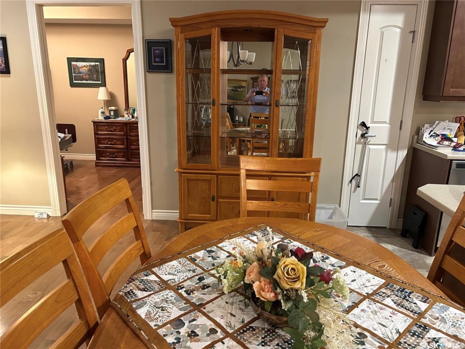 Bright & beautiful move in ready adult oriented condo in friendly Rosthern. You can tame the Saskatchewan weather when you drive into your heated underground parking and take the elevator to your 2nd floor condo. East facing means you can enjoy the bright morning sun and not miss a sunrise. 9' ceilings and beautiful maple hardwood floors throughout the living, dining and bedrooms. Retire to friendly Rosthern with so many amenities. Food services are available in the building at a cost. Comes with laundry in suite. Call today.