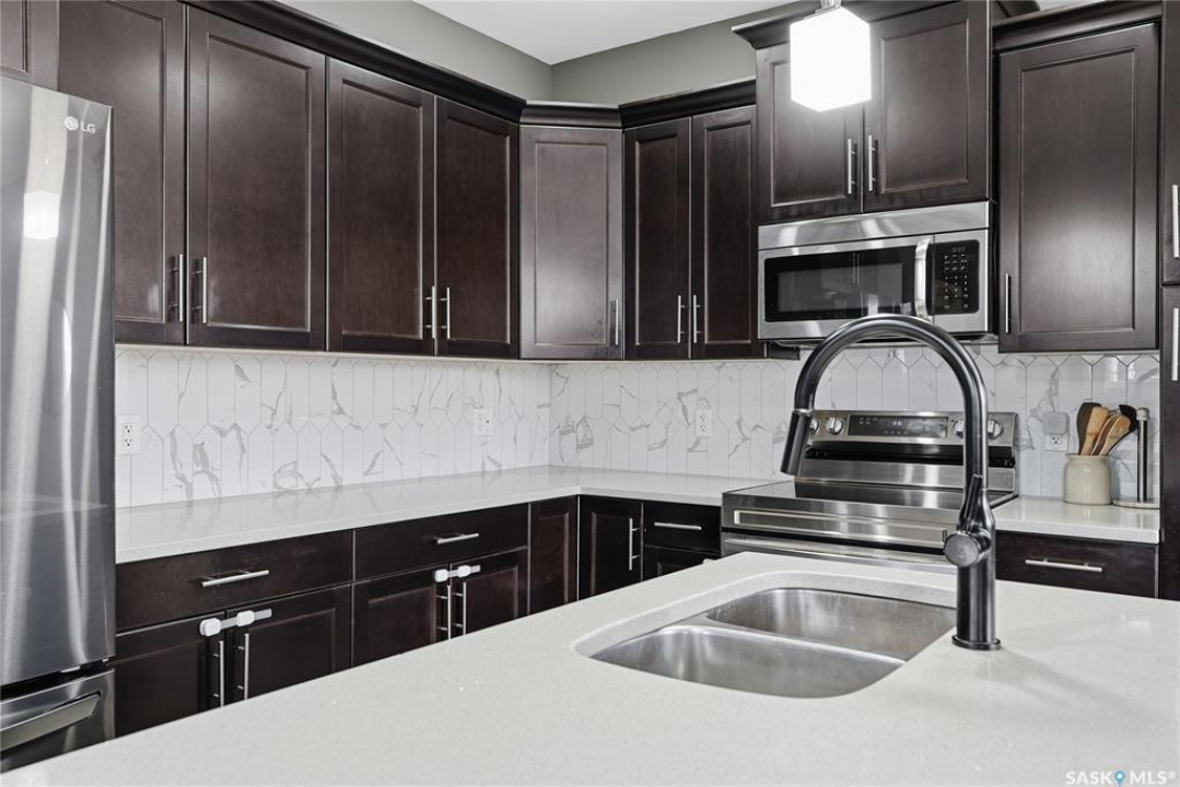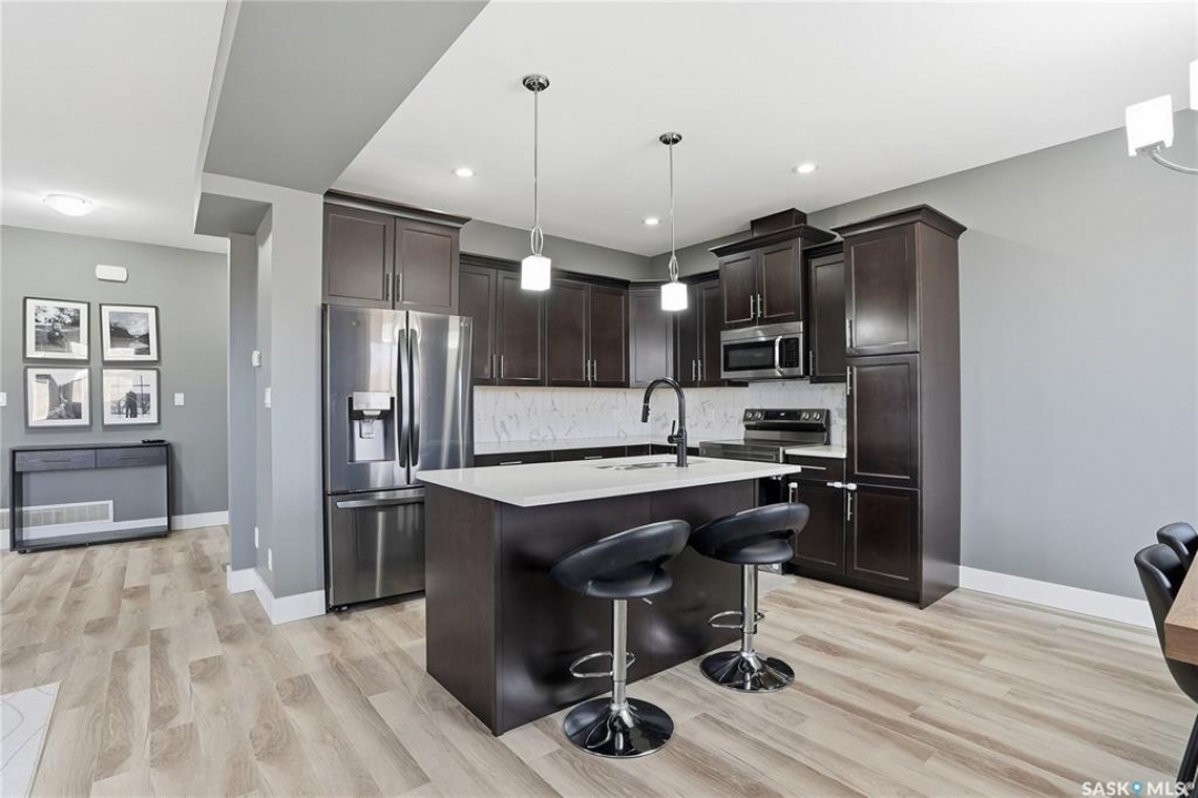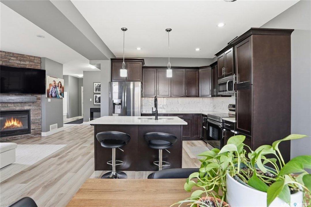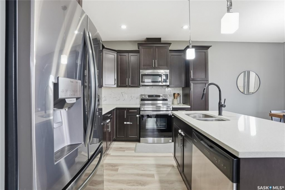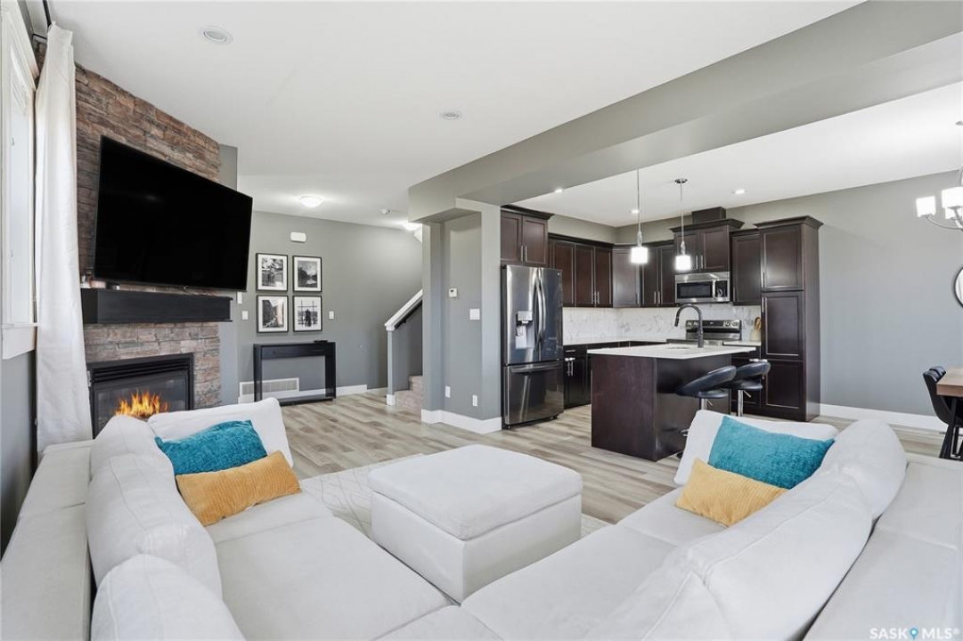 Welcome to this stunning fully developed corner unit townhouse offering 1,643 sq. ft. of beautifully designed living space in the thriving city of Warman. This modern home combines luxury, comfort, and functionality—perfect for families or anyone seeking a move-in ready property. Step inside to an open-concept main floor featuring a rock-faced gas fireplace, large windows for natural light, and a designer kitchen complete with maple soft-close cabinets and drawers, quartz countertops, stainless steel appliances, a center island with built-in sink and dishwasher and direct access to your covered deck and private backyard. Upstairs, you'll find a convenient second-floor laundry area, a massive primary suite with walk-in closet, and a spa-like ensuite boasting his-and-hers sinks, a soaker tub, and a tiled glass shower. There are two additional bedrooms and a 4-piece bath to complete the upper level. The fully finished basement offers even more living space with a large family room, fourth bedroom, and an additional 4-piece bathroom—perfect for guests or a teenager's retreat. Enjoy outdoor living in your fully fenced private backyard with a covered deck—and no neighbors behind you! A heated double garage adds convenience and comfort year-round. Don't miss out on this beautiful, move-in ready town home in one of Warman's most desirable locations. Contact for a private viewing!