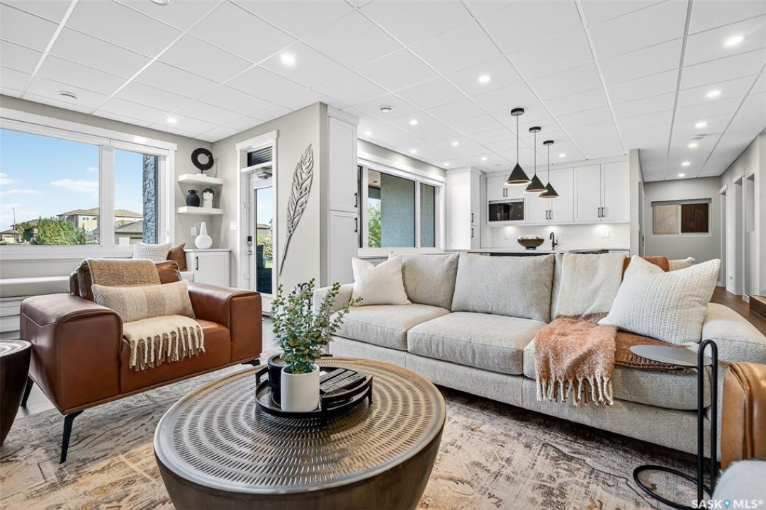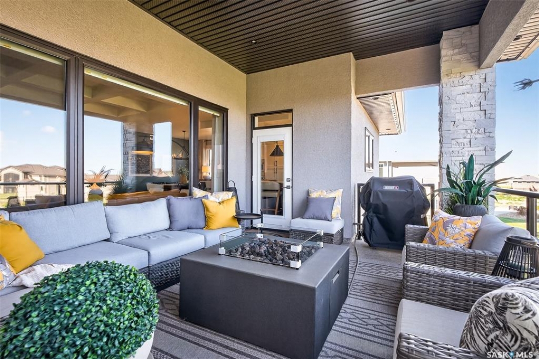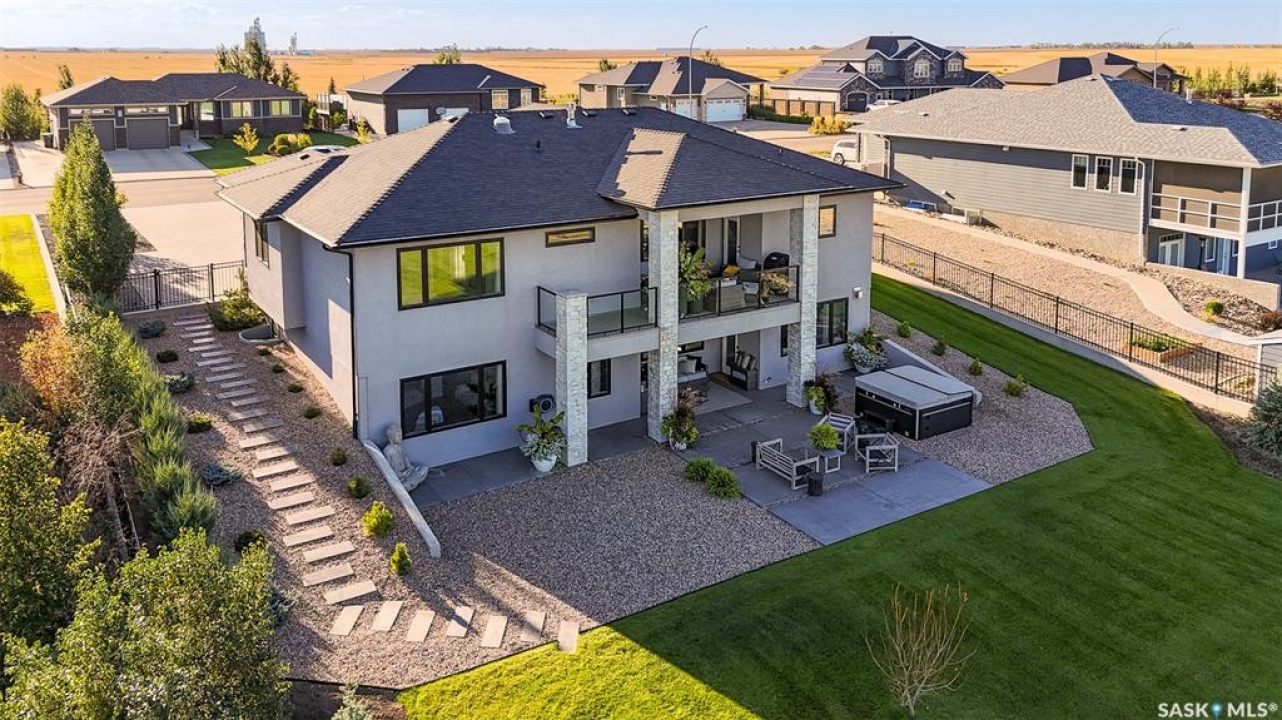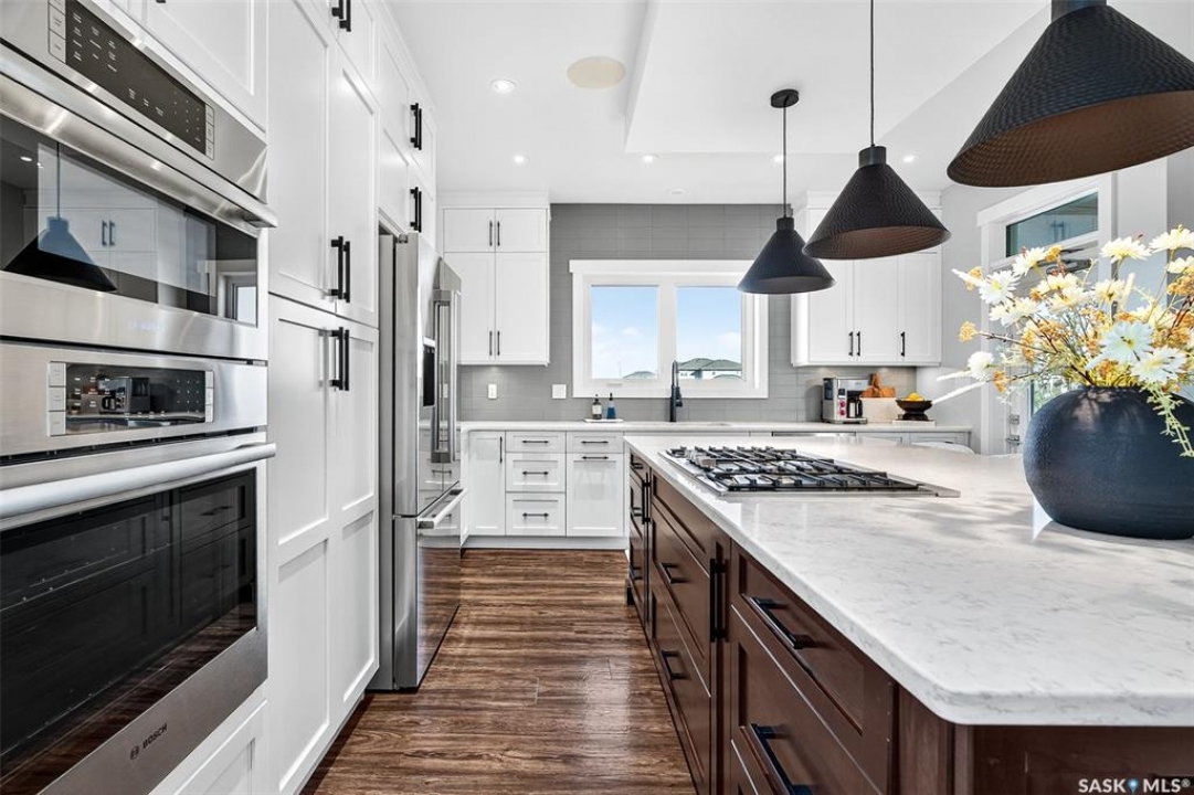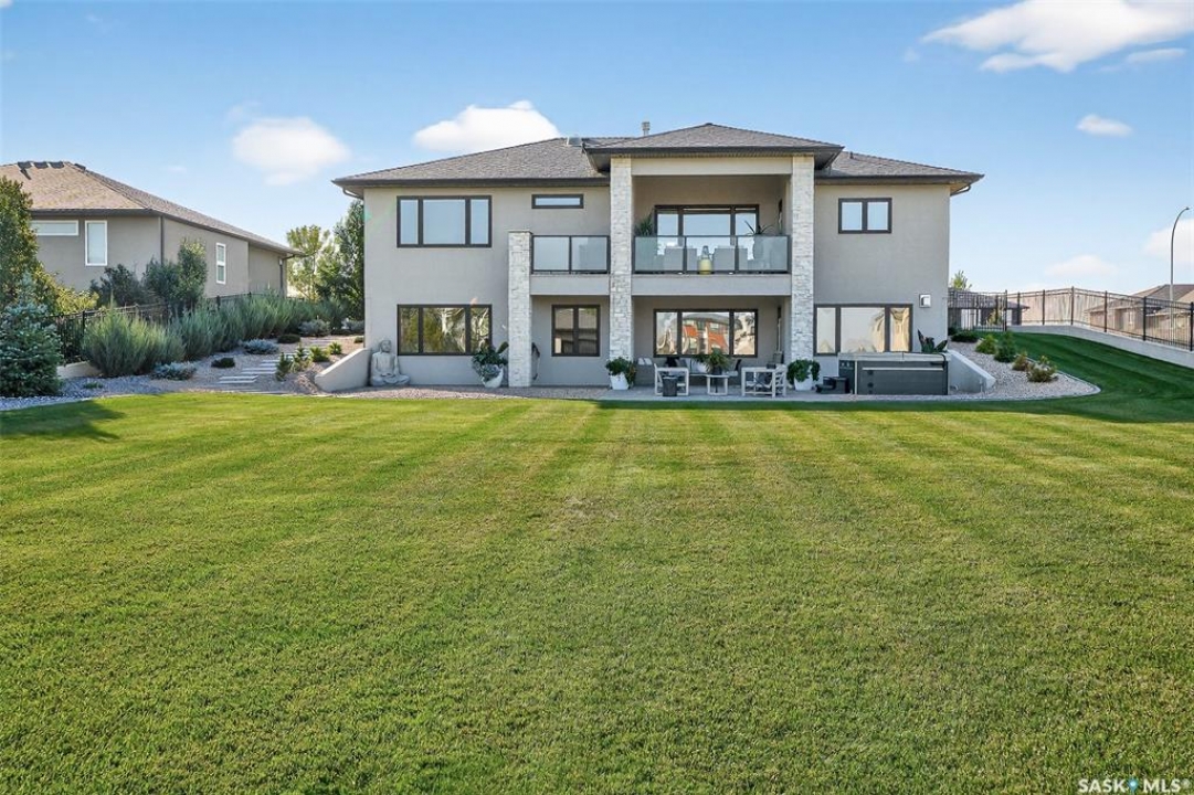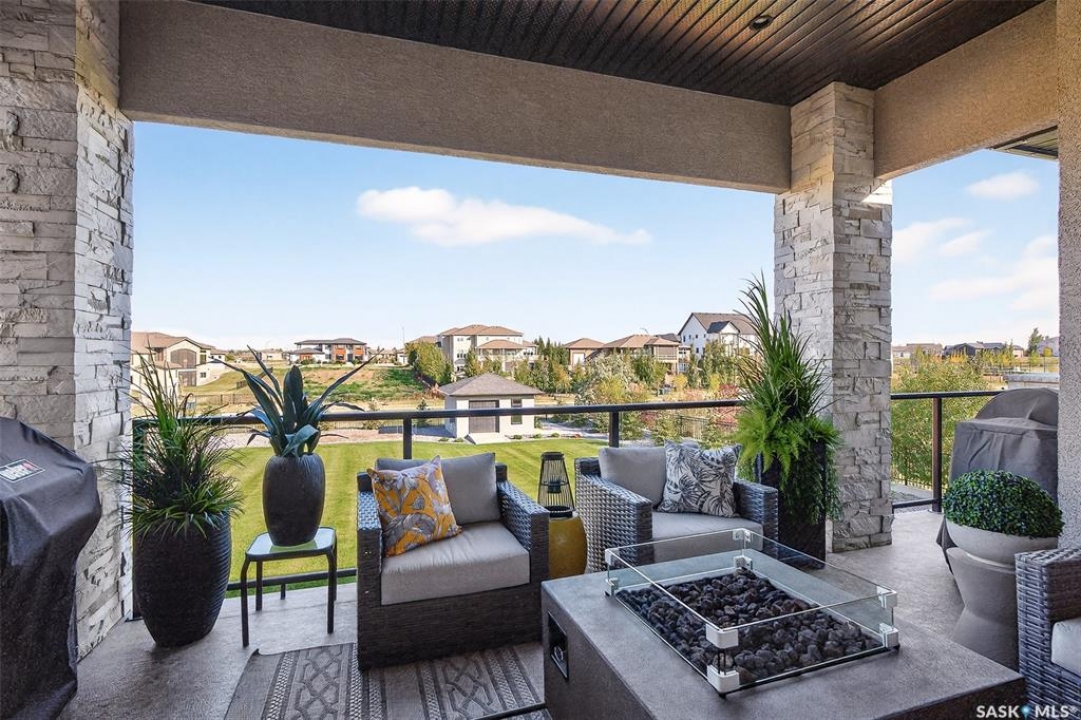 A truly exceptional residence nestled in the prestigious Estate of Iron Bridge on the edge of Moose Jaw's city limits. This stunning home is a masterpiece of thoughtfully designed living space perfectly blending luxury & functionality throughout. The expansive yard includes UGS & drip lines to all plantings ensuring a vibrant, low maintenance outdoor space & serene ambiance with Gemstone lighting throughout the exterior creating a warm, inviting glow at night – no more hanging holiday lights! Stepping inside this meticulously crafted home through the exquisite foyer, the main level boasts over 1,800 sq ft of open concept living perfect for relaxing or entertaining guests. The Kitchen features sleek, sophisticated cabinetry with a high-end appliance package & oversize island – a true chef's delight! With 2 laundry spaces (1 on each level!), ample storage & a mudroom with lockers, practicality meets comfort effortlessly. You will find 6 Bedrooms (currently 1 used for home gym & another for dedicated office) throughout the home (3 on each level) & 4 out of the 6 rooms have walk-in closets. The generous Primary Suite features a fireplace, walk-in closet & Ensuite - Imagine waking up every morning to THIS view! The Walk-Out Basement extends the living space dramatically with a large Family Room featuring a gas fireplace, wet bar with island for entertaining & additional storage all heated by in-floor systems for year round coziness (also in key areas such as Entryway, Bathrooms & Kitchen!). The triple car garage is equally impressive with built-in storage, in-floor heating, wiring for an electric vehicle & welder & a convenient sink for quick clean up after time in the yard. This spectacular property exemplifies luxury living with countless upgrades & attention to detail. A rare opportunity to own a truly special home in one of Moose Jaw's finest neighborhoods! Reach out today to schedule your private tour & experience all that this outstanding residence has to offer.