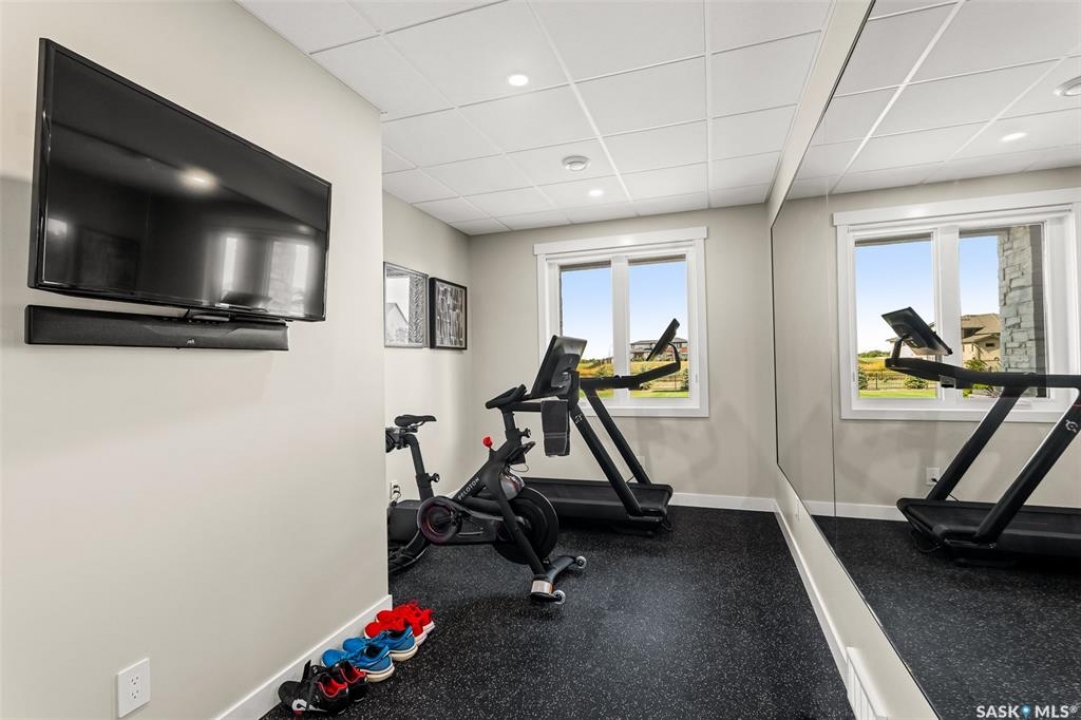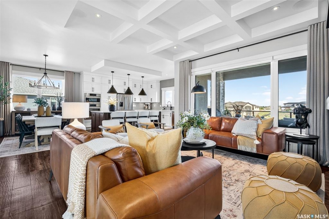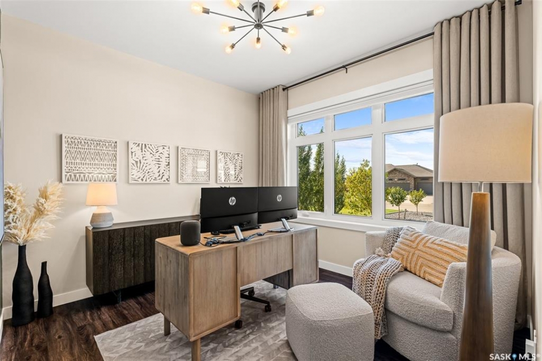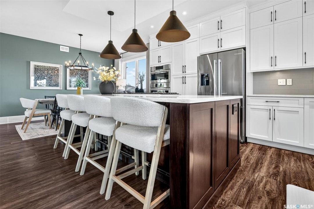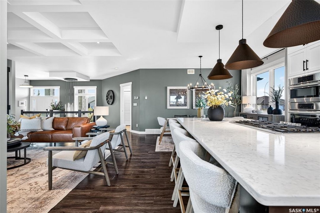A truly exceptional residence nestled in the prestigious Estate of Iron Bridge on the edge of Moose Jaw's city limits. This stunning home is a masterpiece of thoughtfully designed living space perfectly blending luxury & functionality throughout. The expansive yard includes UGS & drip lines to all plantings ensuring a vibrant, low maintenance outdoor space & serene ambiance with Gemstone lighting throughout the exterior creating a warm, inviting glow at night – no more hanging holiday lights! Stepping inside this meticulously crafted home through the exquisite foyer, the main level boasts over 1,800 sq ft of open concept living perfect for relaxing or entertaining guests. The Kitchen features sleek, sophisticated cabinetry with a high-end appliance package & oversize island – a true chef's delight! With 2 laundry spaces (1 on each level!), ample storage & a mudroom with lockers, practicality meets comfort effortlessly. You will find 6 Bedrooms (currently 1 used for home gym & another for dedicated office) throughout the home (3 on each level) & 4 out of the 6 rooms have walk-in closets. The generous Primary Suite features a fireplace, walk-in closet & Ensuite - Imagine waking up every morning to THIS view! The Walk-Out Basement extends the living space dramatically with a large Family Room featuring a gas fireplace, wet bar with island for entertaining & additional storage all heated by in-floor systems for year round coziness (also in key areas such as Entryway, Bathrooms & Kitchen!). The triple car garage is equally impressive with built-in storage, in-floor heating, wiring for an electric vehicle & welder & a convenient sink for quick clean up after time in the yard. This spectacular property exemplifies luxury living with countless upgrades & attention to detail. A rare opportunity to own a truly special home in one of Moose Jaw's finest neighborhoods! Reach out today to schedule your private tour & experience all that this outstanding residence has to offer.
