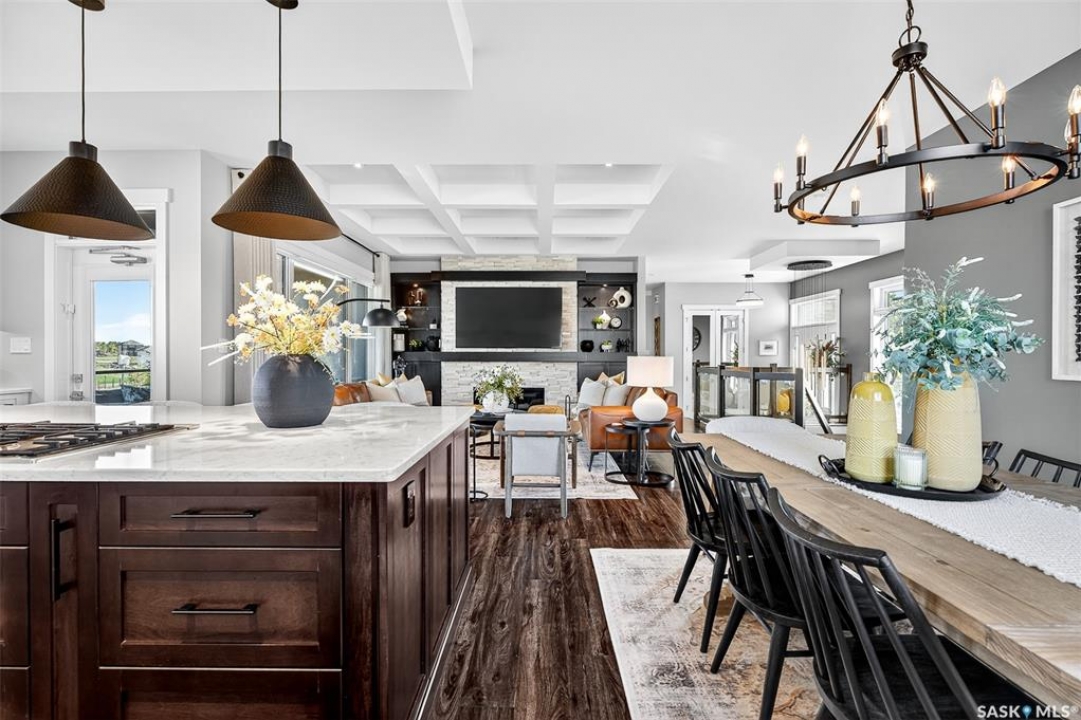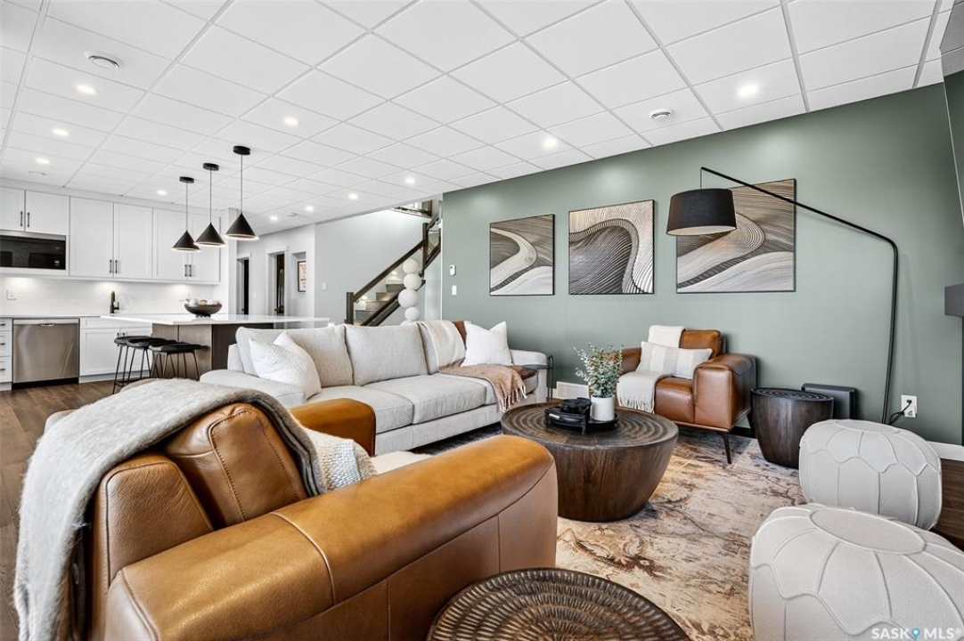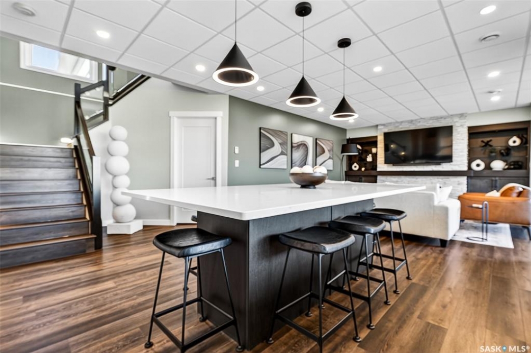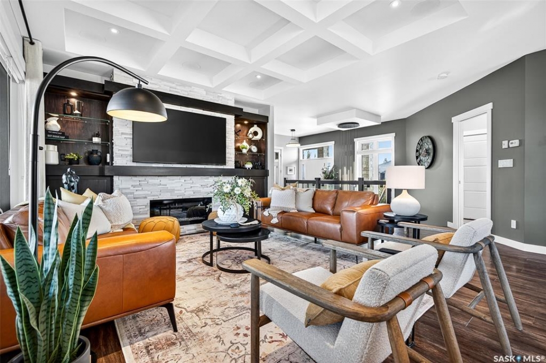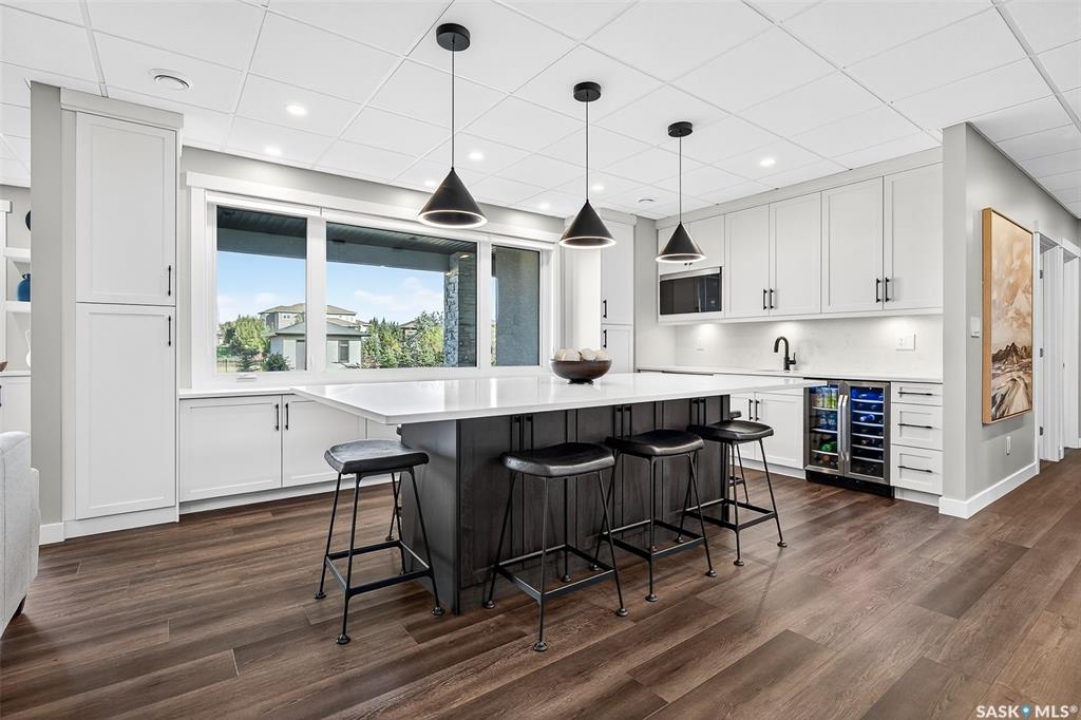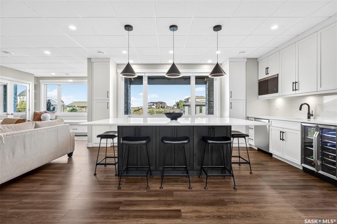 A truly exceptional residence nestled in the prestigious Estate of Iron Bridge on the edge of Moose Jaw's city limits. This stunning home is a masterpiece of thoughtfully designed living space perfectly blending luxury & functionality throughout. The expansive yard includes UGS & drip lines to all plantings ensuring a vibrant, low maintenance outdoor space & serene ambiance with Gemstone lighting throughout the exterior creating a warm, inviting glow at night – no more hanging holiday lights! Stepping inside this meticulously crafted home through the exquisite foyer, the main level boasts over 1,800 sq ft of open concept living perfect for relaxing or entertaining guests. The Kitchen features sleek, sophisticated cabinetry with a high-end appliance package & oversize island – a true chef's delight! With 2 laundry spaces (1 on each level!), ample storage & a mudroom with lockers, practicality meets comfort effortlessly. You will find 6 Bedrooms (currently 1 used for home gym & another for dedicated office) throughout the home (3 on each level) & 4 out of the 6 rooms have walk-in closets. The generous Primary Suite features a fireplace, walk-in closet & Ensuite - Imagine waking up every morning to THIS view! The Walk-Out Basement extends the living space dramatically with a large Family Room featuring a gas fireplace, wet bar with island for entertaining & additional storage all heated by in-floor systems for year round coziness (also in key areas such as Entryway, Bathrooms & Kitchen!). The triple car garage is equally impressive with built-in storage, in-floor heating, wiring for an electric vehicle & welder & a convenient sink for quick clean up after time in the yard. This spectacular property exemplifies luxury living with countless upgrades & attention to detail. A rare opportunity to own a truly special home in one of Moose Jaw's finest neighborhoods! Reach out today to schedule your private tour & experience all that this outstanding residence has to offer.
