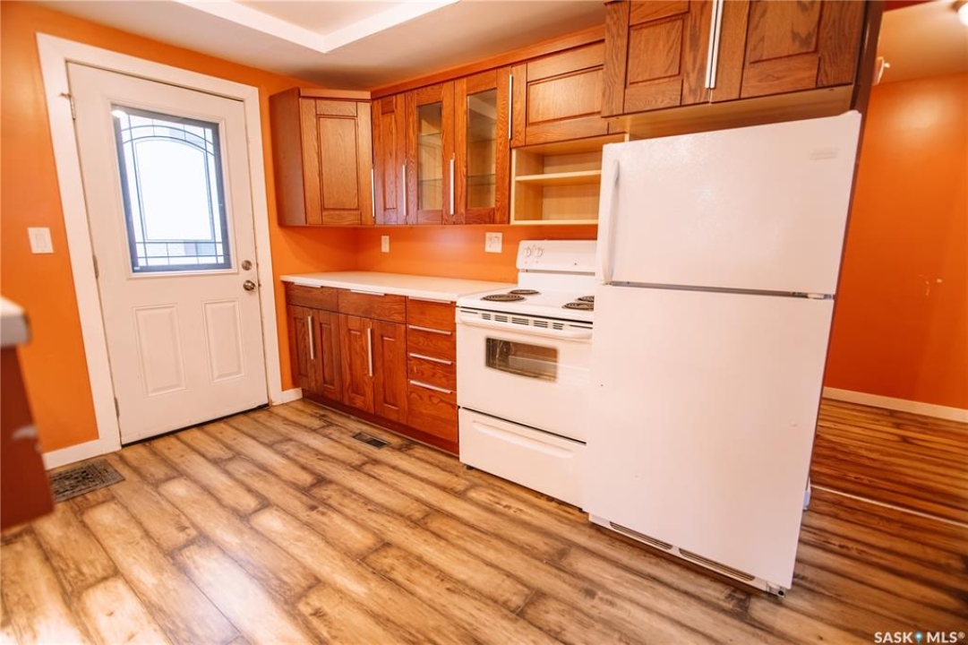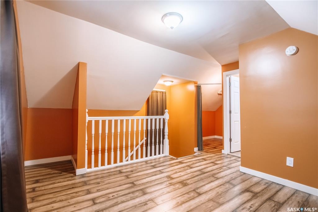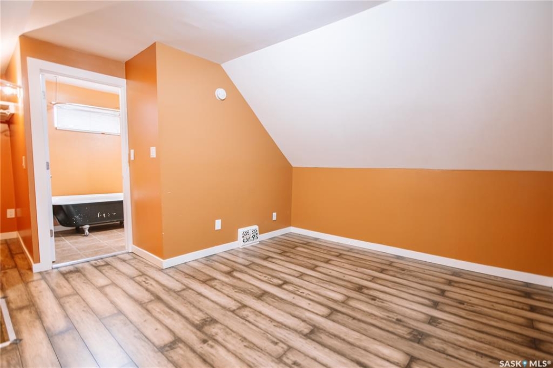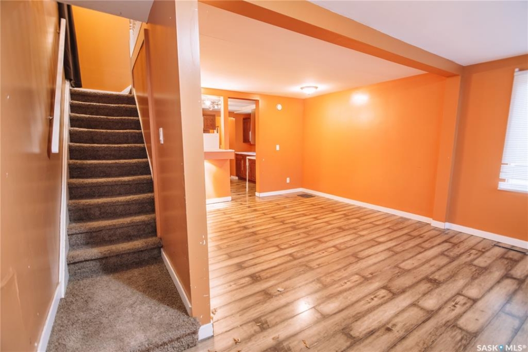 This charming one-and-three-quarter–storey home beautifully blends character with modern updates and is ready for its next chapter. Step inside to a bright and inviting living room filled with natural light from updated windows. The space feels open and welcoming, with stylish laminate flooring that extends through much of the main level. The kitchen has been thoughtfully renovated with upgraded cabinetry, modern countertops, and plenty of room for meal prep and casual dining. Its open connection to the living area makes it ideal for both everyday living and entertaining. At the back of the home, you'll find a comfortable main-floor bedroom complete with a spacious walk-in closet. A conveniently located three-piece bathroom completes this level. Upstairs, the primary suite feels like a private retreat — featuring a large walk-in closet and an impressive four-piece ensuite bathroom, a rare and desirable feature for a home of this era. The finished basement provides additional living space, perfect for a recreation room, hobby area, or home office, along with a separate utility and storage area for extra convenience. Outside, the backyard offers plenty of room for relaxing or gardening, and there's additional parking available at the rear of the lot. With vinyl windows throughout the main and upper floors, this home offers comfort, value, and peace of mind. If you've been searching for a well-maintained, move-in-ready home under $200,000 — this one checks all the boxes.