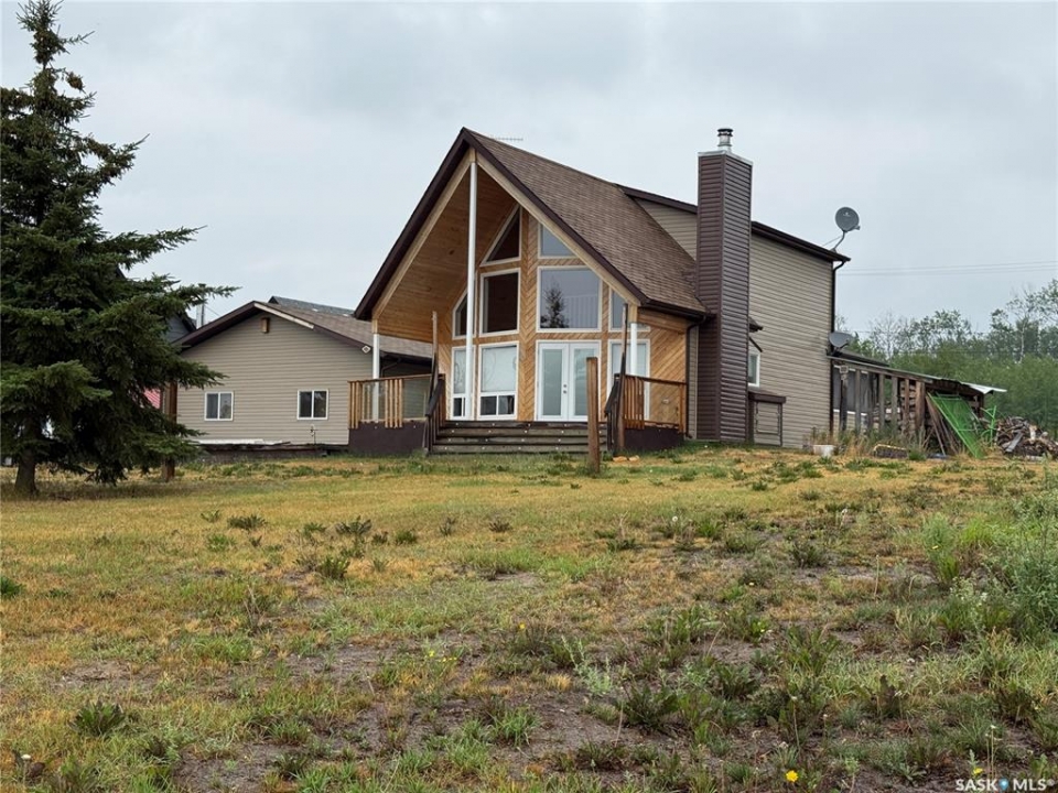 Welcome to your own piece of LAKEFRONT paradise in Buffalo Narrows. This 1197 sq. ft. home sits on a double lot and overlooks the beautiful Kisis channel which provides access to Churchill Lake and Peter Pond Lake. Main level features a spacious U-shaped kitchen with ample cupboard space and eating bar facing the dining area. Living room with vaulted ceilings, floor to ceiling windows and cozy wood fireplace. Bedroom with French doors that lead onto a sun room measuring 11.6' x 11.2'. Large entry, laundry and 2 pc bath complete the main level. Upstairs hosts 2 more bedroom and 4 pc bath. Front covered deck measures 10' x 24' and faces the water. Double detached garage sits adjacent to the house, fully insulated and hosts a wood stove for heating. This property is just steps away from the water and comes with a dock and filleting shack. Buffalo Narrows has a lot to offer and is a great recreational community all year round including fishing, hunting, boating, swimming, camping, sightseeing, touring, snowmobiling, skiing etc.