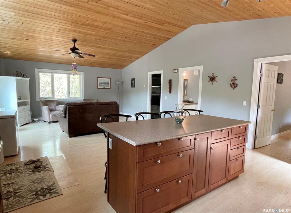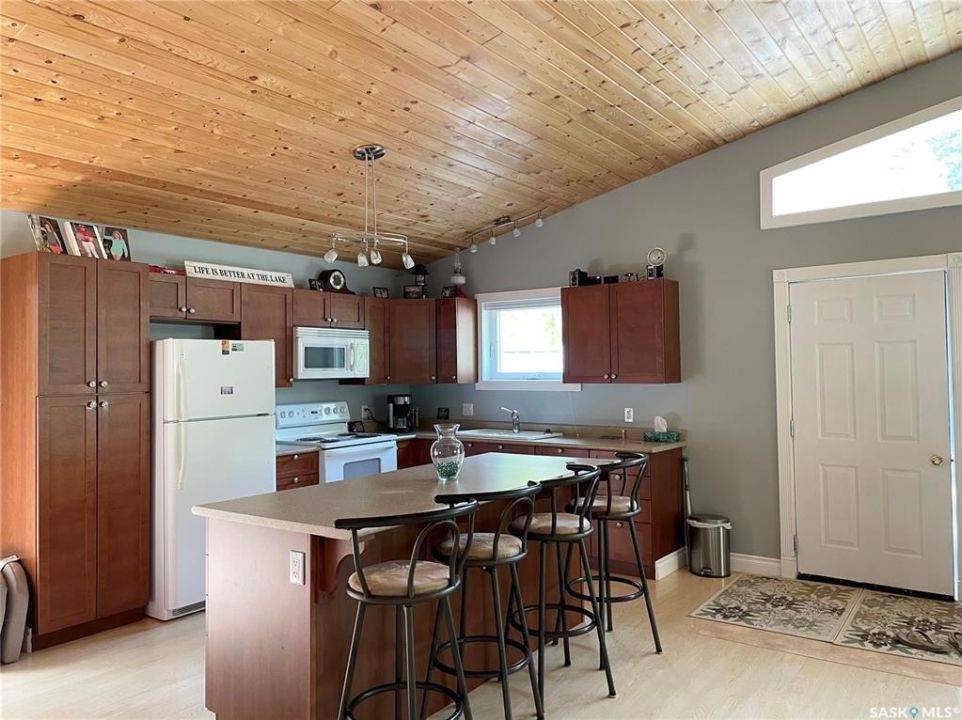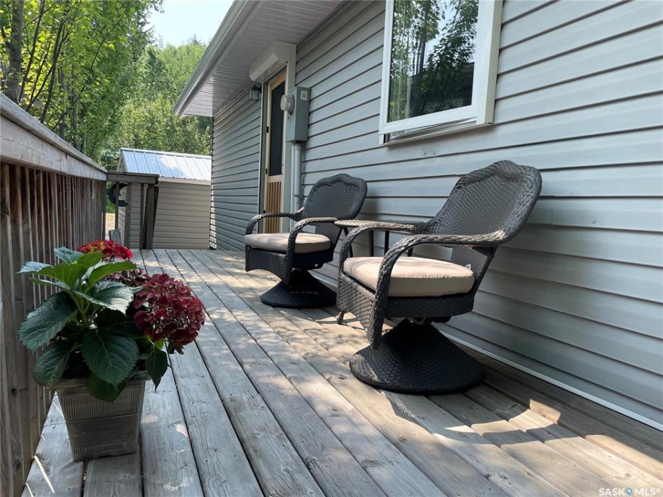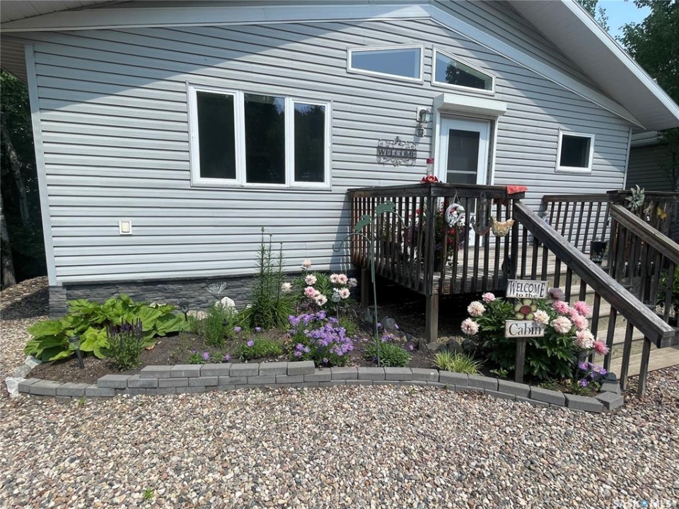 Affordable lake living at the beautiful resort of Makwa Lake! Built in 2008 this cabin offers 1024 sq. ft. and sits on a leased lot and a half. You will love the open concept floor plan and vaulted ceilings in the kitchen and living room. 2 spacious bedrooms with a combined 3pc bath and laundry room. Enjoy the sun on the 6' x 30' plus 10' x 36' wrap around deck. Front deck measures 6' x 12'. Crawl space is insulated, heated and hosts a 600 gallon fresh water tank. 1000 gallon septic tank. Lease fee is $1835.48/year and this includes water and garbage pickup. Water is direct hookup in the summer months at no extra charge and pump station sells water for $1 per 100 liters in the winter. Hot water heater was replaced in 2018 and corner shower unit new in 2019. Average power is $500 per quarter. Cabin is well insulated for year-round use!