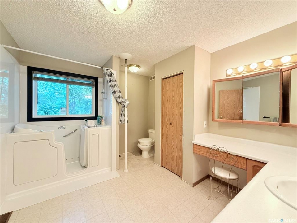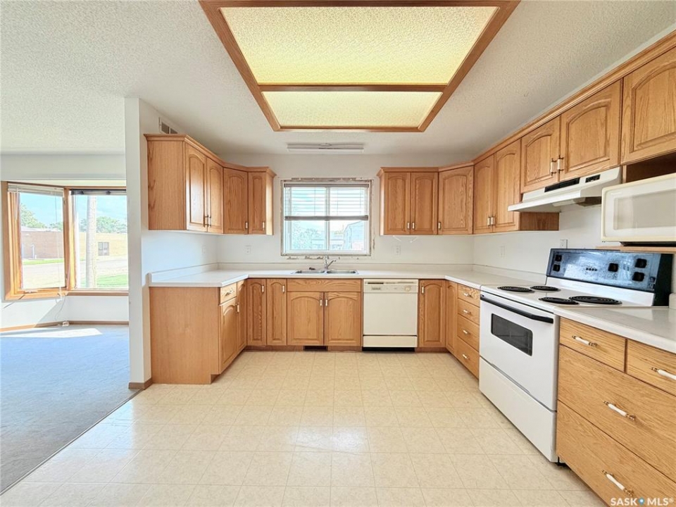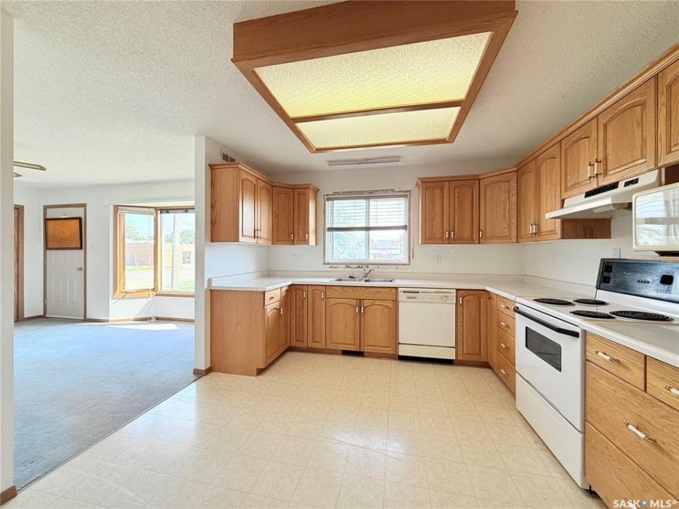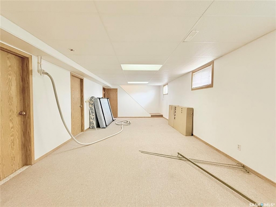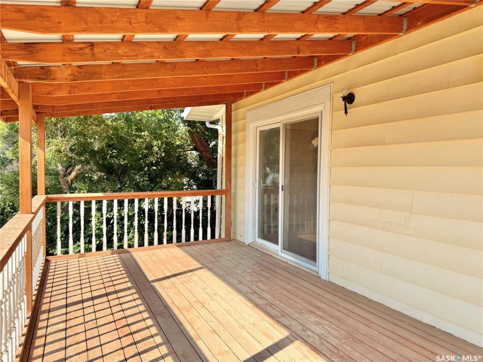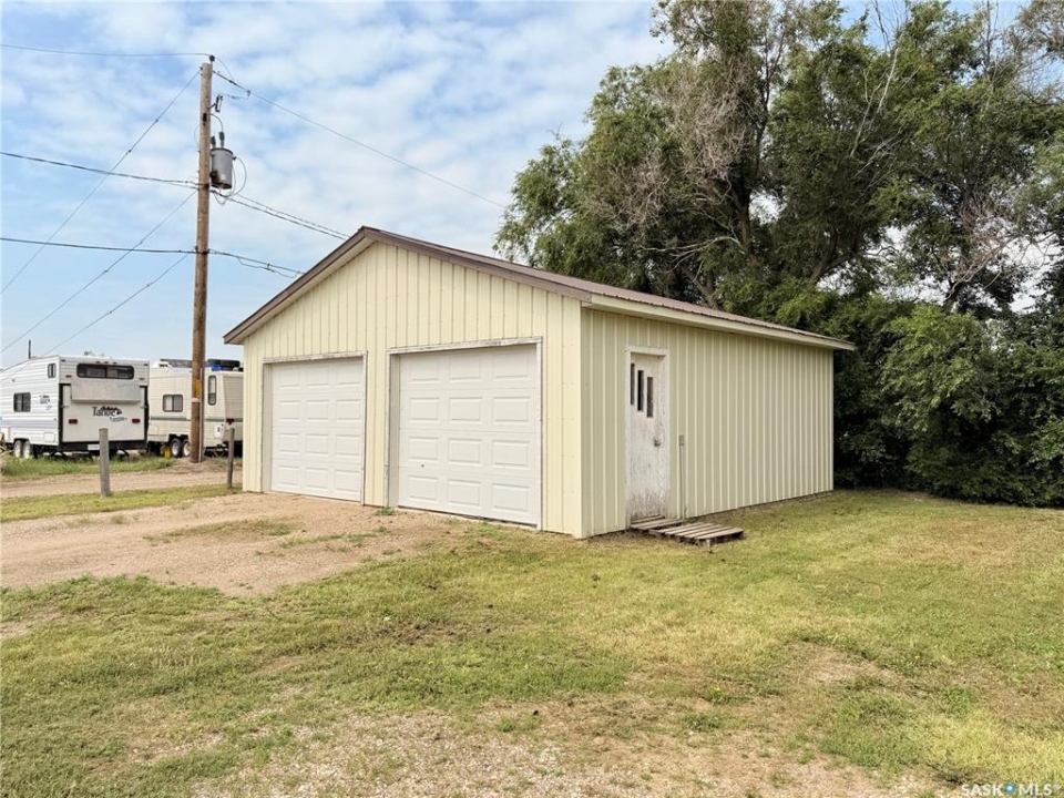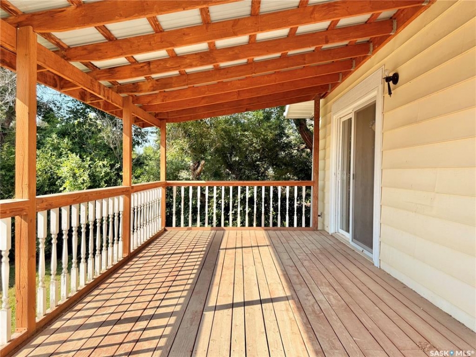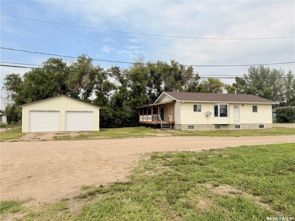 Upgrade your life with this spacious home in Lucky Lake! Located on a corner lot close to shopping and featuring a covered back deck and double detached garage. This home has a functional layout with large living spaces perfect for growing families or those moving to town off the farm! The dining room has patio doors to the back deck and connects to your generous size kitchen with tons of cupboard space. There is a expansive living room with bay window and cutaway into the hallway down to the bedroom enhancing that feeling of openness. The Primary bedroom has his and her closets, newer carpet and paint. The main floor bathroom is huge and has a walk-in jet tub with adjustable shower head and a large vanity with make-up counter. There is 1 more bedroom on the main floor, laundry and 2 piece bathroom. The basement has tons of space with a recreation room large enough for a pool table, 3 piece bathroom with shower (new shower kit will stay for new owners), a den and 3 more bedrooms (1 used as an office - no closet). The utility room has room for storage and your deep freezers and is where you will find the central vac and on-demand water heater! The house shingles were done approximately 2019, there are 4 new windows and new patio door all 2022, jet tub 2018, on demand water heater 2018, and a few finishing touches will be completed for the new owners (trim around new windows and patio door and front step boards). Keep the rain and snow off your vehicles with the 24 x 24 garage featuring electric doors, metal roof and siding! Lucky Lake is located close to Lake Diefenbaker for great beaches and fishing, there is a k-12 school, health centre, groceries, hardware store, fuel, dining and more! Immediate possession available. Call to see it today!