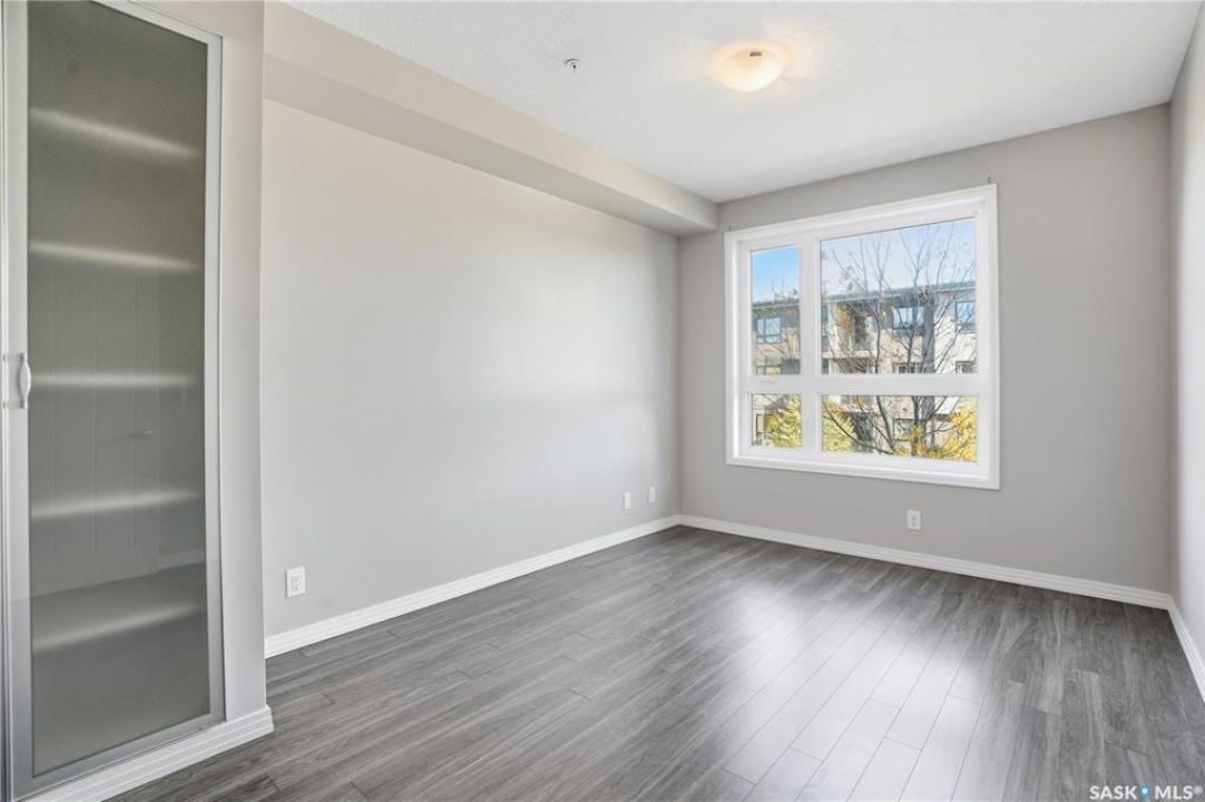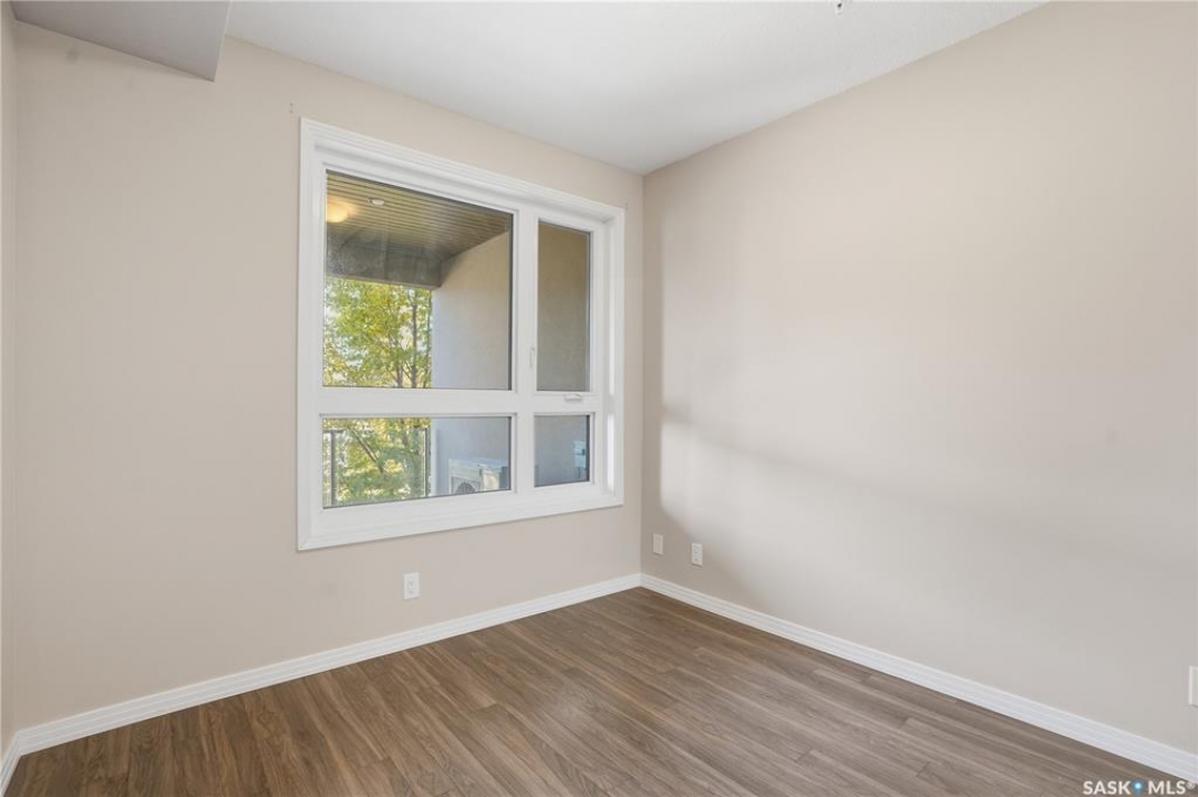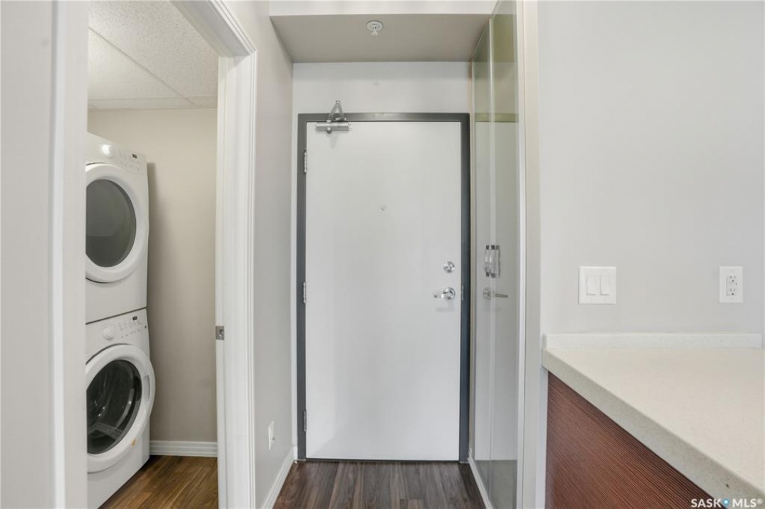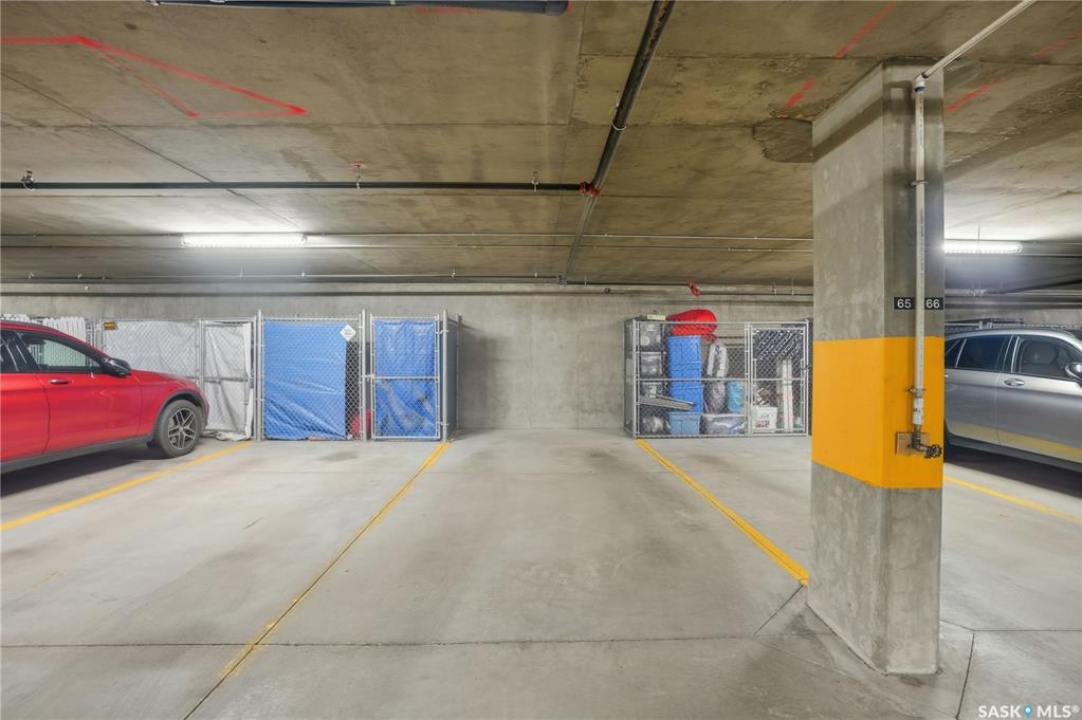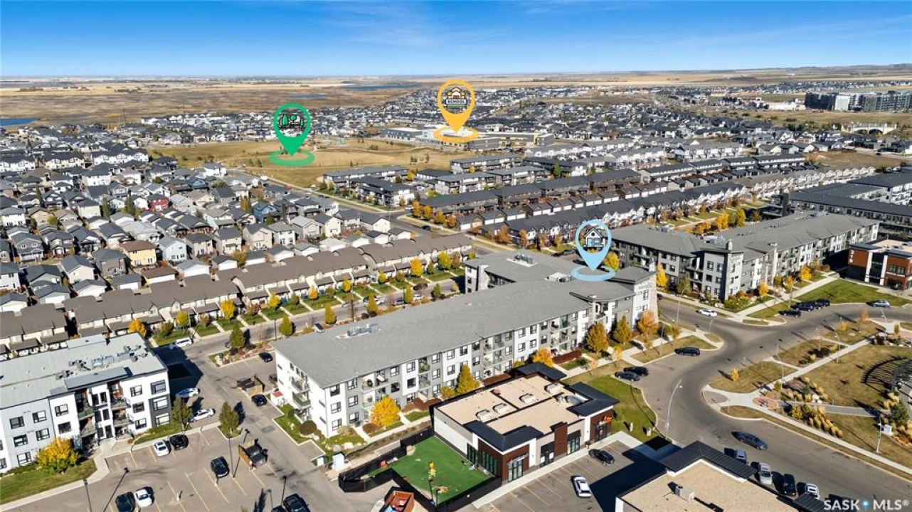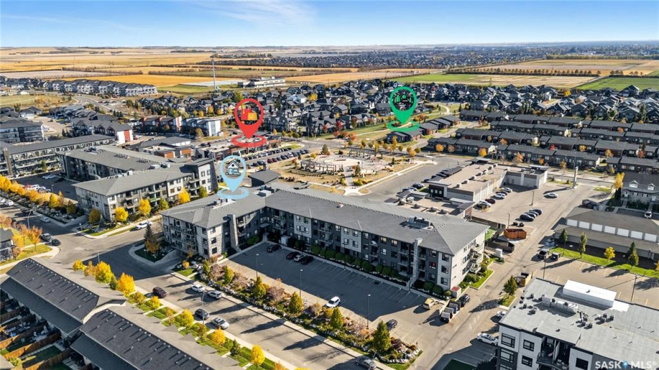 Excellent 2-bedroom, 2-bathroom east-facing condo with 2 parking spots (1 underground, 1 electrified surface-level) at Sequoia Rise, great location close to the Evergreen Square & bus routes to U of S. This trendy suite offers a functional layout with 9' ceilings, SoHo-style kitchen with quartz countertops and eating bar, ample living & dining space, in-suite laundry, split bedroom layout with generously-sized primary bedroom featuring walk-through closet to a beautifully-finished 4-piece ensuite with sit-down shower & dual sinks on a vastly-sized quartz-top vanity. A sheltered environment awaits you at the balcony, offering a relaxing space to soak up the sunrise with your morning coffee! Excellent climate control with in-floor zone heating (included in condo fees) & central air conditioning, providing gentle heating with the benefits of air handling. Building amenities include elevator access, intercom with cell phone compatibility, common exercise area & meeting room, visitor parking & mailboxes. Pet-friendly condo subject to restrictions. Whether you're looking to downsize, looking for economical living or buying your first home, this great condo should be on your list!