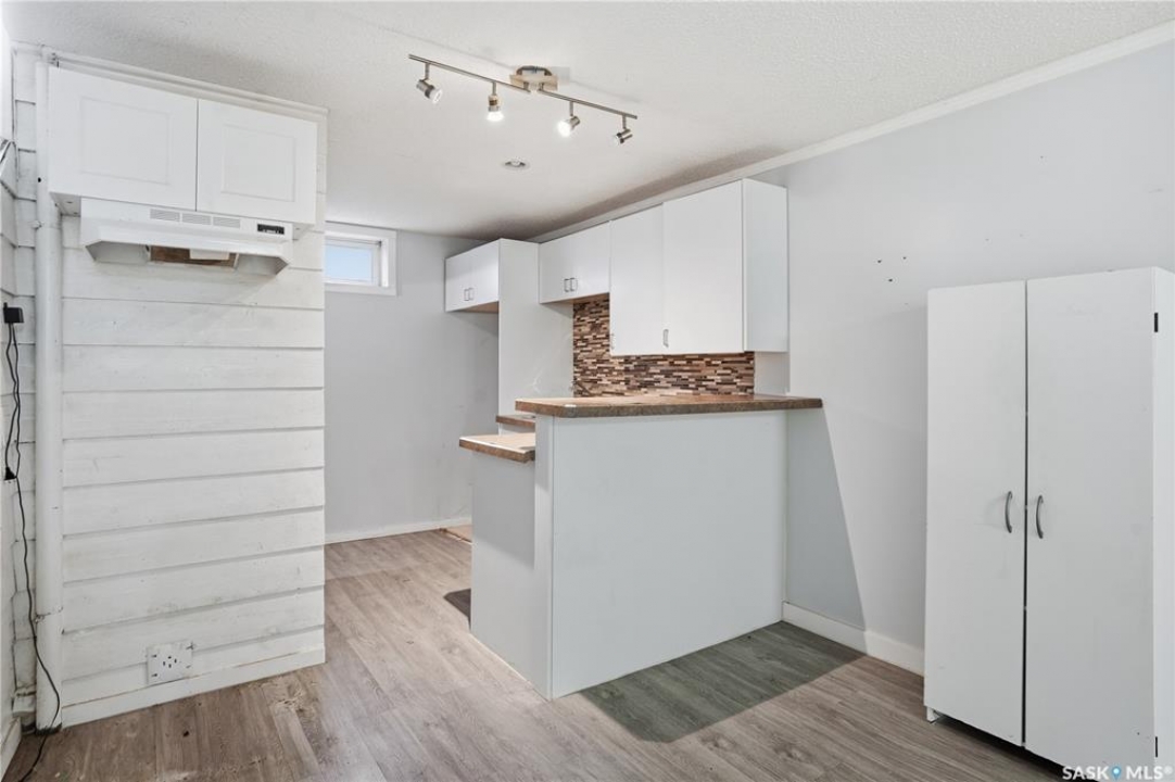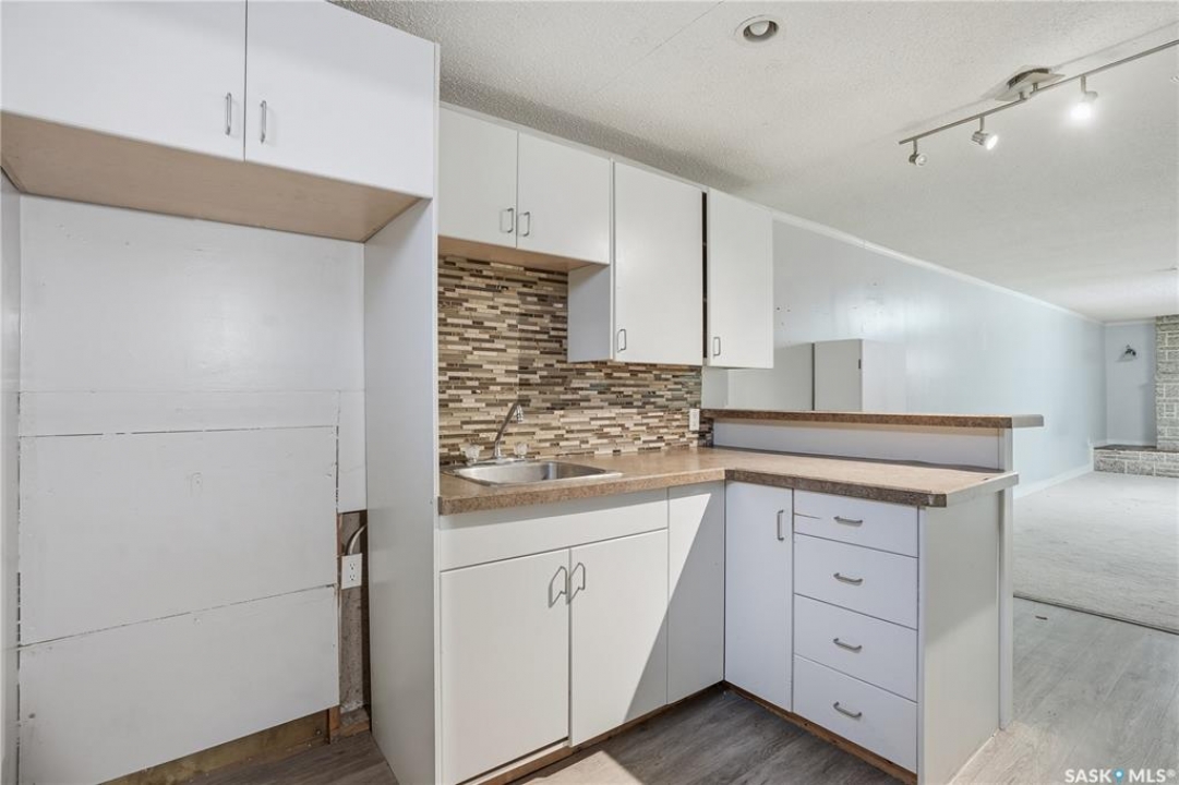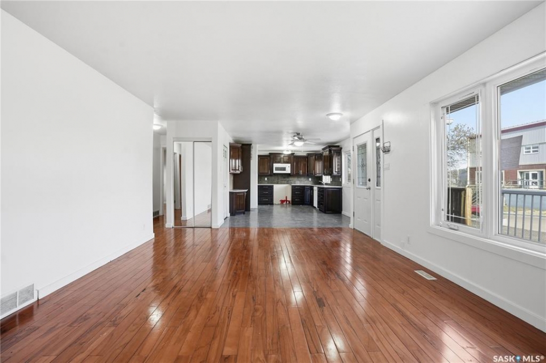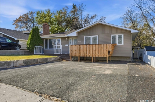 Spacious 5 bedroom, 3 bathroom home offering over 1,200 sq. ft. on the main level with an additional kitchenette area in the basement. The property features a large double garage with 220 amp service. Spacious backyard. Located in Central Moose Jaw close to all amenities and transportation.