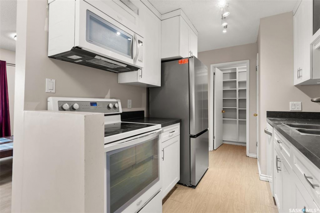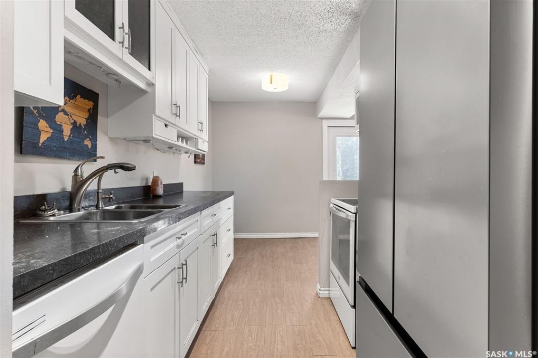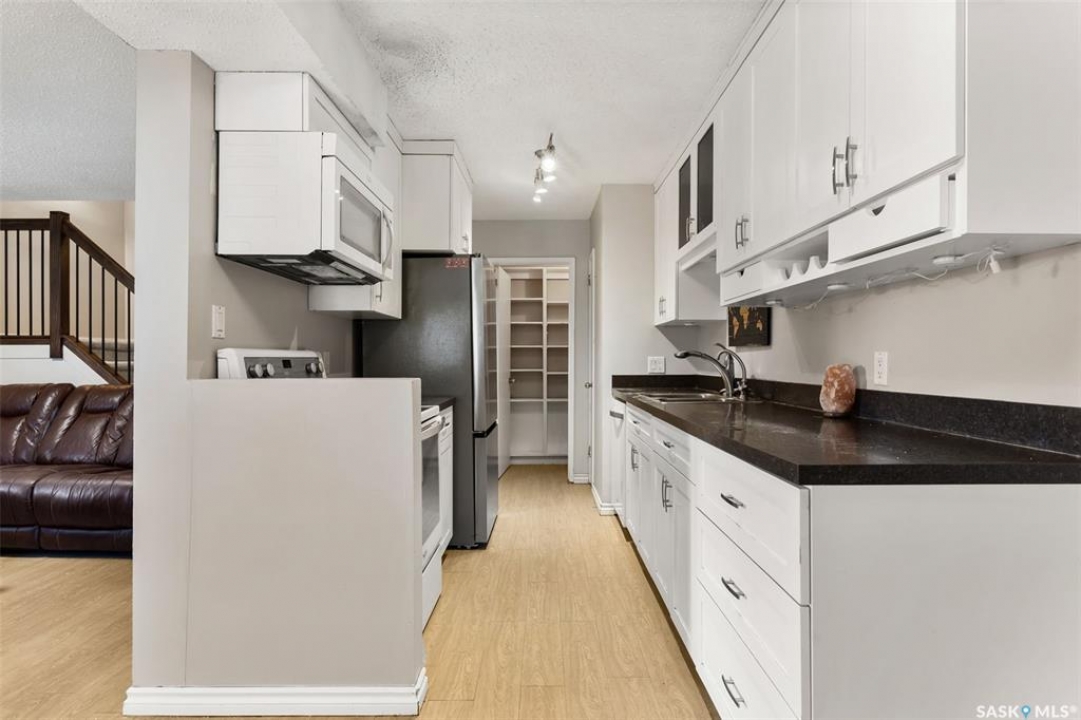 Welcome to B-4204 Castle Rd in Whitmore Park! 2 bedroom, 2 bath, 920 sq ft townhouse condo is a must see! Walking distance to U of R and right by the park. This end unit with a lovely south-east facing backyard, patio, and garden area. The unit has many updates including kitchen, flooring, windows and a recently developed basement with three-piece bath. An open concept living room comes with extra window and boost a lot of natural light and dining room with entry to yard is bright and spacious in design! Upstairs, two large bedrooms with large closets, and a full bath with large vanity is a great feature! Basement was developed with functional L shaped rec room, generous sized 3 pc bath, utility and storage areas! One parking spot & all appliances included.