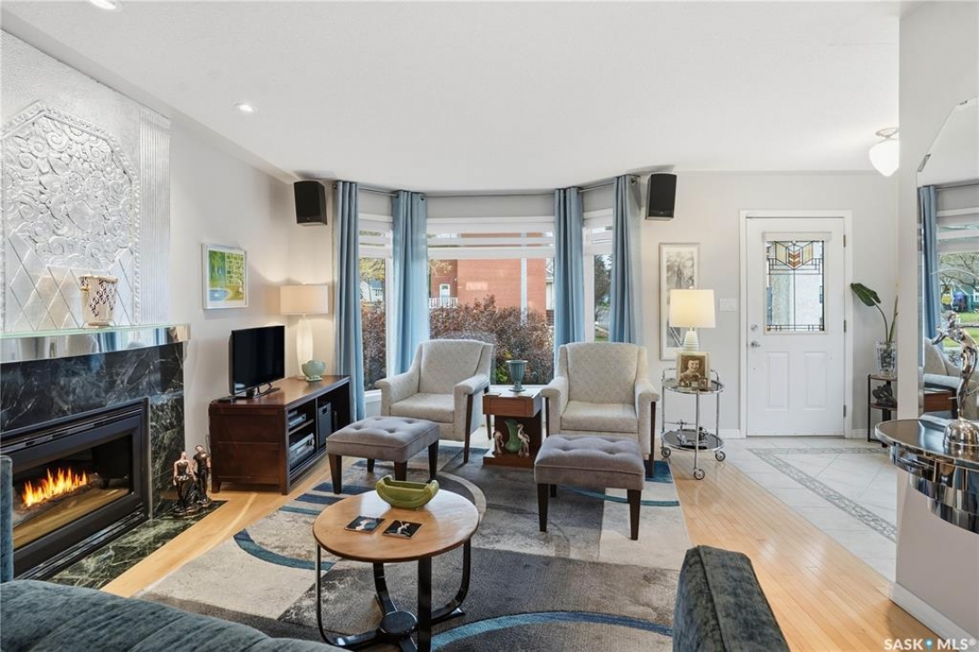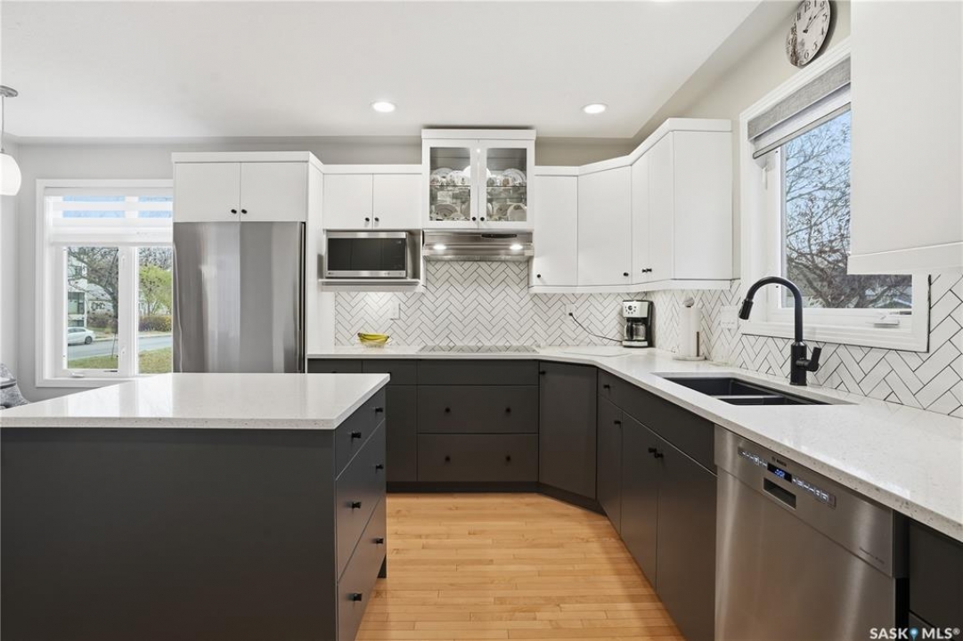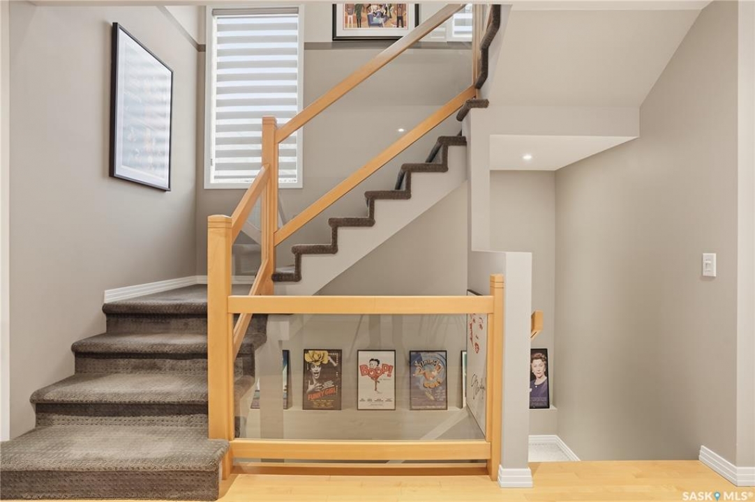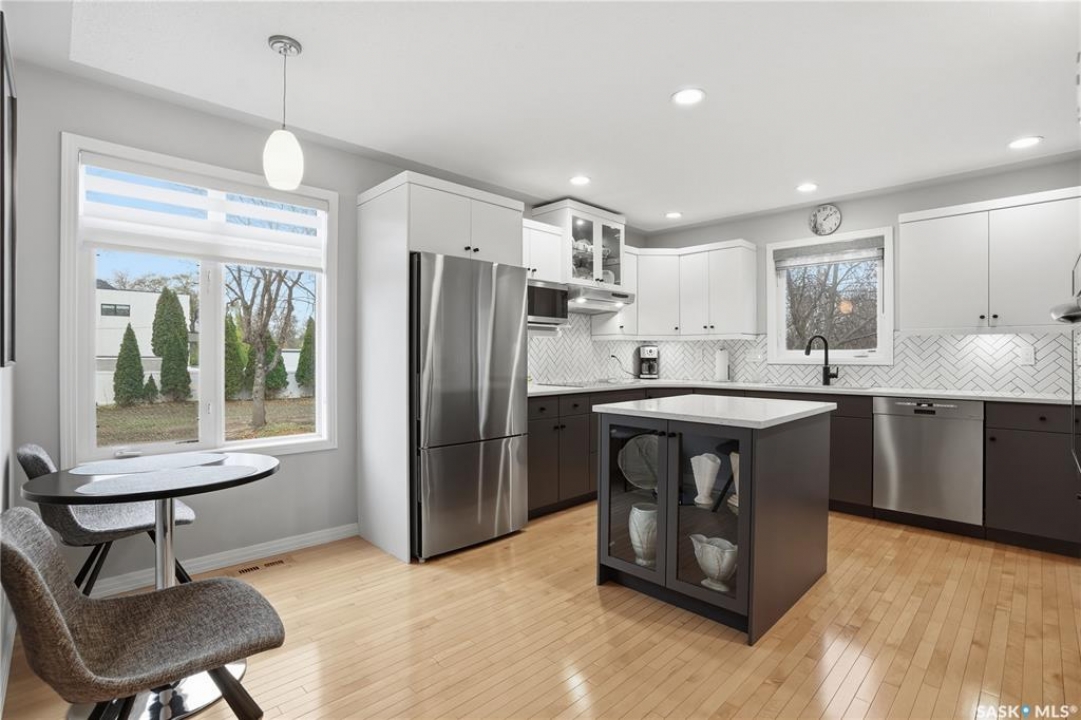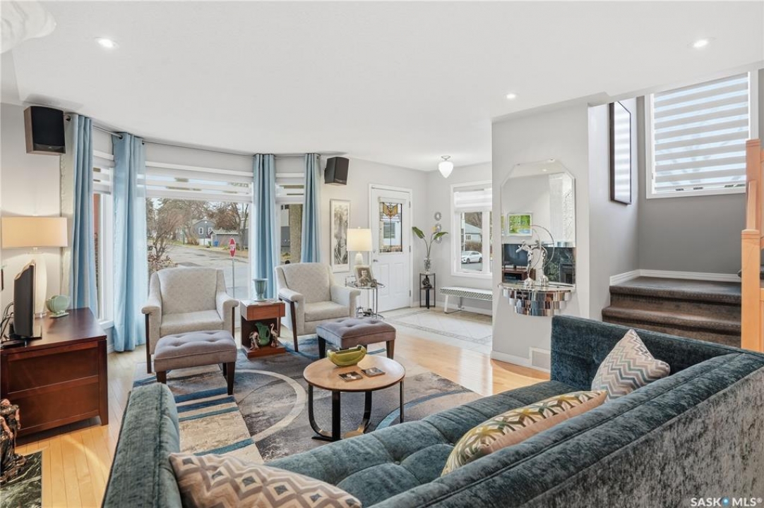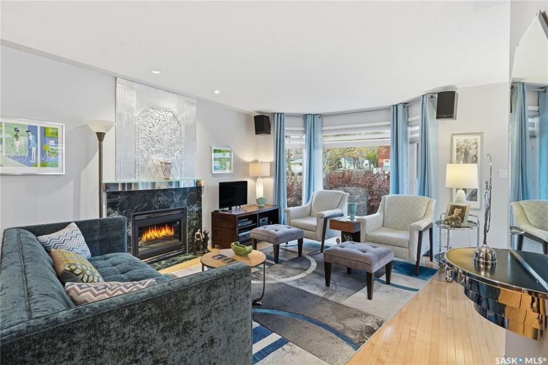 Welcome to 2576 Cameron Street. This charming 2 story is located in the desirable Crescents Neighbourhood. Immediately you will notice the attractive curb appeal with a large front and side yard that has been beautifully landscaped. Custom Ripplinger build distinguished by meticulous attention to detail, tastefully decorated and offering 1588 square feet of living space. As you enter you will be greeted by the large foyer and open concept living space. Large windows allow for an abundance of natural light. Living room features maple hardwood flooring that continues throughout the main level, lovely drapery which is included, and a gas fireplace with marble surround and custom plaster feature wall. Living room speakers can also stay if the buyer so chooses. The spacious dining room boasts a ceramic tile floor inlay and back lighting accenting the glass block wall. The kitchen is a chef's dream with plenty of counter space, two tone custom cabinets, herringbone pattern subway tile backsplash, and stainless steel appliances which are included. Off the kitchen you will find a 2 piece bathroom and entry to the backyard with a large tiered deck and 2 car detached garage with lane access. Primary bedroom can be found upstairs with direct access to walk in closet and the large 5 piece bathroom featuring a jacuzzi tub, a glass block shower and in floor heating. 2 more bedrooms and laundry complete the second level. The basement is the perfect entertaining space with a media room which includes the projector and screen along with surround sound system. Large storage/ utility space with additional fridge and freezer that are both included. This property is conveniently located close to Downtown, The Royal Saskatchewan Museum, Wascana Park and mere steps from green space. Additional features include: shingles 2022, furnace 2016, central air conditioning, roughed in plumbing in basement, and roughed in natural gas hook up.