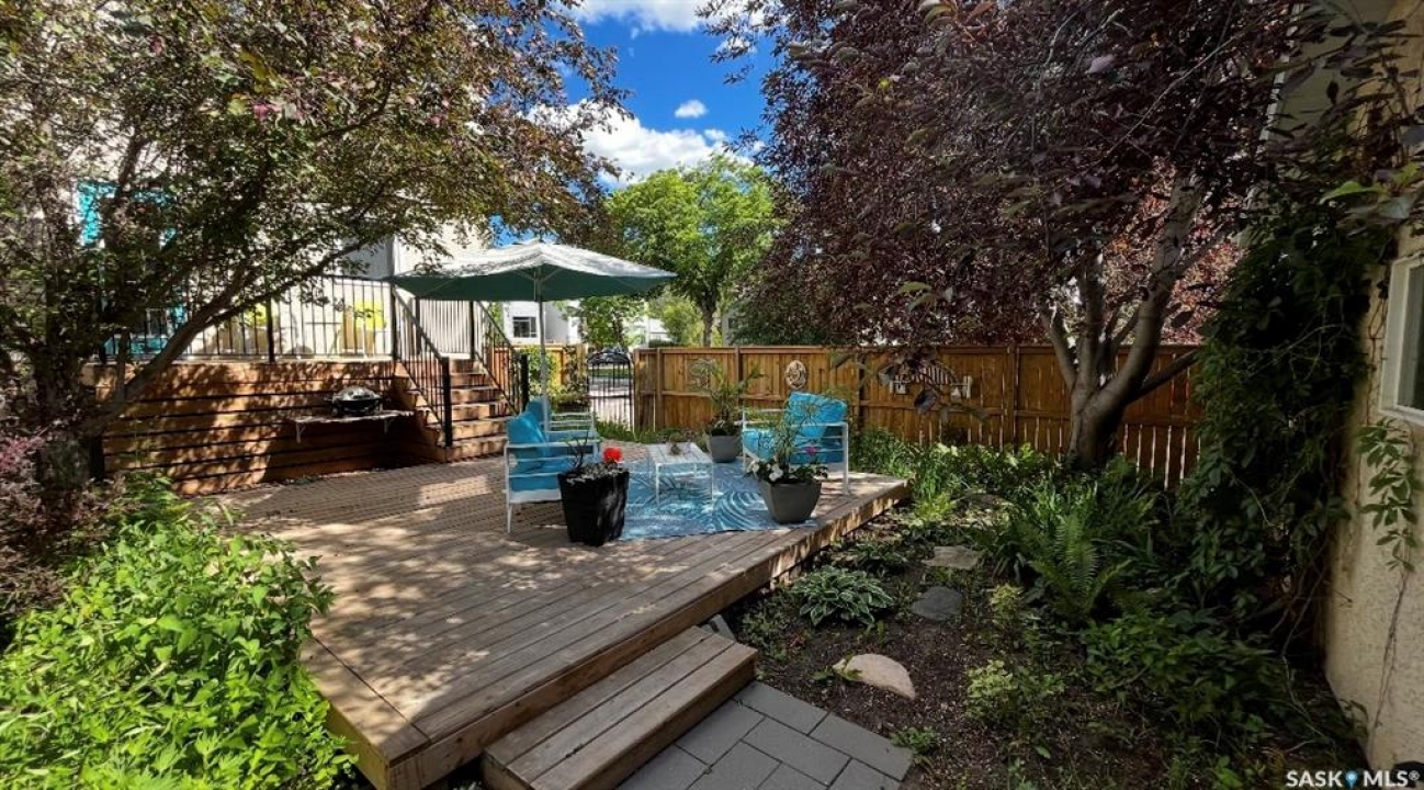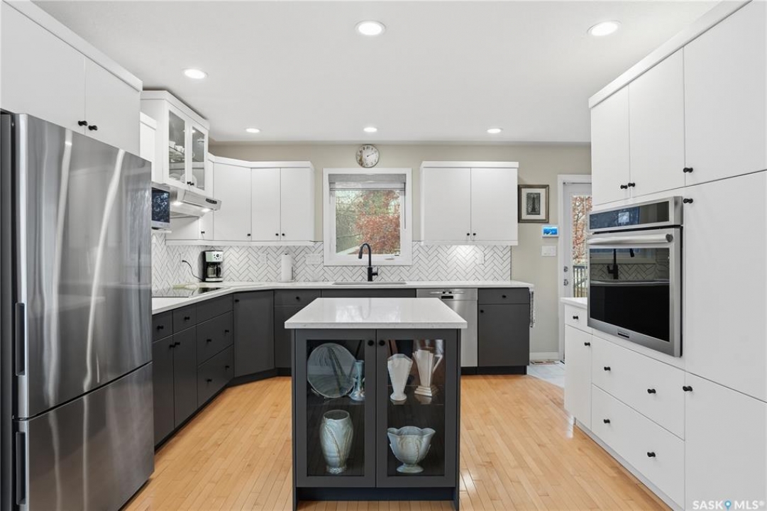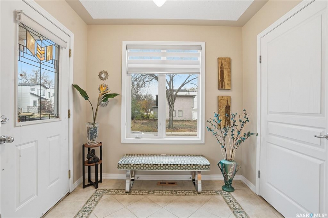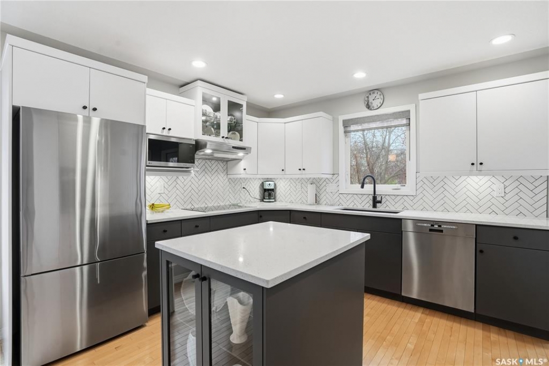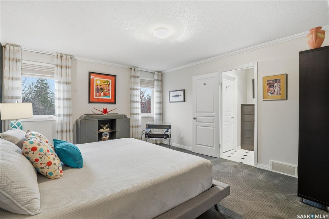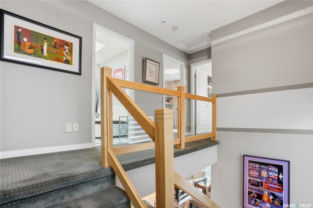 Welcome to 2576 Cameron Street. This charming 2 story is located in the desirable Crescents Neighbourhood. Immediately you will notice the attractive curb appeal with a large front and side yard that has been beautifully landscaped. Custom Ripplinger build distinguished by meticulous attention to detail, tastefully decorated and offering 1588 square feet of living space. As you enter you will be greeted by the large foyer and open concept living space. Large windows allow for an abundance of natural light. Living room features maple hardwood flooring that continues throughout the main level, lovely drapery which is included, and a gas fireplace with marble surround and custom plaster feature wall. Living room speakers can also stay if the buyer so chooses. The spacious dining room boasts a ceramic tile floor inlay and back lighting accenting the glass block wall. The kitchen is a chef's dream with plenty of counter space, two tone custom cabinets, herringbone pattern subway tile backsplash, and stainless steel appliances which are included. Off the kitchen you will find a 2 piece bathroom and entry to the backyard with a large tiered deck and 2 car detached garage with lane access. Primary bedroom can be found upstairs with direct access to walk in closet and the large 5 piece bathroom featuring a jacuzzi tub, a glass block shower and in floor heating. 2 more bedrooms and laundry complete the second level. The basement is the perfect entertaining space with a media room which includes the projector and screen along with surround sound system. Large storage/ utility space with additional fridge and freezer that are both included. This property is conveniently located close to Downtown, The Royal Saskatchewan Museum, Wascana Park and mere steps from green space. Additional features include: shingles 2022, furnace 2016, central air conditioning, roughed in plumbing in basement, and roughed in natural gas hook up.