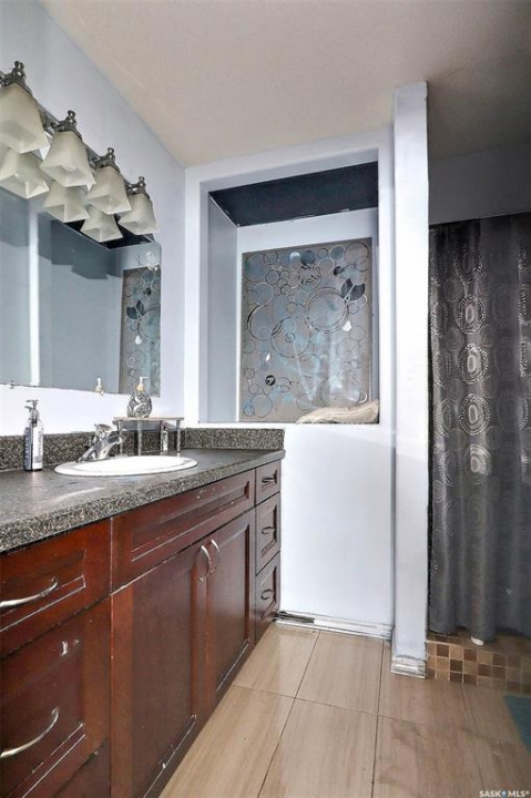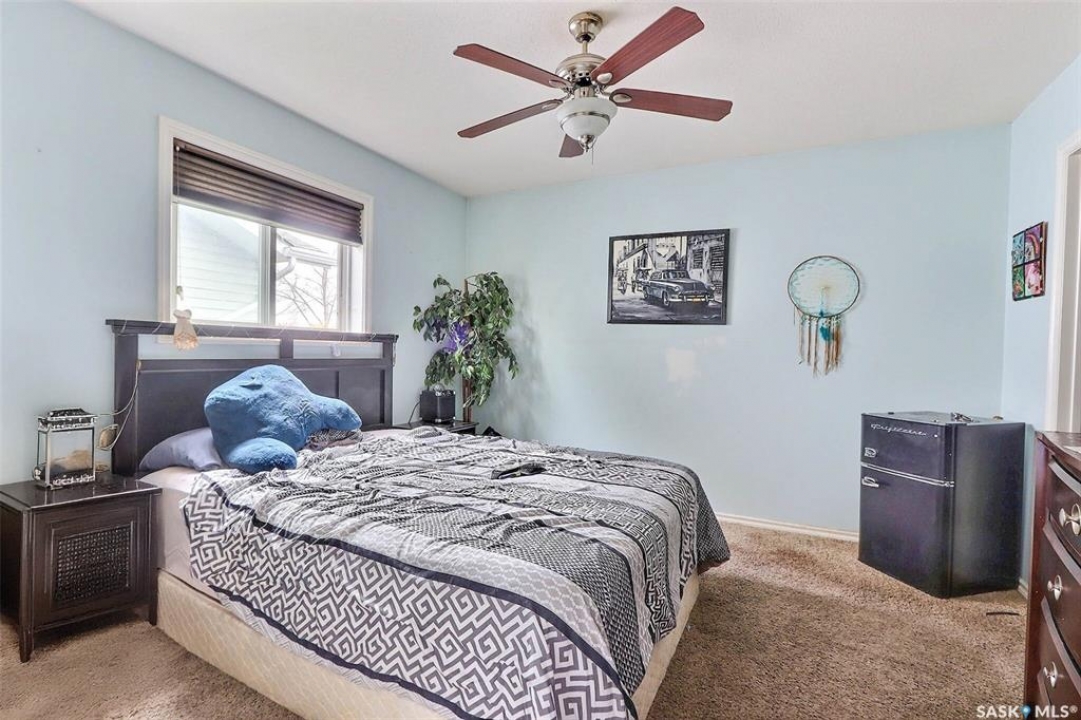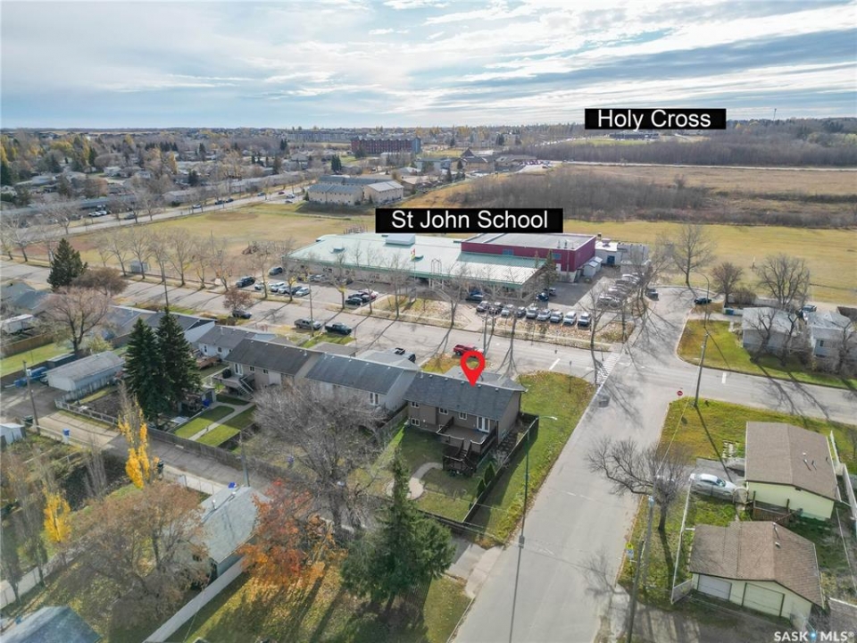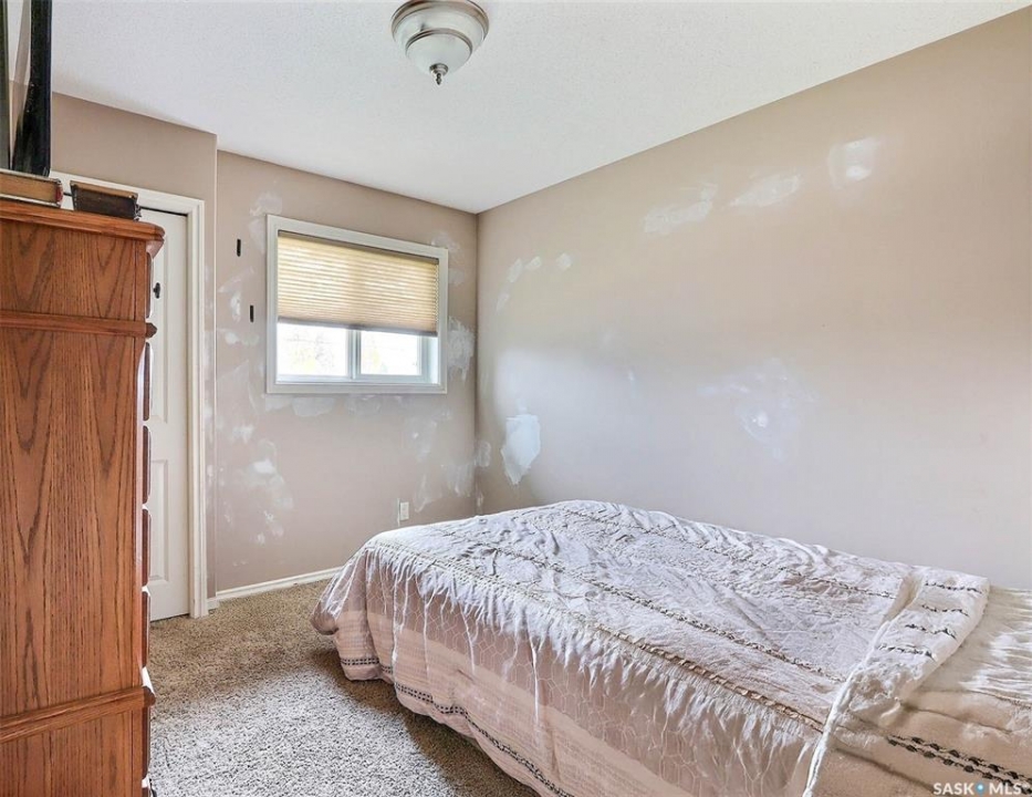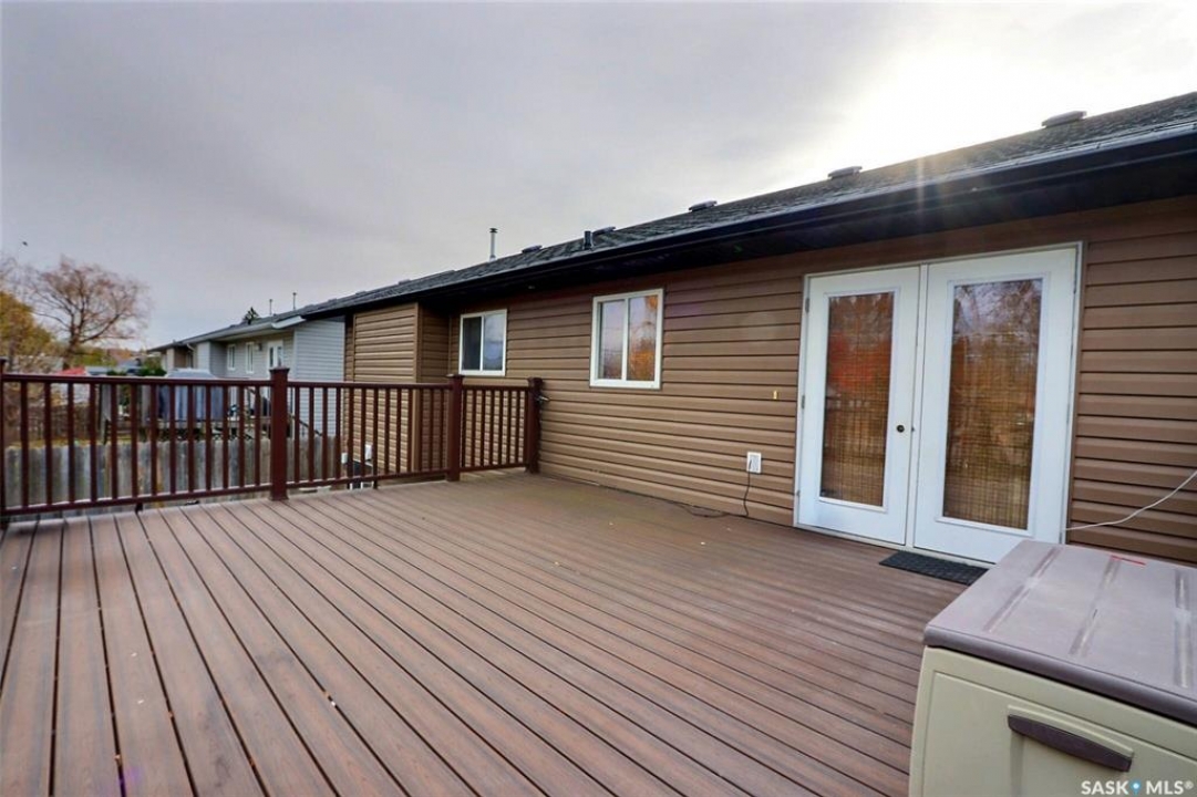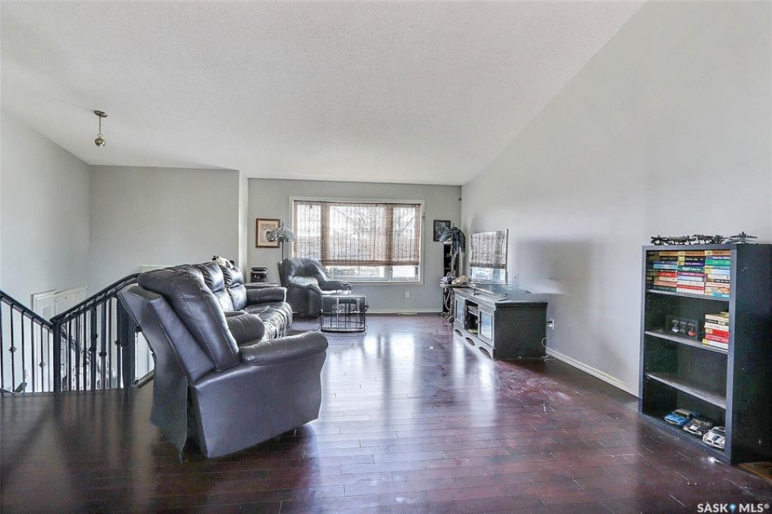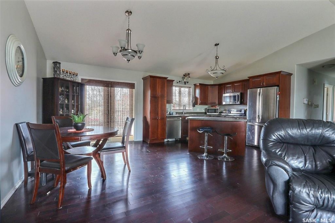 This spacious 1,245 sq/ft 5 bedroom bi-level, built in 2008, offers a fantastic layout and great potential. Located in East Flat across from St. John Community School and close to many amenities, this property makes for an ideal family home. The main floor features an open-concept design with vaulted ceilings, hardwood flooring, and a bright, spacious feel throughout. The kitchen offers plenty of dark cabinetry, an island with sink and bar seating, and patio doors leading to a large composite deck overlooking the fully fenced yard with a cozy fire pit area. There are 3 bedrooms and 2 bathrooms on the main level, including a primary suite with a walk-in closet and 3-piece ensuite. Downstairs, you'll find a large rec room with plenty of windows, a den, and two additional bedrooms, plus a 4-piece bathroom — perfect for a growing family. Additional features include a 22x24 insulated double attached garage, arborite counters throughout, natural gas hot water heater (2022), central air, and an air-to-air exchanger. Set on a 54 x 130 lot, this home offers space and comfort - an excellent opportunity!