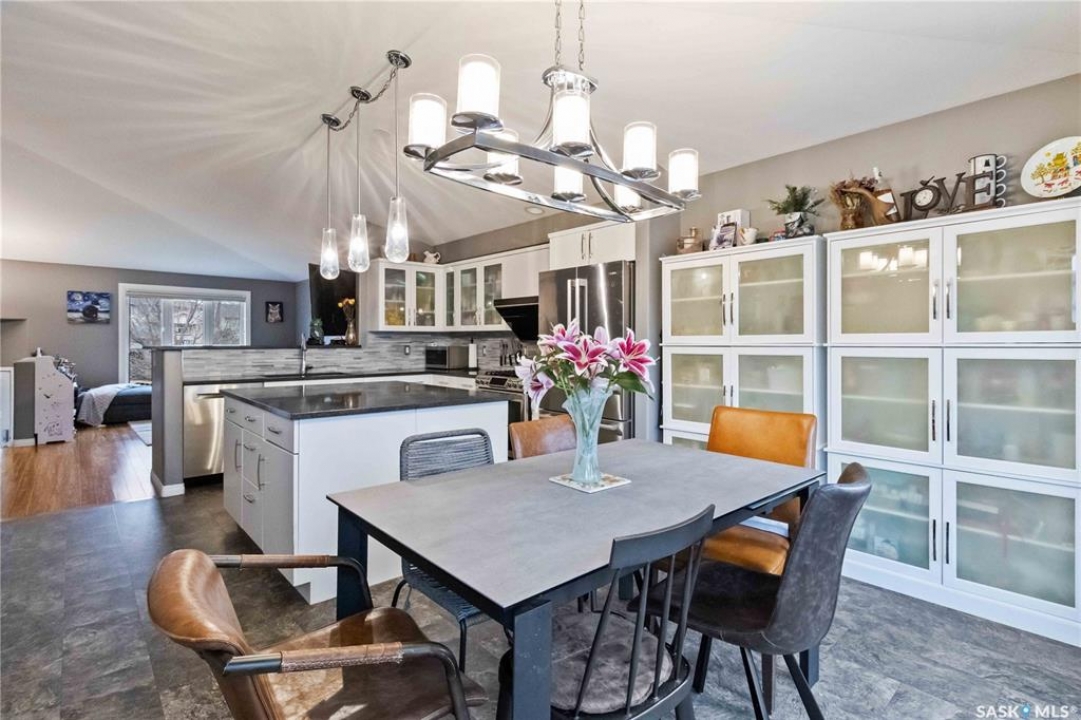 Welcome to 506 Kucey Crescent! This beautifully renovated 1256 sq ft bi-level is just half a block from the park. The main floor boasts a modern kitchen with a large island, quartz countertops, a gas stove, Bosch dishwasher, new Bosch fridge, and plenty of cabinet space. The vaulted ceiling and open floor plan create an inviting and spacious vibe. The spacious living room features updated flooring. There are three bedrooms on the main floor, along with an updated 4-piece bathroom. The primary bedroom includes a walk-in closet and an updated ensuite bath. The lower level offers a cozy family room with a gas fireplace, a pool table (included - with all accessories), two sizable bedrooms, a 3-piece bath, and a large laundry/mechanical room. Outside, enjoy the maintenance-free backyard with a large storage shed, deck with storage underneath and a gazebo. The heated, attached garage has storage, work bench and a new epoxy coated floor. This well-maintained home is in a fantastic location that's hard to beat!