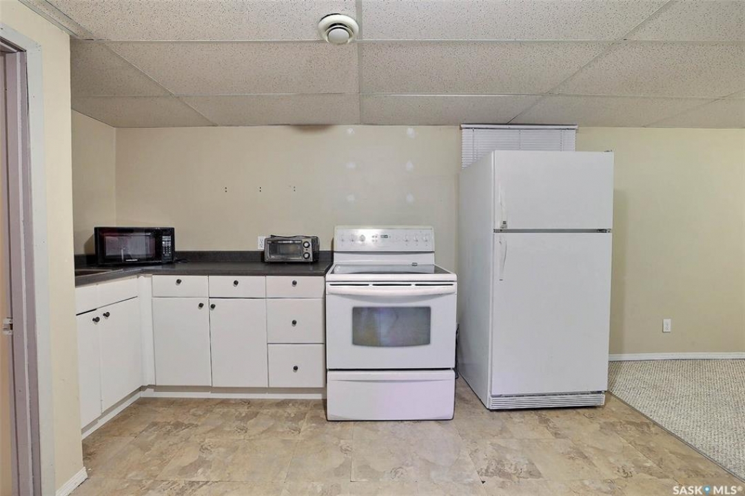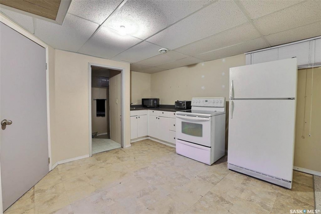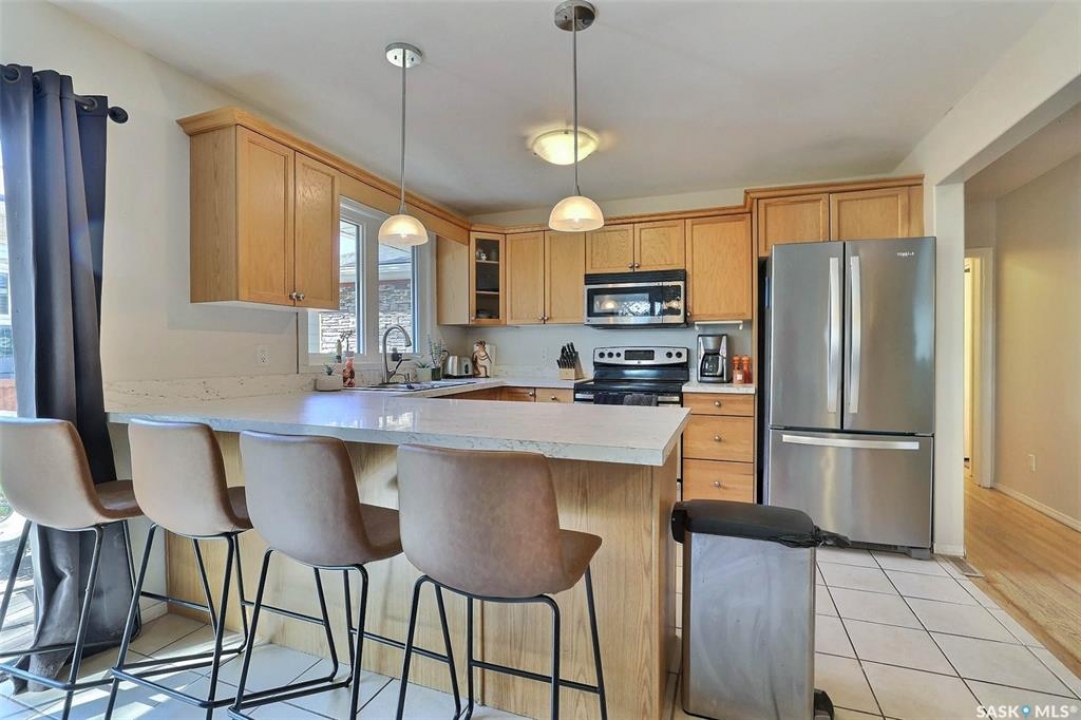 Location, location! Spacious well maintained bungalow on quiet Lakeview Street. Great street appeal with maintenance free lawn, rock border and front driveway. Open floor plan with gleaming hardwood flooring in spacious living room. Beautiful kitchen with an abundance of cabinets and counter space with tile flooring and patio doors off generous sized eating area to private deck. Large primary bedroom with huge closet and 2pc ensuite. 2nd bedroom has an exterior door and hookups for main floor laundry which could easily be moved downstairs. Large main floor family room addition (currently used as master) with fireplace and garden doors to rear yard. Basement has non-regulation basement suite with huge rec room, kitchenette, bedroom and 3/4 bath. Gorgeous, private well landscaped and maintenance free rear yard with stone patio and firepit area. Most appliances included. Call today!