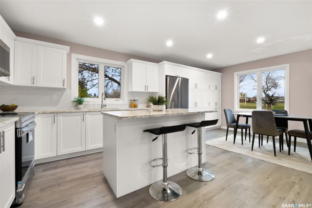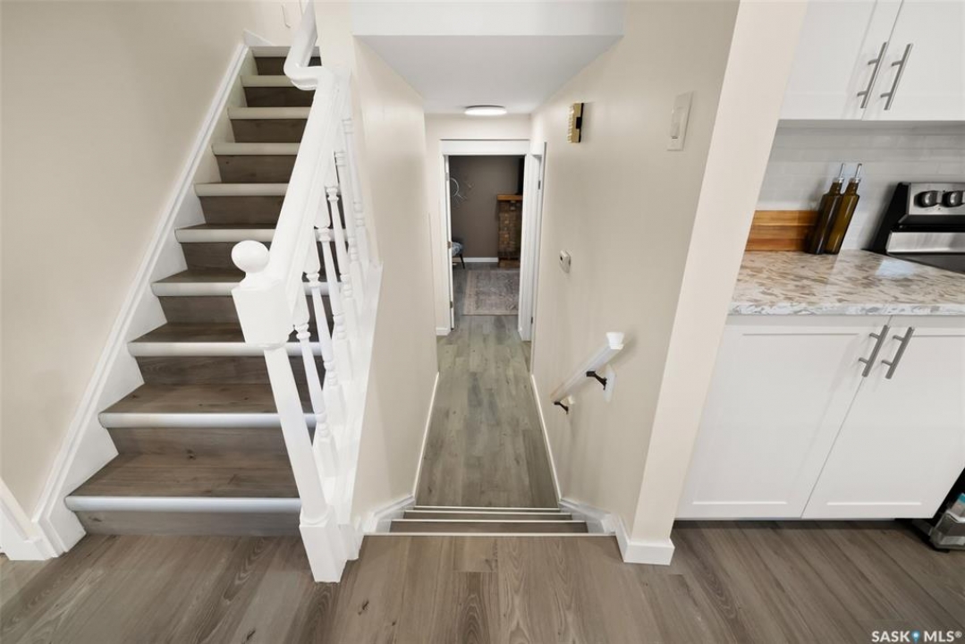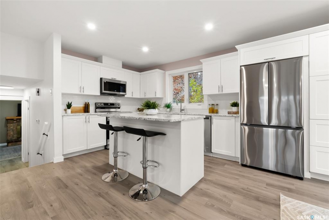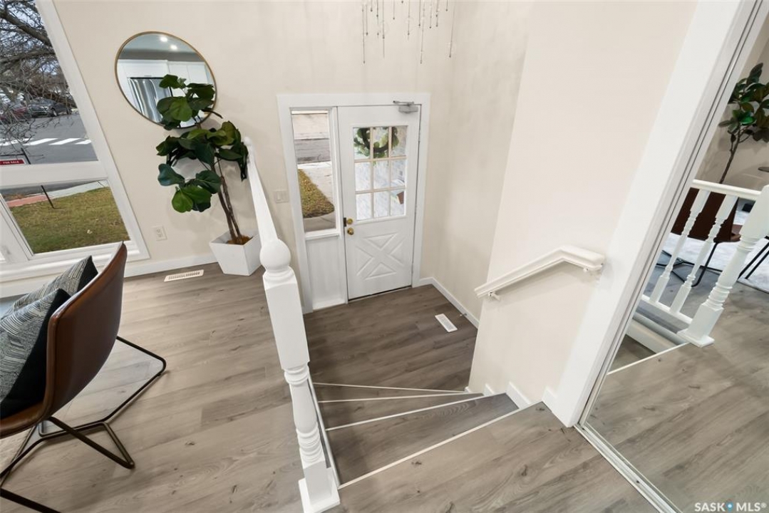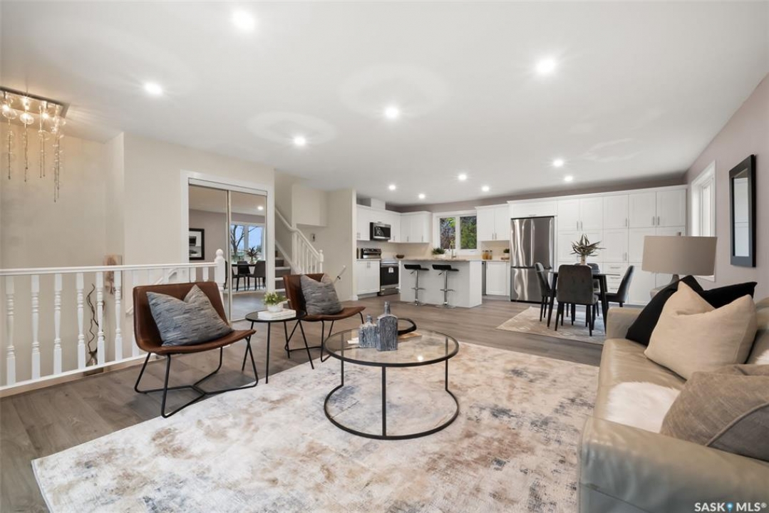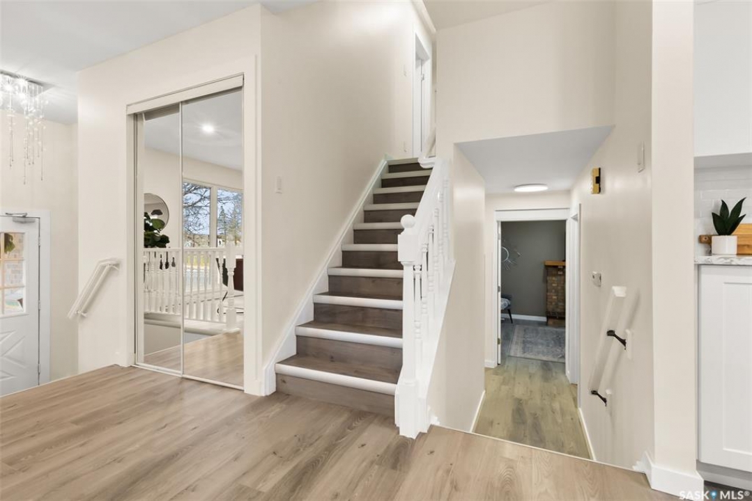 Location, location! Don't miss this completely upgraded two-storey split in the heart of Gardiner Park, perfectly situated on a quiet crescent backing green space and just steps to Wilfred Walker School. This is an ideal family home featuring over $100,000 in recent upgrades. A spacious sunken foyer welcomes you into a bright, open main floor redesigned in 2025 with a brand-new kitchen and an airy, modern layout. Windows on three sides fill the home with natural light and offer lovely park views. All windows have been upgraded to PVC triple-pane (except in the basement) for enhanced energy efficiency and comfort. New vinyl plank flooring flows throughout the main and second levels, complemented by new carpet in the basement. All interior doors, trim, and baseboards have been replaced, and the entire home was freshly repainted in 2025. Enjoy new LED pot lights, updated fixtures, and a kitchen that impresses with quartz countertops, modern stainless-steel appliances, and a dishwasher just one year old. Upstairs, you'll find three generous bedrooms — each featuring twilight lighting with three colour settings to create the perfect ambiance day or night. The primary suite includes a brand-new 5-piece ensuite, while the main 4-piece bath was also completely redone in 2025. A few steps down from the kitchen, you'll find a renovated 3-piece bath/laundry combo and a cozy family room with a wood-burning fireplace and patio doors leading to the back deck and yard. The lower level includes a spacious rec room and a fourth bedroom with new carpet and fresh paint. Other updates include central air (2020), new shingles, soffit, fascia, and eavestroughs (2025), and freshly cleaned furnace ducts. Located across from a park and just a short walk to Wilfred Walker School, grocery stores, and all east-end amenities, this beautiful home combines comfort, quality, and an unbeatable location — perfect for a growing family.