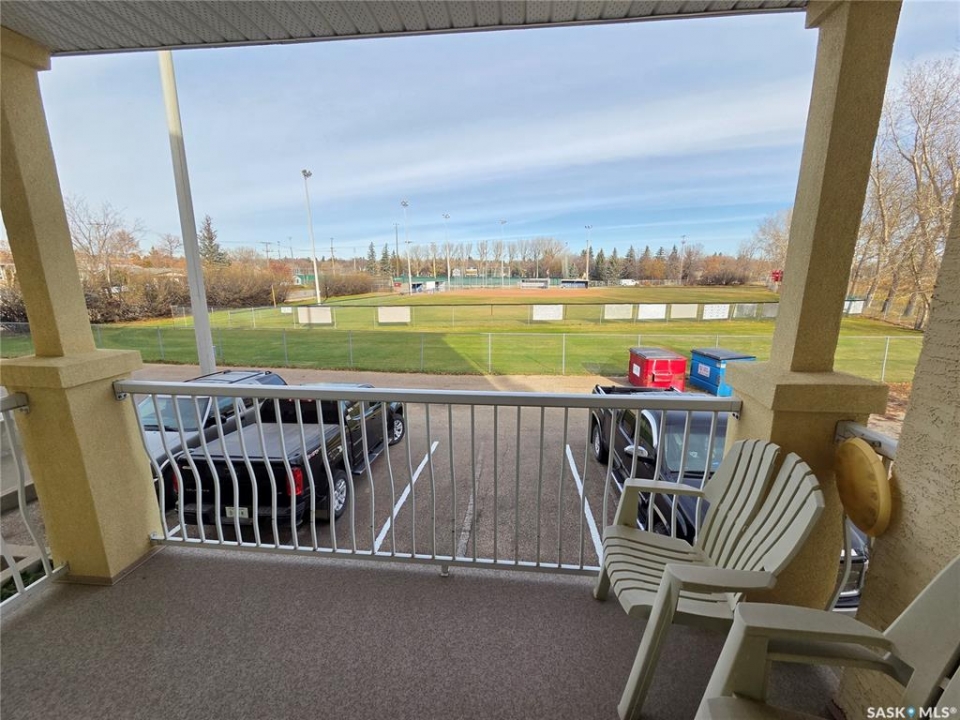 Welcome to the Manhatten! Bright 2 bedroom condo on ground level. Balcony faces the ball diamond. This corner unit allows for extra daylight from the window in the kitchen. Eat-in kitchen with lots of oak cupboards & appliances included. 2 large bedrooms --one with a full en-suite. Patio doors to cement deck. Radiant in-floor heating. Air conditioning. Elevator access to underground heated parking space and storage included. Laundry room in unit.