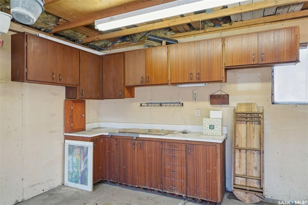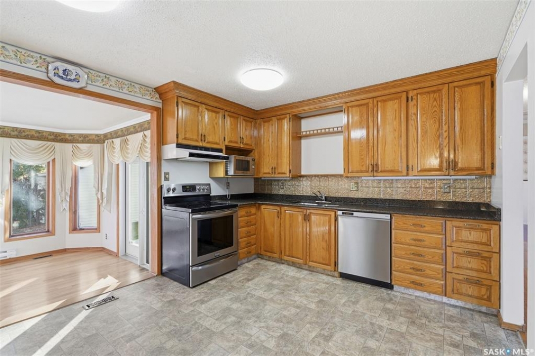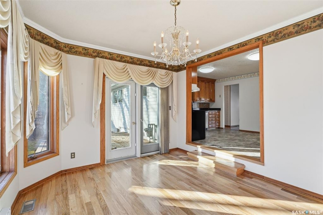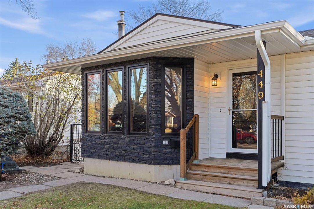 Welcome to 449 Simon Fraser Crescent, a well cared for College Park bungalow loved by the same owner since 1982. The main floor features beautiful original hardwood flooring, a bright living room with a bay window, a dining room addition filled with natural light, and an updated kitchen with oak cabinets and quartz counters. There are three bedrooms and one bathroom on the main level.The finished basement includes a cozy family room with a gas fireplace, a second bathroom, a den with a window and plenty of storage. Some areas of the home are dated, including original curtains and older basement carpet, but the home has strong bones and great potential.Updates include newer shingles and eaves and two fully permitted additions. The 24 by 26 garage adds excellent parking and storage. Located close to schools, parks, College Drive and the University of Saskatchewan, this home offers comfort, character and a chance to make it your own.