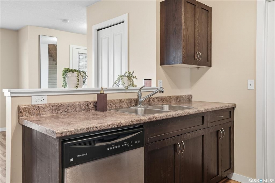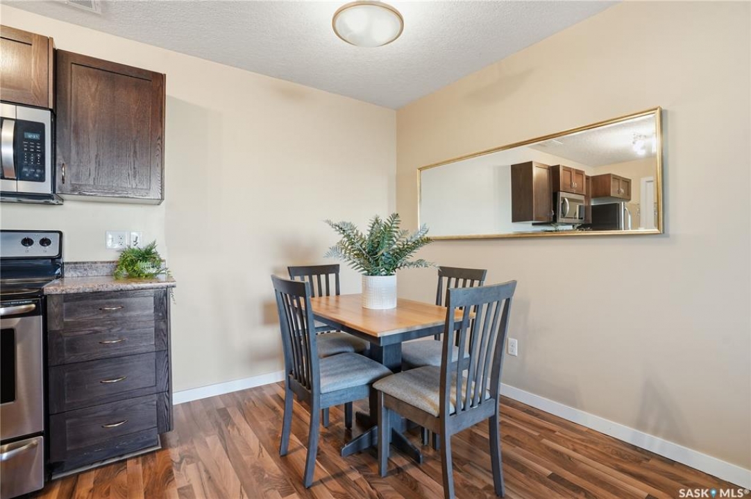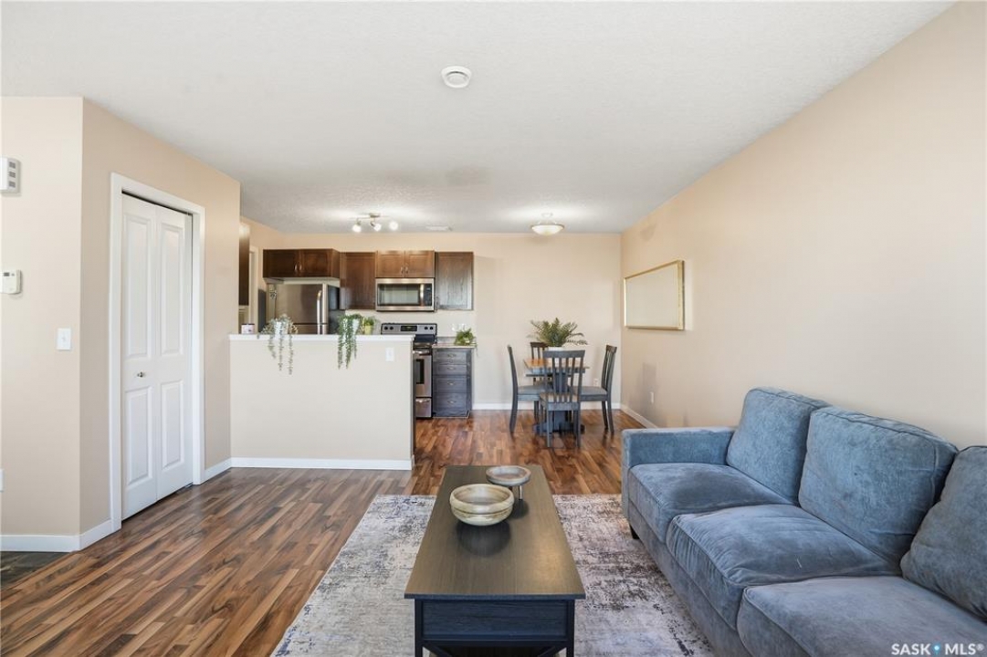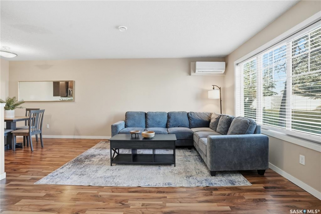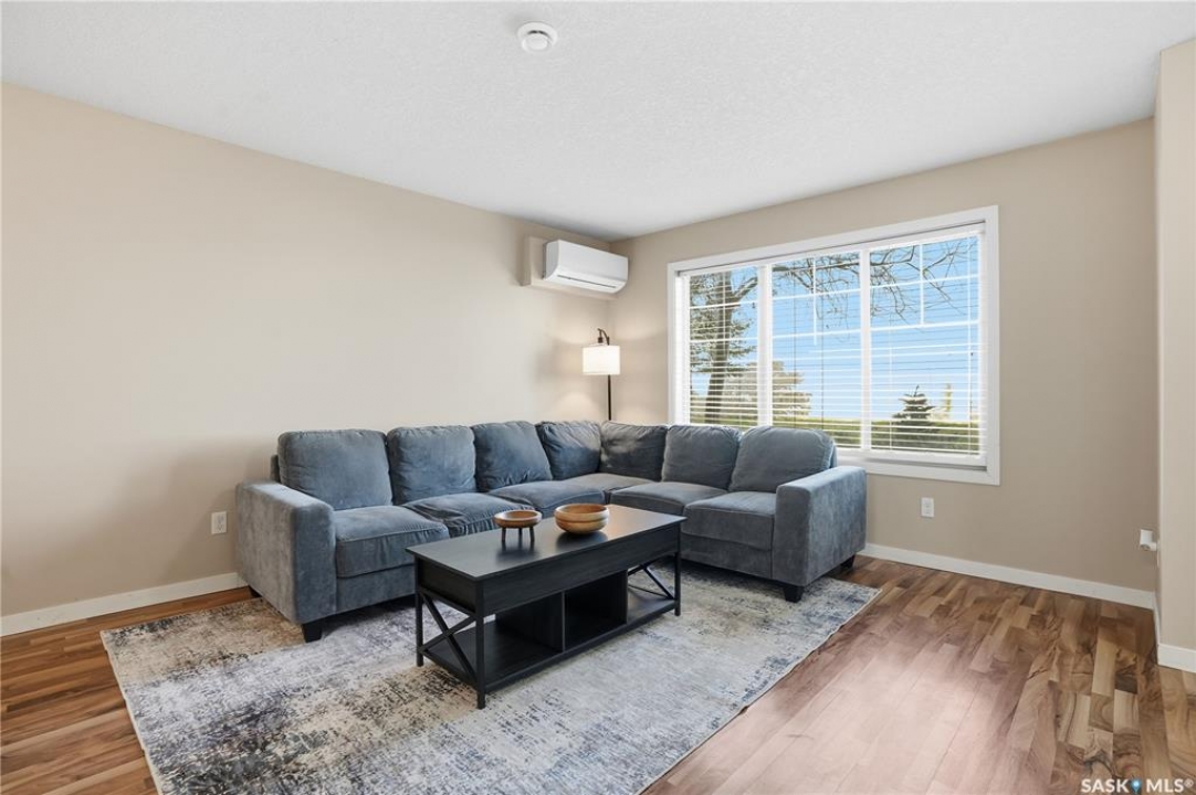Welcome to Unit 116 at 5521 Blake Crescent! This inviting two-storey condo offers comfort, convenience, and a peaceful setting — located on the north side of the complex with a private view of the green space. As you approach, you'll appreciate the charming front patio area — the perfect spot to unwind and enjoy warm summer evenings. Inside, the open-concept main floor is bright and spacious, featuring a large living area, a modern kitchen with a full stainless steel appliance package, a generous pantry, and a dedicated dining space that easily accommodates family gatherings or entertaining friends. Upstairs, you'll find two north-facing bedrooms, including a primary suite with a walk-in closet, a full 4-piece bathroom, and a conveniently located laundry area. This well-kept home is efficiently heated with in-floor heating to help keep utility costs low, and also includes a recently upgraded wall-mounted A/C unit and window coverings. Located within walking distance to many of Regina's northwest amenities, this condo offers the perfect balance of privacy and accessibility. Whether you're a first-time buyer, downsizing, or looking for a low-maintenance lifestyle — this home checks all the boxes!