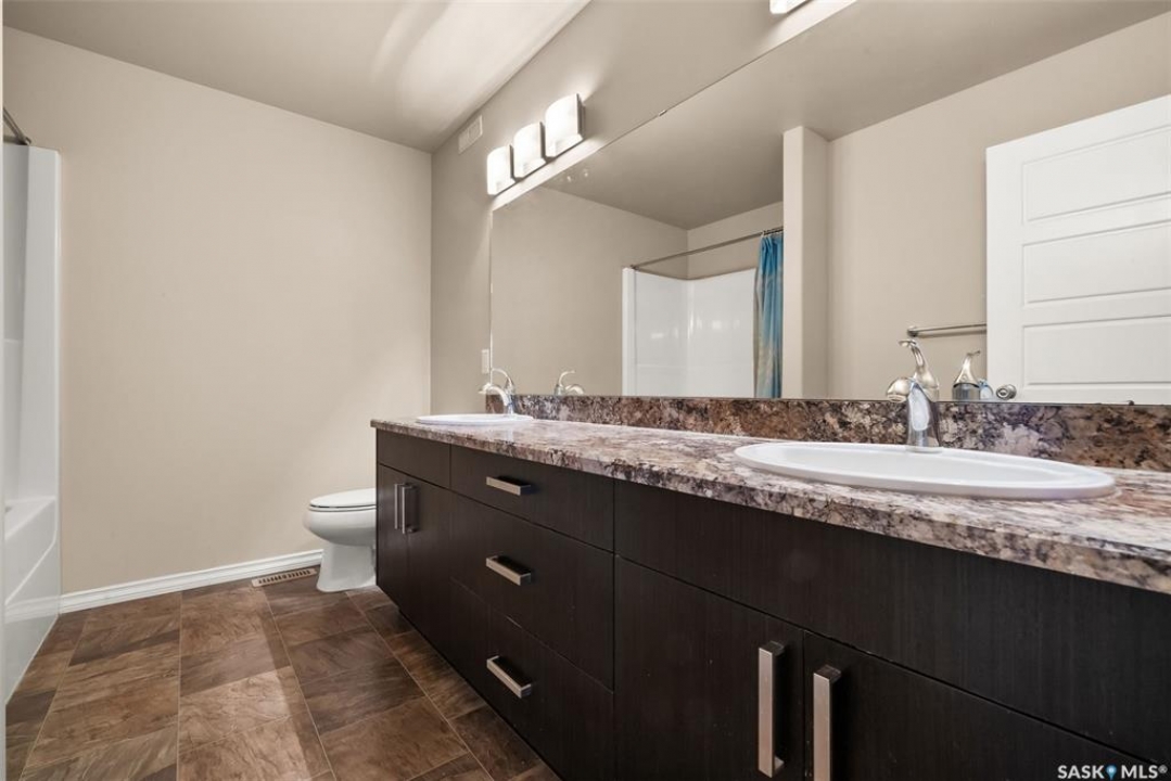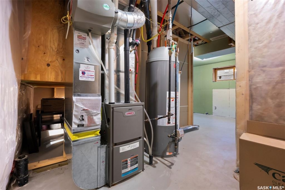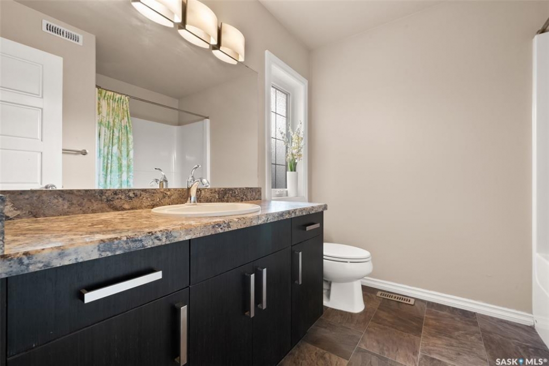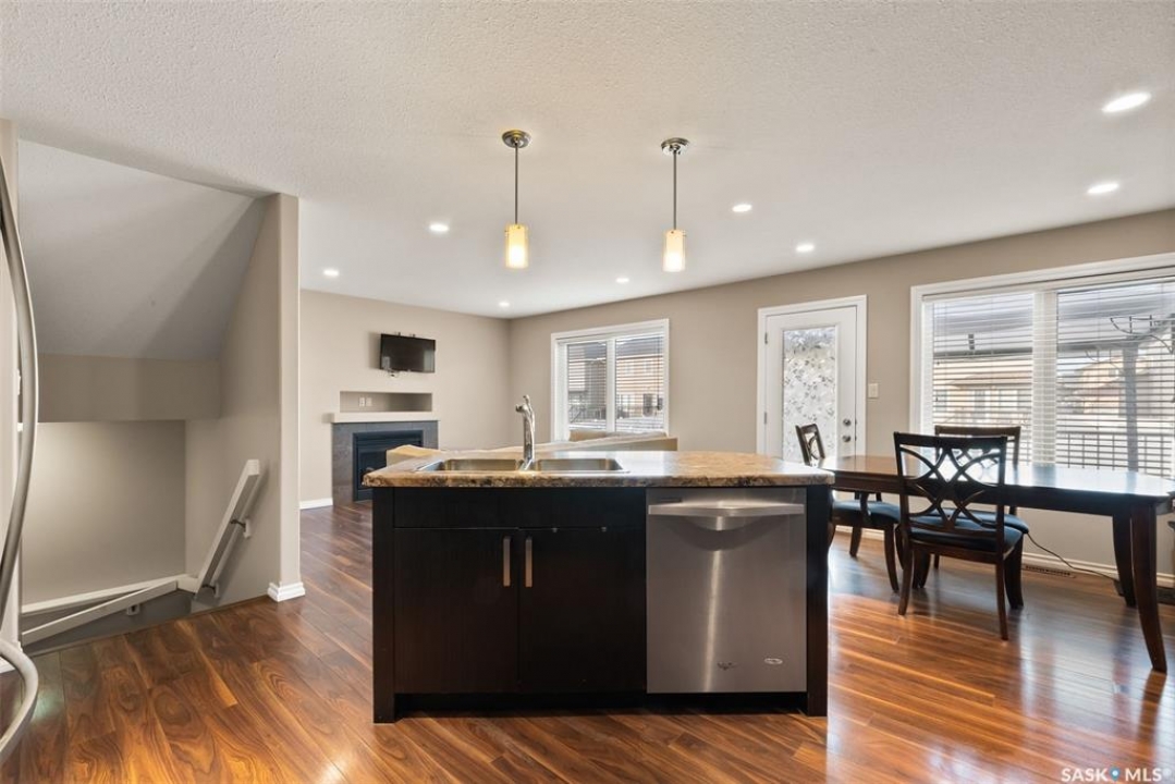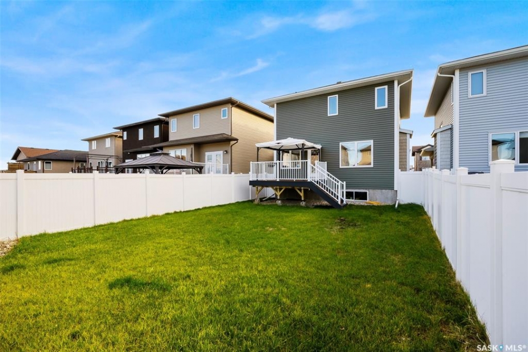 Welcome to 5113 Aerial Crescent. This 3 bedroom 3 bathroom family home in Harbour Landing combines modern comfort and thoughtful design. With attractive curb appeal, stack stone accents, and a covered front entry, the home welcomes you into an open-concept main floor. The kitchen offers plenty of space with soft-close cabinetry an island, and a great view of the living room, which is centred around a cozy gas fireplace. A convenient laundry area and 2-piece bath complete the main level. Upstairs, you'll find three spacious bedrooms and two bathrooms, including the primary suite with a 5-piece ensuite with two sinks, and a huge walk-in closet. The insulated basement is open for development, with a rough-in for a future bathroom and space for a 4th bedroom. Step outside to enjoy a fully finished backyard featuring a 10'x12' composite deck with pergola, PVC fencing, and a lush grass area, ideal for relaxing or hosting friends. Additional highlights include an 18' x 24' attached garage with direct entry, central A/C, and a prime location near walking trails, multiple neighbourhood parks and the Grassland shopping area.