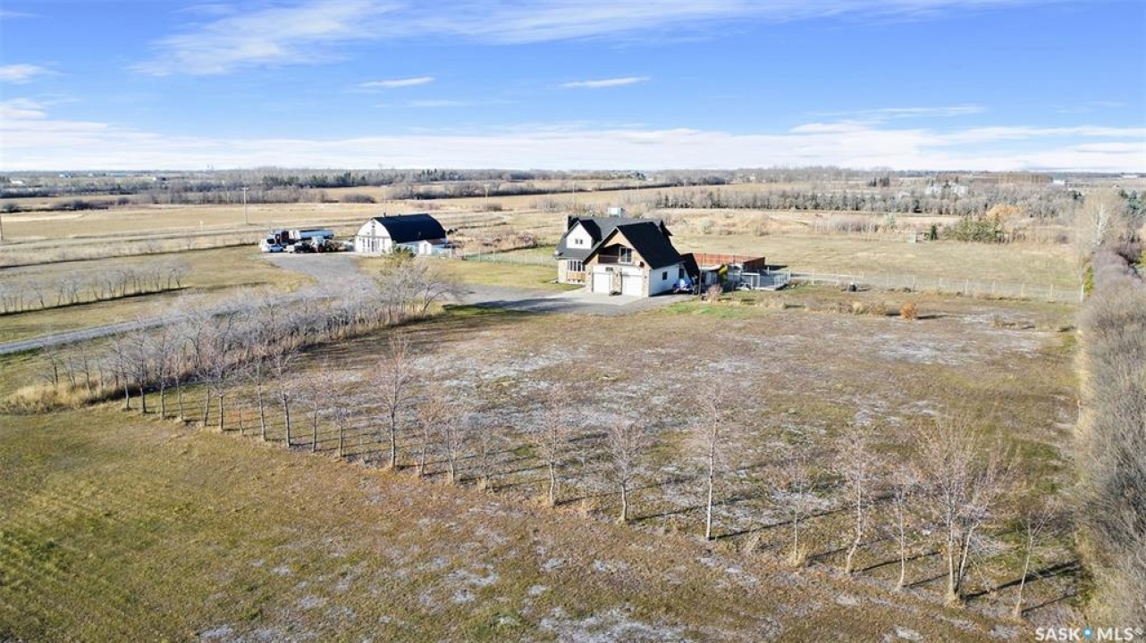 Located on 12 acres close to the City of Warman. The location is unbeatable for acreage living minutes to Warman and Martensville and a short drive to Saskatoon. The attached garage has direct entry into the home and is heated. The heated detached quonset has a two storey space located at the front with a shop area at the back of the building.