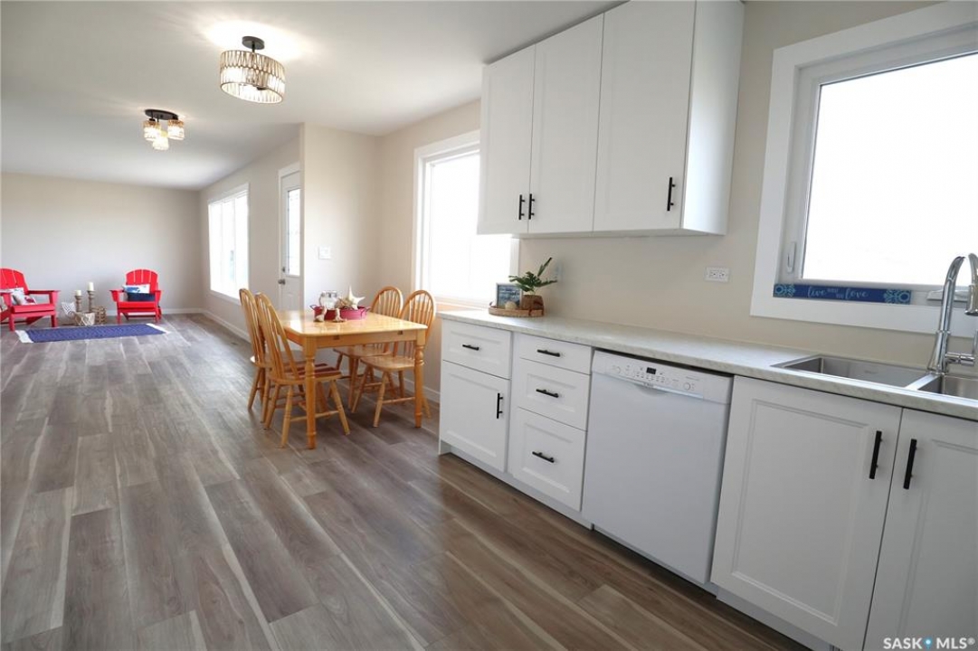 Completely Renovated 3-Bedroom Bungalow. Discover this beautifully renovated 1,216 sq/ft bungalow offering the ideal blend of comfort, style, and functionality. Whether you're seeking a full-time residence or a relaxing four-season retreat, this home delivers both versatility and quality. Every detail has been thoughtfully updated, featuring an open-concept floor plan, three spacious bedrooms, and a modern four-piece bathroom. The heart of the home is a bright, inviting kitchen that seamlessly flows into the dining and living areas. Large windows fill the space with natural light, highlighting the crisp finishes, modern cabinetry, and ample counter space—perfect for everyday living or entertaining guests. The open dining area provides a welcoming spot to gather and enjoy meals while overlooking the peaceful surroundings. The inviting mudroom with convenient laundry access adds to the home's practicality, while ample storage ensures a clutter-free lifestyle. Enjoy the outdoors on the newly constructed 12x22 deck, perfect for entertaining or simply relaxing in the fresh air and listening to the birds. The property sits on a generous lot with freshly seeded grass in a friendly community offering year-round access. The insulated crawl space, built on screw piles, provides durability and efficiency, while the inclusion of a brand-new well and a 1,500-gallon concrete septic tank adds peace of mind. Just a short one-minute walk away, a public reserve leads to the lake, offering convenient access for boating, Sea-Dooing, or ice fishing. Nestled in the heart of the Qu'Appelle Valley, this property offers endless recreational opportunities—from skiing at the local hill and attending provincial park, festivals to enjoying excellent fishing, and scenic walking or cross-country ski trails. This exceptional property combines modern comfort, outdoor adventure, and a welcoming community atmosphere—making it the perfect place to call home or escape for all four seasons.