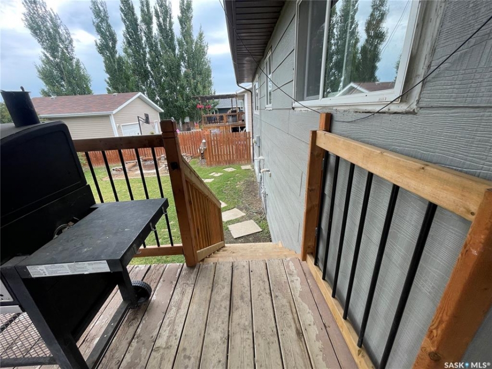 Welcome to 31 O'Connor Crescent in the desirable Rosedale subdivision of Kindersley, Saskatchewan! This charming five-bedroom, two-bathroom home is move-in ready and awaiting its new owners. Tenant occupied with the opportunity to take over the current lease. As you step through the front door of this bi-level home, you'll find yourself on the main floor, which boasts an updated kitchen featuring beautiful white cabinets, new countertops, and a spacious island with seating for your family, alongside ample space for a dining table. This open-concept area flows seamlessly into the living room, illuminated by large windows that invite abundant natural light. Garden doors lead out to a lovely covered deck, perfect for outdoor enjoyment. Down the hall, you'll discover three comfortable bedrooms, including a generously sized master bedroom that offers a convenient cheater door to the main bathroom. This four-piece bath has been updated with a new toilet, tub, cabinets, and fresh paint. The lower level provides additional living space with two good-sized bedrooms and a renovated three-piece bath, complete with a new shower, flooring, vanity, and toilet. You'll also find a large living room and a bonus room situated directly off one of the bedrooms. A spacious utility room houses the washer/dryer, furnace, water heater, sump pump, and a water softener (currently not in use). The expansive 6400 sq. ft. yard offers plenty of grassy area for children to play, along with a shed tucked behind a shrub line. This home has received numerous updates over the years, ensuring comfort and peace of mind: * **Furnace and Central Air:** 2016 * **Shingles:** 2013 * **Living Room/Dining Space Insulation:** Updated * **Water Tank:** 2019 * **Deck Railing:** 2019 * **Deck Stairs:** 2023 * **Windows:** Almost all windows have been updated between 2017 and 2023. This home is currently rented and is a great investment property. Call your realtor to view today!