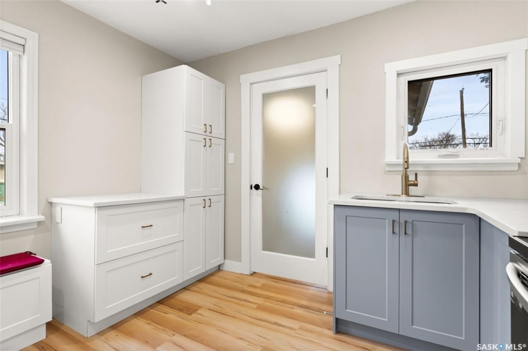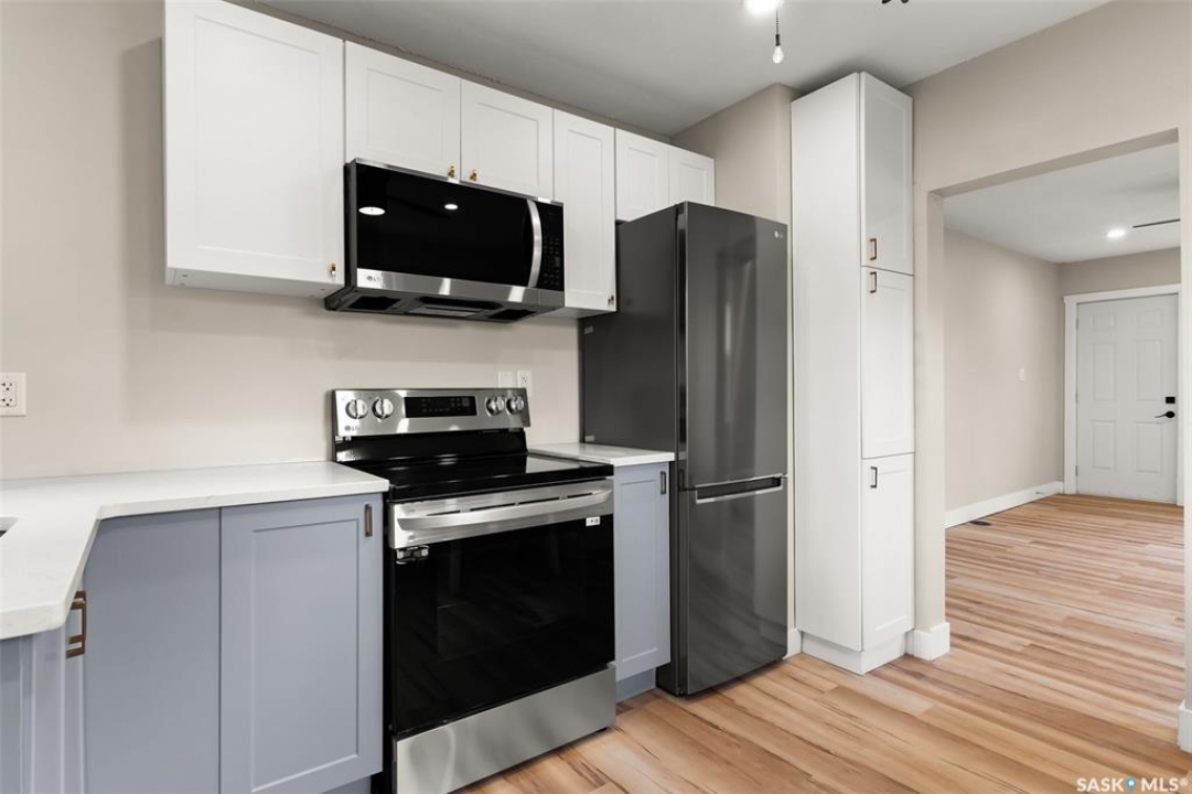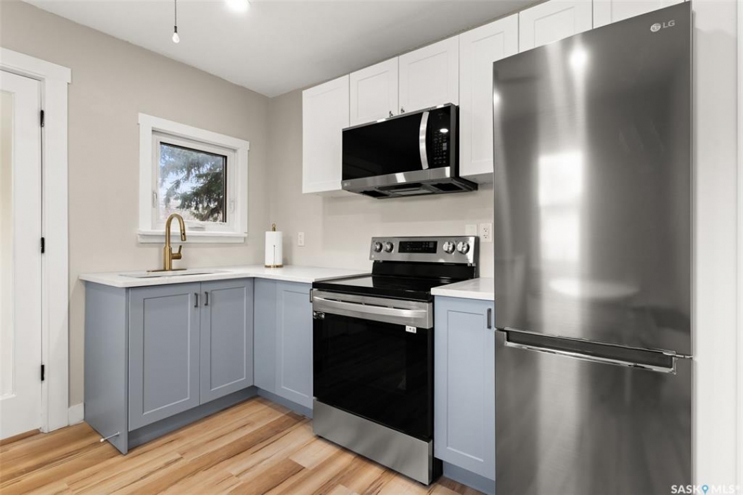 Welcome to 2301 Reynolds Street in Broders Annex—a refreshed bungalow offering move-in comfort in a mature, central location close to parks, schools, and downtown amenities. Thoughtful updates include fresh paint, modern lighting, and durable vinyl-plank flooring that carries through the bright living room and into the reimagined eat-in kitchen. The kitchen features crisp two-tone cabinetry, newer counters, brass-tone faucet/hardware, and stainless-steel appliances, including a microwave hood fan. Two comfortable bedrooms sit off the hallway beside an upgraded 4-piece bath with clean, contemporary finishes. Downstairs, a full, unfinished basement provides excellent storage and future development potential. Mechanical highlights include forced-air natural gas heat. Included: fridge, stove, microwave hood fan, washer, dryer, and window coverings. Outside, the fenced yard has alley access and room to add a future garage or parking pad. The backyard is perfect for customizing to your needs.