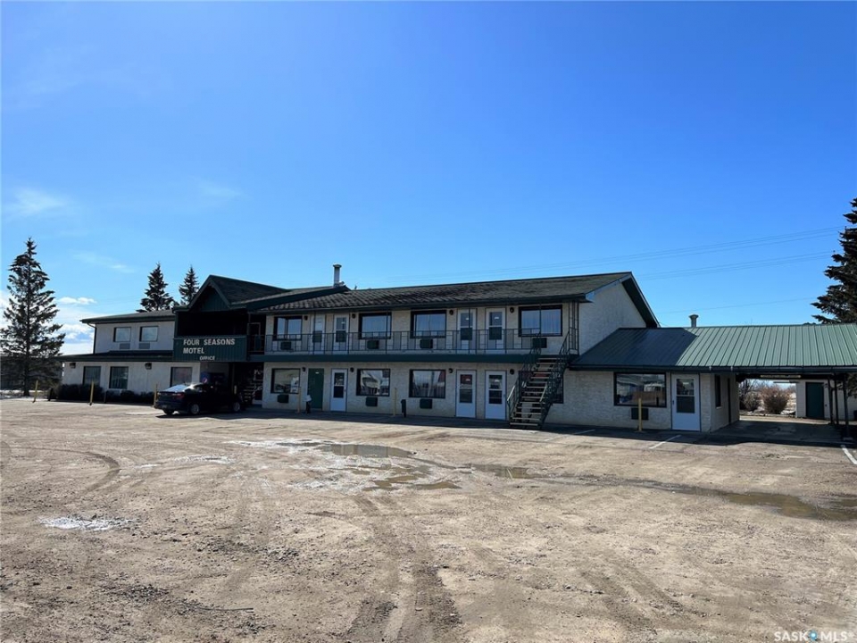 This 28 Suite Motel is in a great location along Highway #4 and is currently operating as Four Seasons Motel. Built in 1978 with an addition in 1995. The motel is 6615 sq. ft. and the lot measures 200ft x 140ft (.64 acre). Well maintained property with plenty of on-site parking. Main area consists of lobby/front desk, laundry, storage/courier room and maintenance room. The rooms are 10 single, 1 single kitchenette, 1 double handicapped, 10 double and 6 double kitchenettes. New Natural Gas fired boiler with baseboard radiant heat and wall units which act as both heaters and air conditioners. New shingles May 2025. The sellers also have a sister hotel, Nor'Wester Motor Inn, which is also listed for sale (MLS SK004760). Don't miss out on this great business opportunity in the thriving community of Meadow Lake. Check out these websites for more information: www.fourseasonsmotel.ca and www.meadowlake.ca