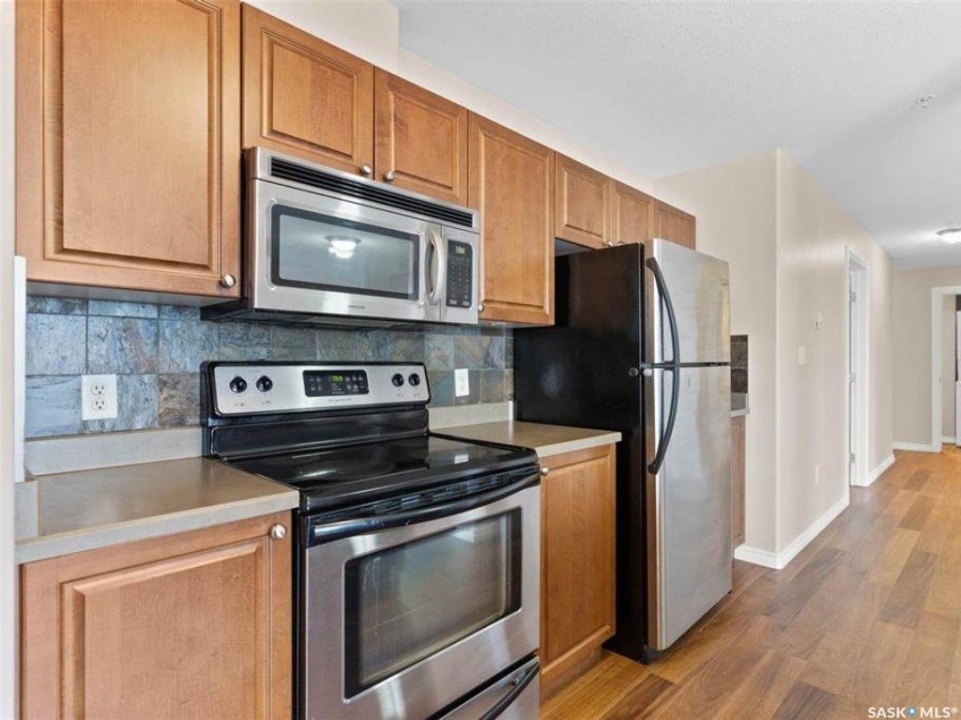 Bright and beautiful, this 2nd-floor corner unit at The Savannah delivers space, convenience, and amenities in one smart package. At 1,075 sq. ft., the open-concept layout welcomes you with a large kitchen featuring a generous island and pantry—perfect for everyday cooking or entertaining. Six appliances are included (fridge, stove, microwave, dishwasher, plus a new washer and new dryer), and in-suite laundry keeps life simple. The living and dining areas enjoy a north-west exposure with corner windows for natural light and sunsets. Step out to your private balcony—complete with a natural gas BBQ hookup—for easy outdoor dining. Recently painted throughout for a fresh, move-in ready feel. The primary bedroom offers excellent storage and a spacious ensuite, while the second bedroom and full bath provide great flexibility for guests, a home office, or hobbies. Located close to the elevator for added convenience. Parking is outstanding: underground, heated tandem stall for 2 vehicles—a rare find that adds comfort and value year-round. Residents enjoy a well-equipped building with elevator access, an amenities room, exercise room, guest suite for visitors, recreation centre, and ample visitor parking. If you're looking for a clean, well-kept condo with thoughtful upgrades, strong amenities, and true convenience, this north-west facing corner home is the one to see.