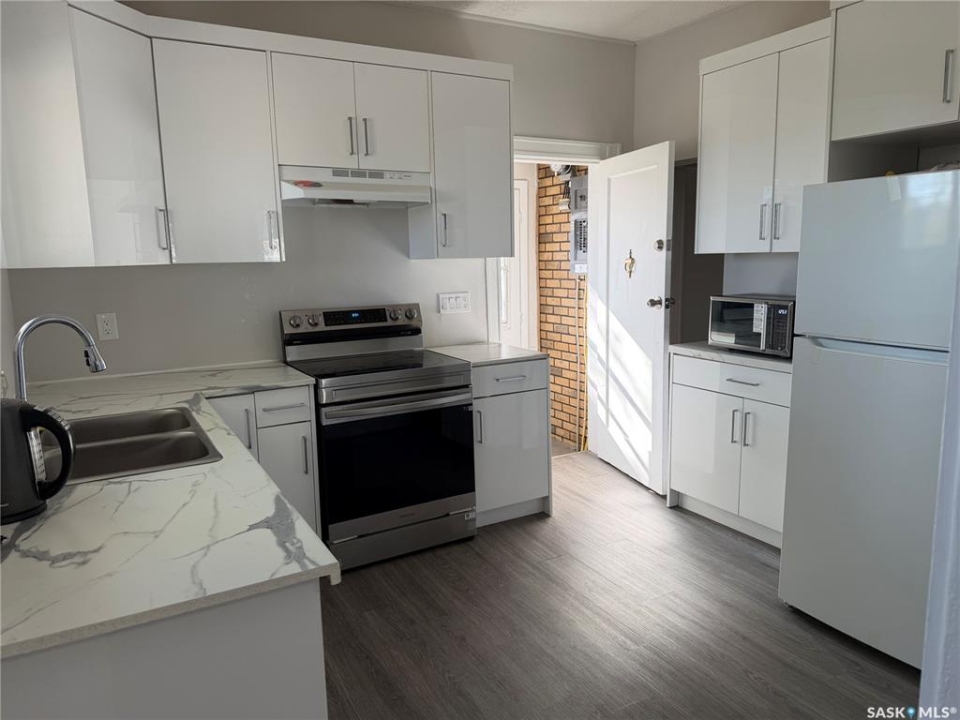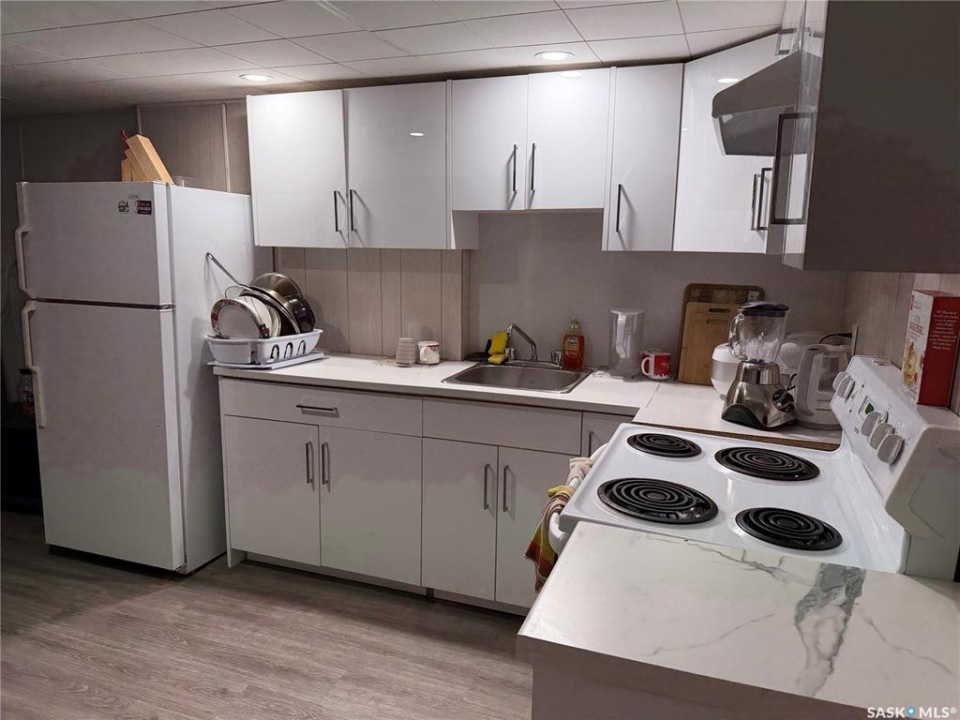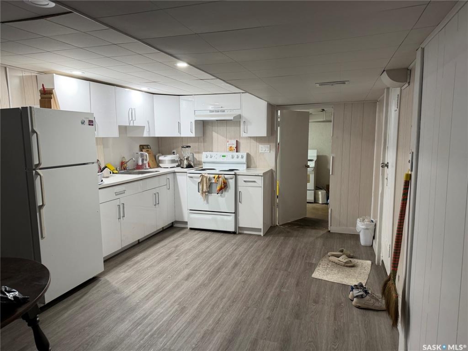 Located directly off Idylwyld Drive with immediate access to downtown, Saskatchewan Polytechnic, transit routes, and 33rd Street amenities, this 6-bedroom, 2-bathroom character home in Caswell Hill presents a solid revenue property or value-add opportunity. Currently tenanted month-to-month and tenants are interested in staying. Enter through the front foyer into a spacious living room with vinyl plank flooring throughout. The three main floor bedrooms are adjacent to the living room, along with a three-piece bath. Continue through to the updated kitchen and dining area featuring newer cabinetry and brand-new appliances, where you'll find the separate entry leading to the back garage and parking area. Head downstairs to discover the shared laundry room, three additional bedrooms, a second full kitchen, living space, and a four-piece bathroom. The lower level walkway shows concrete flooring, offering opportunity for improvement with proper finishing. Recent updates include newer furnace, new roof, LED lighting throughout, most windows replaced, and new appliances. While cosmetic updates have been completed, this property presents significant room for enhancement and value-add potential. Whether you're capitalizing on strong student rental demand near Sask Poly, or developing a mortgage helper with proper finishing touches, the bones are solid. Single detached garage plus concrete driveway parking.Buyer and Buyer Rep to verify all measurements.