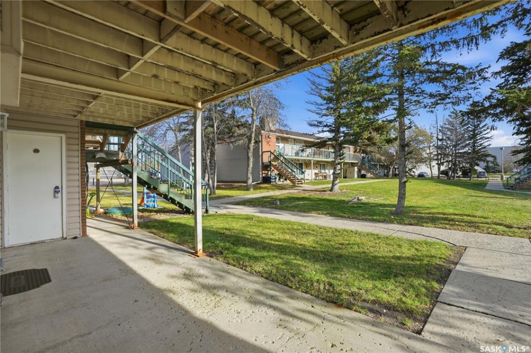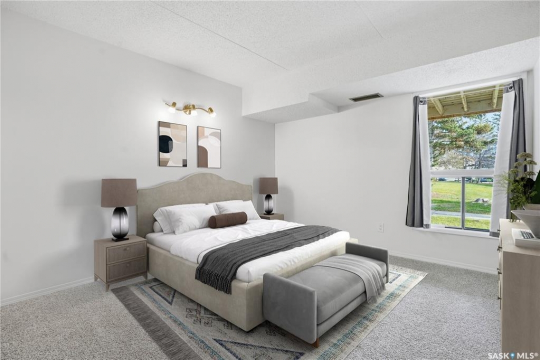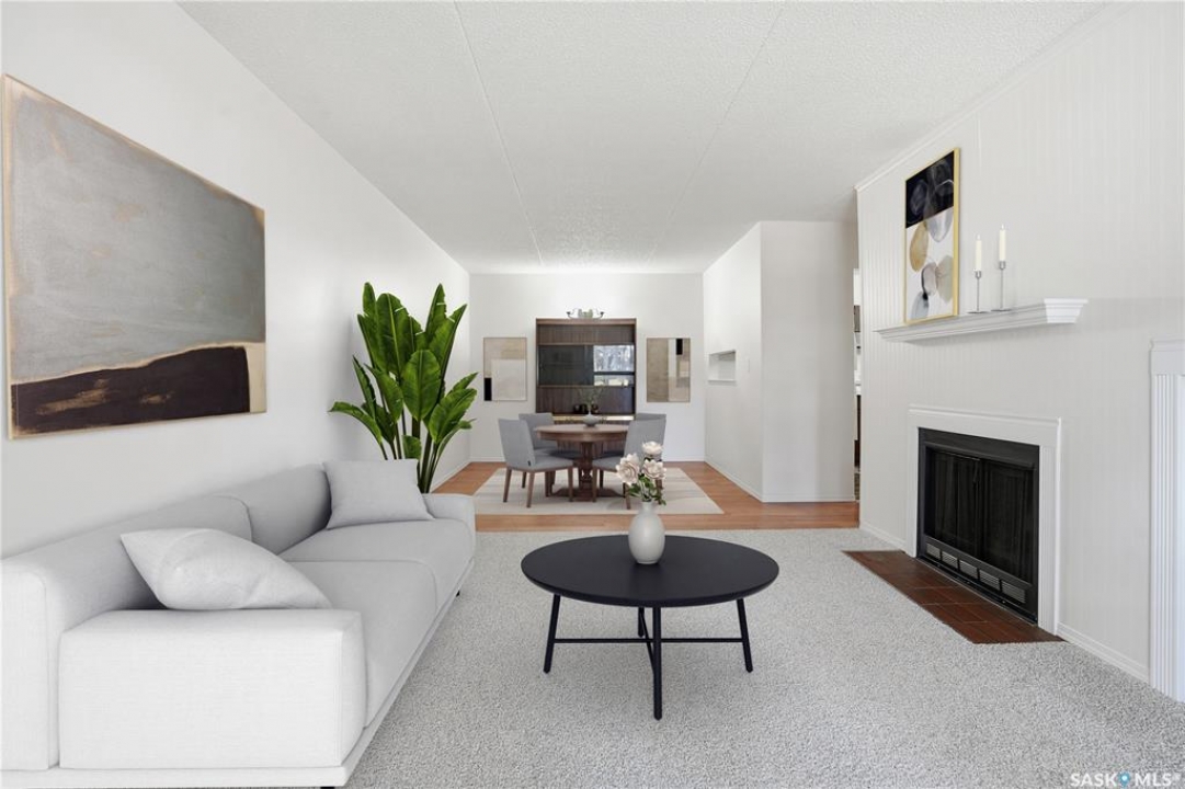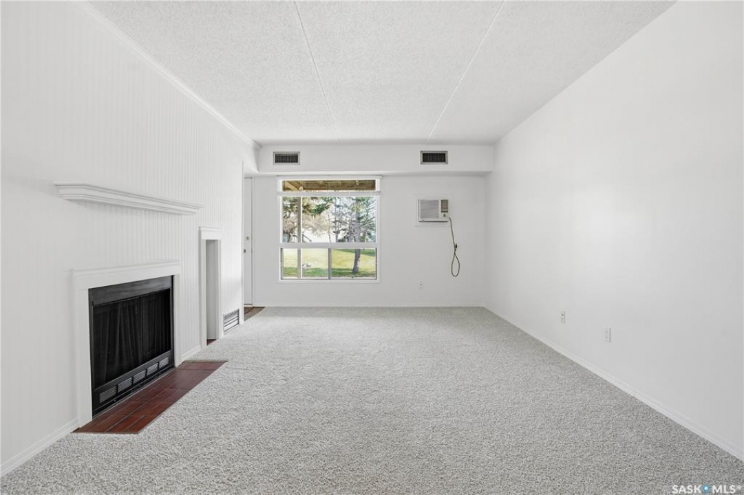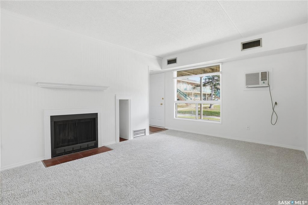 Welcome to easy living in this move-in ready 1 bedroom, 1 bathroom ground-floor condo. Freshly painted and featuring brand-new carpet, this inviting home includes a cozy wood-burning fireplace—perfect for relaxing evenings in. The layout offers a spacious dining area, a kitchen with plenty of cabinetry, and a large in-unit laundry and storage room for added convenience. The 4-piece bathroom is clean and functional, and the east-facing patio overlooks peaceful green space with an outdoor storage room for extra space. Enjoy the ease of condo living, with fees that cover water, snow removal, lawn care, exterior building maintenance, a healthy reserve fund, and more. Ideally located close to north-end amenities, shopping, restaurants, and public transportation, this condo offers both comfort and convenience. Quick possession available—move in and enjoy!
