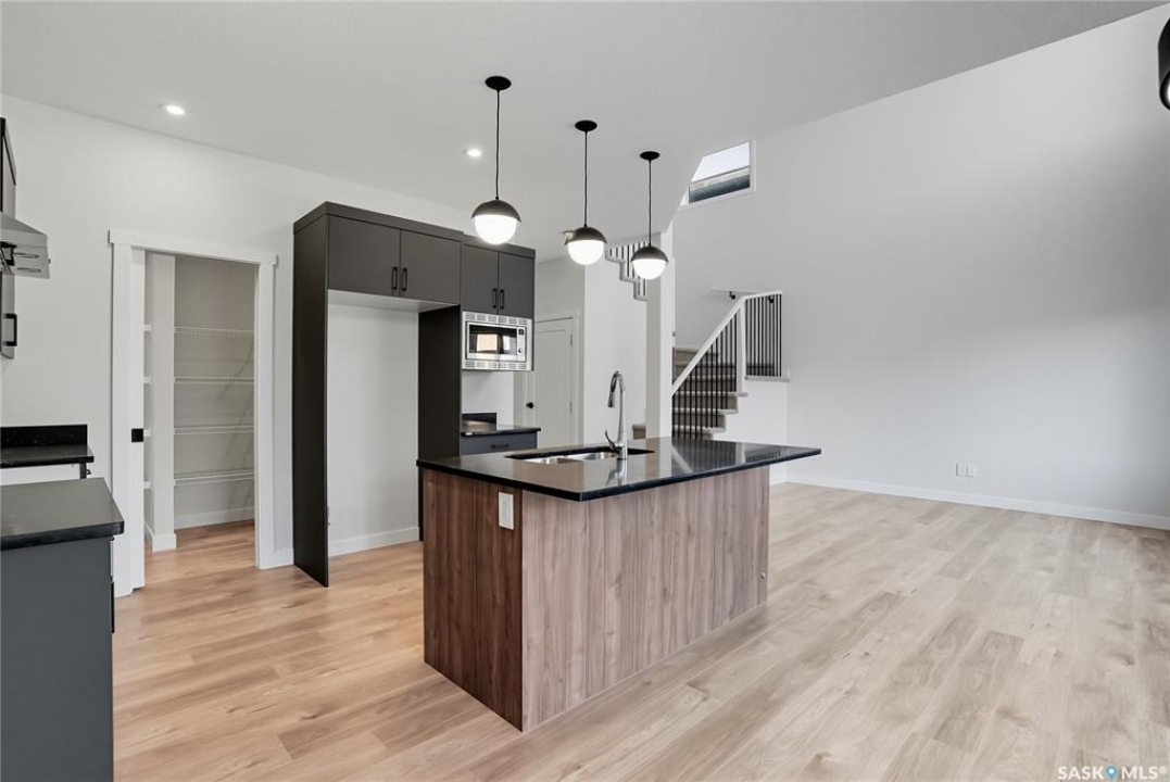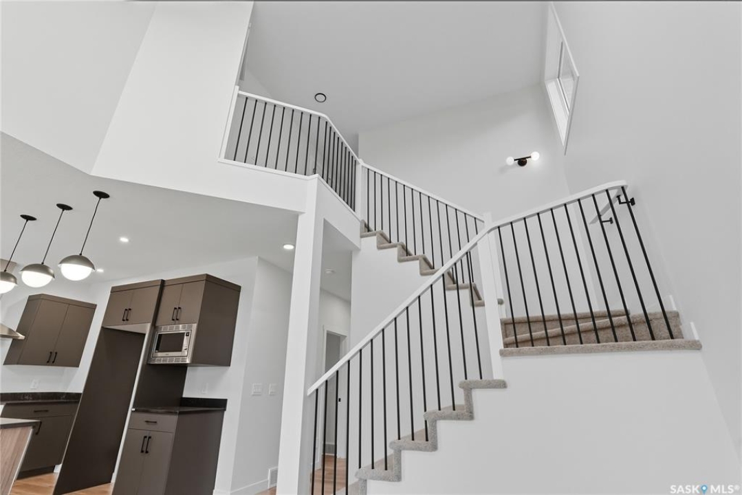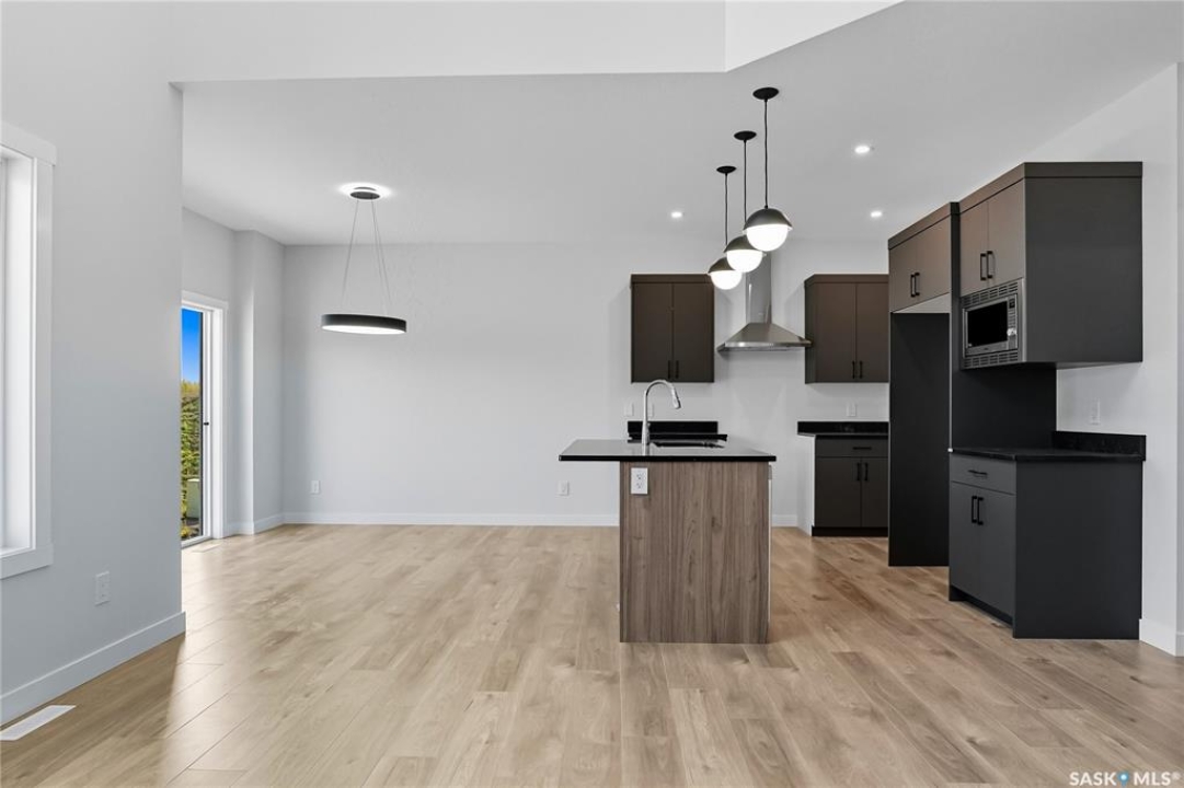 Immediate possession available! Step into this thoughtfully designed 1,766 sq ft Malibu model by North Prairie Developments, located in the vibrant community of Brighton. The open-concept layout is bathed in natural light, with soaring ceilings in the great room and expansive windows, creating an inviting atmosphere. On the main floor, you'll find a convenient bedroom and 3-piece bathroom, perfect for guests or a home office. The spacious kitchen features a large island, ideal for both meal prep and entertaining, and flows seamlessly into the dining area. For those who love extra storage and functionality, there's an option to include a spice kitchen/butler pantry in the walk-in pantry. Upstairs, the large primary bedroom offers a walk-in closet and a relaxing 4-piece ensuite, providing a private retreat. Two additional bedrooms, a second 4-piece bathroom, and a laundry room complete the upper floor, offering both comfort and convenience. This home also features a double attached garage, making it perfect for modern family living. This plan has an option for a 1 bedroom legal basement suite. All North Prairie homes are covered under the Saskatchewan Home Warranty program. PST & GST included in the purchase price with a rebate to the builder. Errors and omissions excluded. Prices, plans, promotions, and specifications subject to change without notice. Basement development is an optional upgrade.