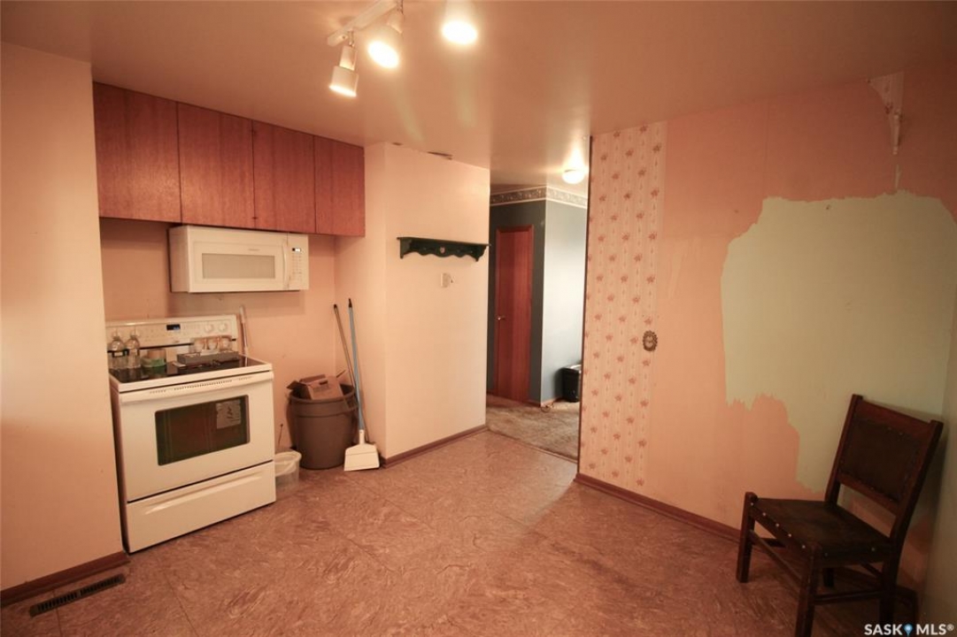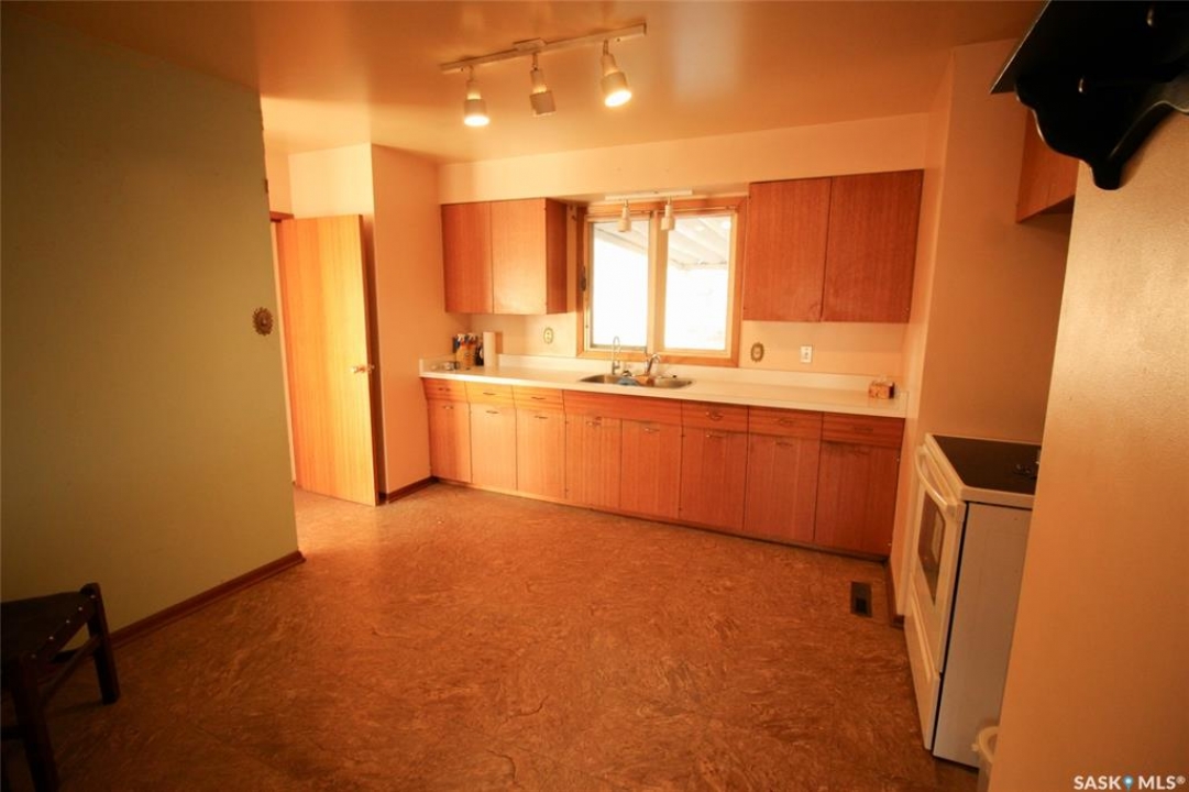 This charming little dollhouse on 6th Avenue West in Shaunavon is the perfect place to begin your homeownership journey. Ideally located on the north side of the Public School yard, your everyday view is filled with the sound of laughter and the sight of children at play — a truly heartwarming backdrop. Step inside to a welcoming entryway that opens into a bright, spacious living room. Between the living room and kitchen sits a cozy dining area, perfect for family meals or morning coffee. The kitchen overlooks the backyard and offers an impressive bank of cabinets, ample workspace, and room for a breakfast table. Both main-floor bedrooms are generously sized and filled with natural light, while the full 4-piece bath is neat and functional. Throughout the home, you'll find beautifully preserved mahogany doors, trim, and solid wood accordion-style closet doors that add character and warmth. Downstairs, the fully developed lower level features a massive family room with a gas fireplace — an ideal spot for movie nights, games, and gatherings. A spacious guest bedroom and a second 3-piece bath offer great flexibility, while the laundry area provides extra storage space. Notable updates include a high-efficiency furnace (2011) and a new hot water heater (2015). Outside, the backyard is ready for relaxation, featuring a covered patio, a large lawn, and fencing on two sides. A garden shed is also included to keep your tools organized. This is a well-loved, move-in-ready home with timeless charm and thoughtful updates — an incredible value in a great location!