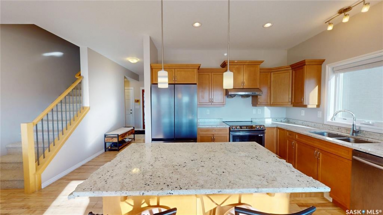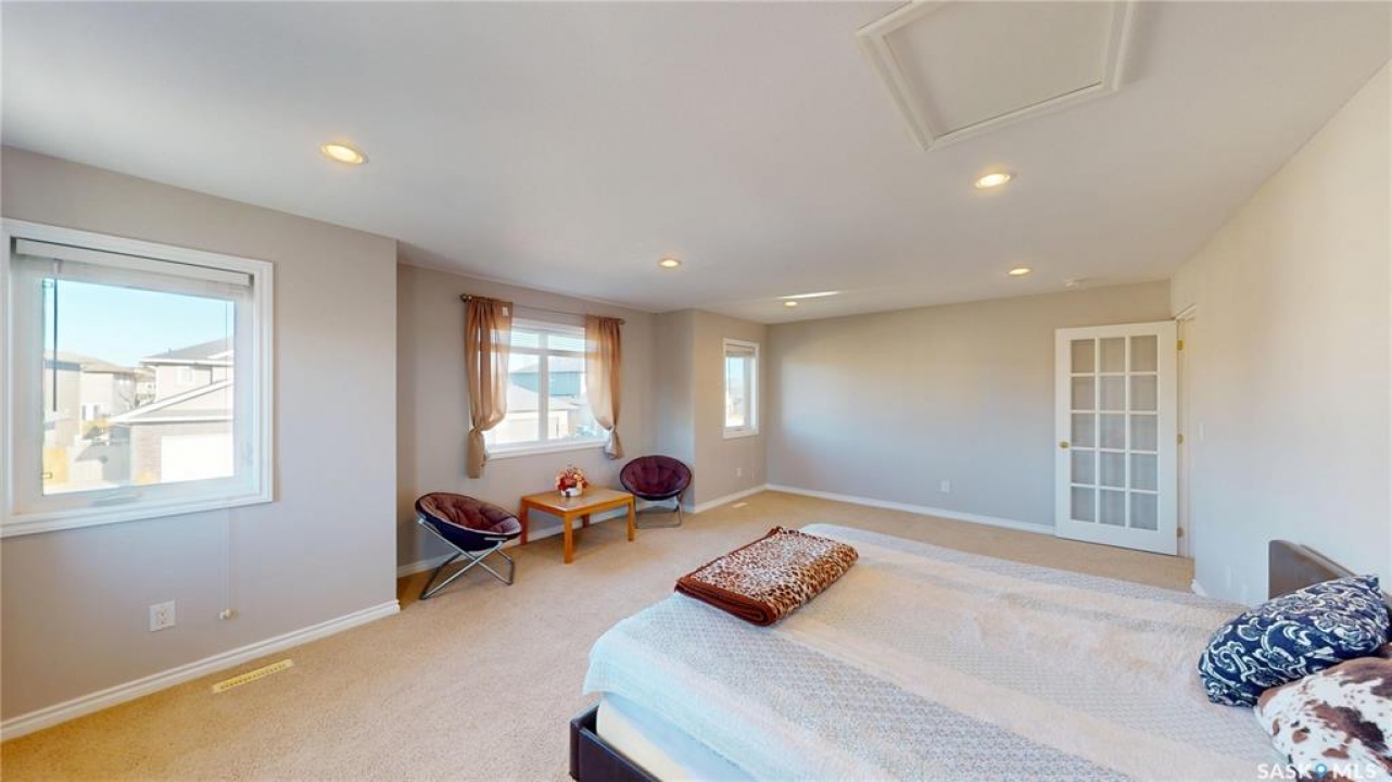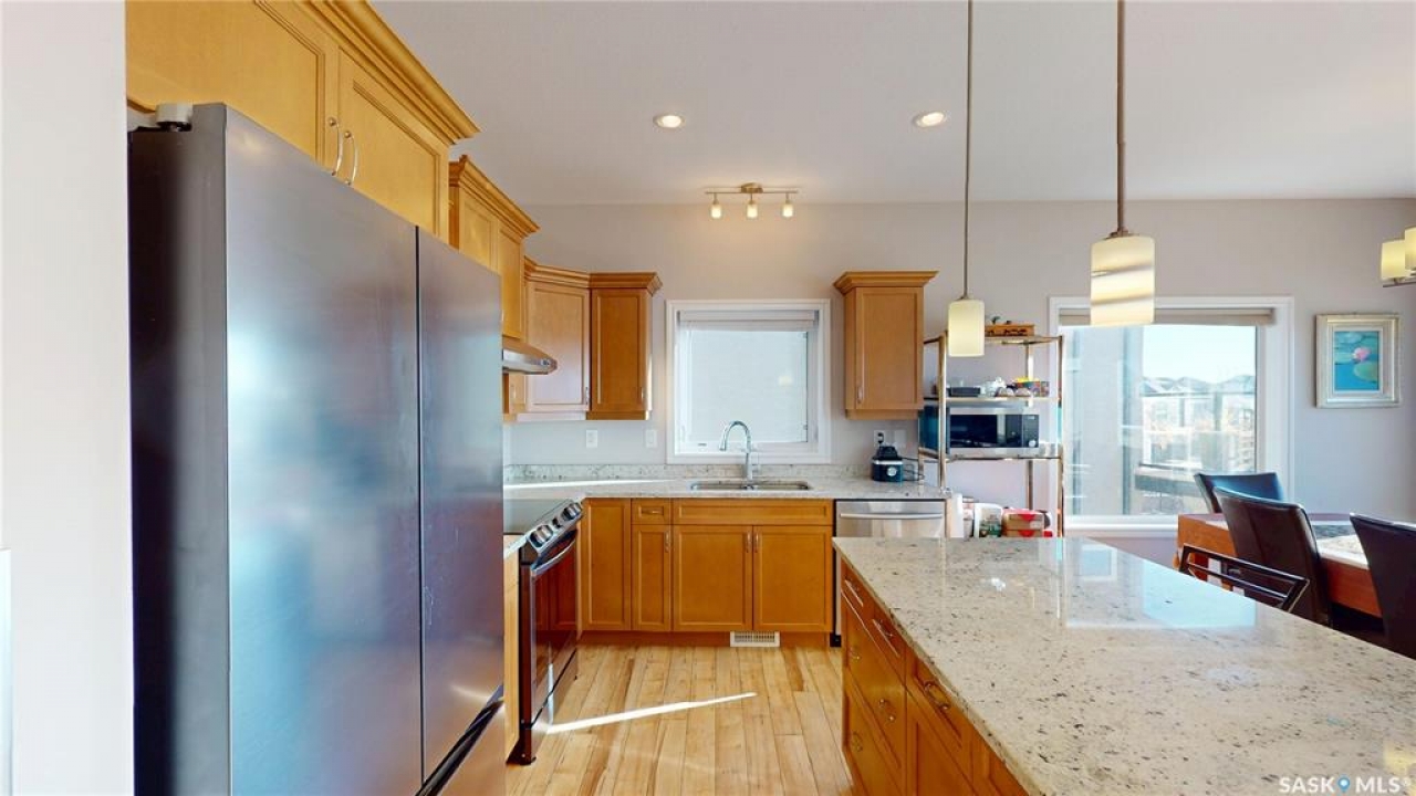 Exceptional walkout bungalow with over 3,000 sq ft of living space backing onto Howard Harding Park with views of Marshall Hawthorn Pond in Stonebridge. Please view the Matterport 3D virtual tour and floor plans in this listing. This home impresses from the moment you step inside, offering a bright and spacious open-concept layout under 9 foot ceilings, filled with natural light from its many large windows. The kitchen is both functional and stylish, featuring generous amounts of granite counter space and a large island - ideal for entertaining and everyday living. The dining area offers a picturesque view of the yard and park, with a garden door opening to a large deck where you can BBQ while taking in the scenery. The living room is highlighted by a warm gas fireplace and a stone surround that adds both charm and comfort to the space. The large primary bedroom has a luxurious ensuite boasting a corner soaker tub, separate shower, and walk-in closet. Two more bedrooms, a four-piece bathroom, and convenient main-floor laundry complete the main level. A spacious second-floor bonus room provides endless possibilities - an extra bedroom, recreation area, office, or a cozy hangout for the kids. The fully developed walkout basement provides a large family room, a games area, two more bedrooms (no closet in one), a three-piece bathroom, a den, and another laundry in the utility room. Lower-level garden doors access a beautifully landscaped yard with a concrete patio, ground-level deck and firepit area. Other features include direct access to the boarded and insulated double garage and central air conditioning. Ideally located close to schools, parks, walking trails, restaurants, shopping, and quick access to Circle Dr and Highway 11. A professional home inspection report, Property Information Disclosure (PID), and gas line inspection are all available for buyers to review prior to making an offer. Call now for your own private viewing.