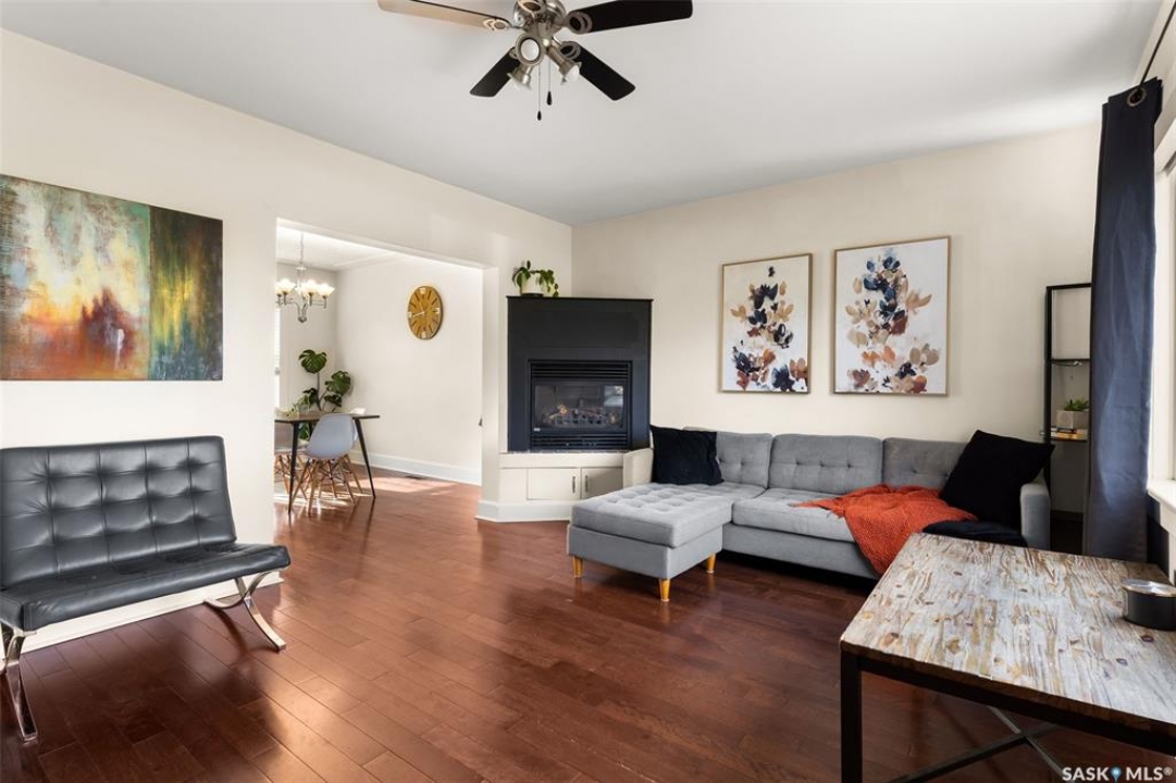 Located on a beautiful tree-lined street in the heart of Cathedral, this charming and well-maintained home is ideally located just steps from 13th Avenue's vibrant shops, cafés, and amenities — plus an easy walk to Mosaic Stadium, the Brandt Centre, and the Field House. Step inside to a warm and inviting living room featuring a cozy gas fireplace, perfect for chilly winter evenings. The dining room offers plenty of space for entertaining and opens seamlessly to the kitchen. The practical addition of a mudroom at the back provides extra storage and everyday convenience. Upstairs, you'll find two spacious bedrooms and a bright & sunny updated 4-piece bath with a tiled tub surround. The developed basement adds extra living space with a comfortable family room and ample storage in the laundry/mechanical area. Outside, the fully fenced, south-facing backyard is perfect for enjoying sunny days on the deck. There's parking for up to three vehicles with space to add a future garage if desired. This Cathedral gem blends character, comfort, and modern updates — all in one of Regina's most beloved neighbourhoods. Contact your sales agent to schedule your viewing!