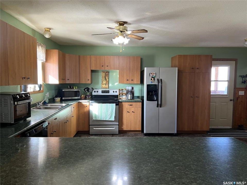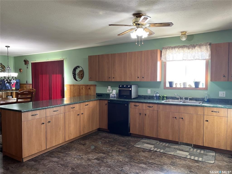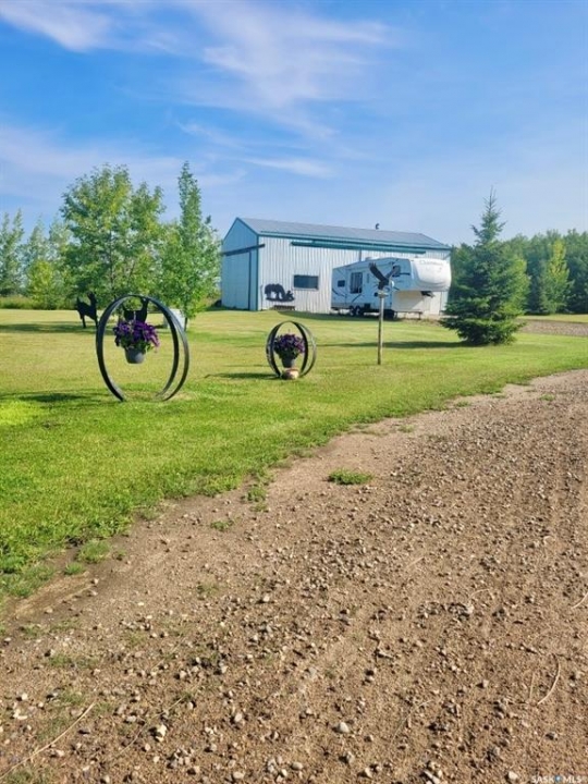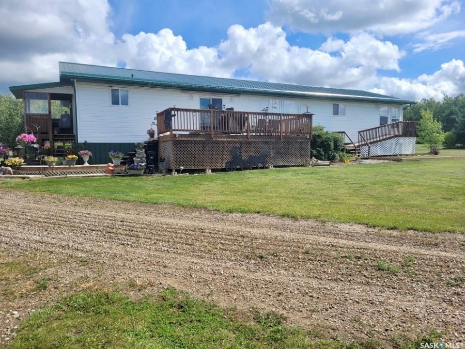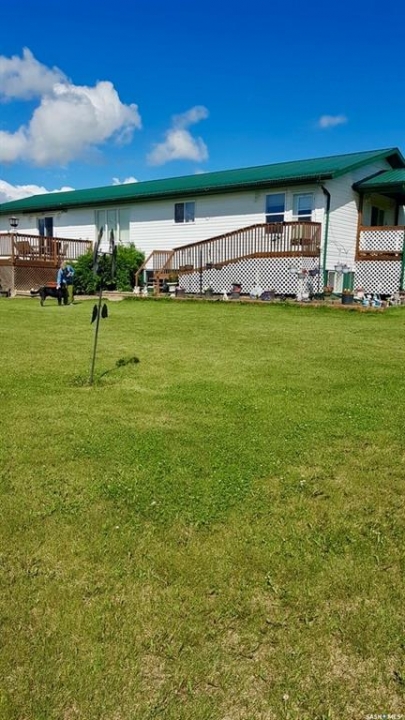 This 2006 bungalow is 2,220 sq ft with a 30'x50' shop on 10 acres in the RM of Loon Lake and would make an excellent family home. Main level features large kitchen with lots of counter space, dining area with access to a west facing deck, living room, primary bedroom with 4pc ensuite, 2nd bedroom, 2pc bathroom/laundry, mudroom plus a one bedroom fully self-contained nanny suite on main level. Suite has its own laundry and south facing covered deck. The basement hosts a large family room, 2 more bedrooms, 4pc bathroom, utility room, cold storage room, large storage room and another small storage room. You also have access to the back yard from the basement. New propane furnace in 2015 and basement has hot water infloor heat. New water treatment system in 2021, pressure tank and septic tank pump 2022. Metal walled/roofed shop built in 2008 has 16' walls set on concrete foundation, two sliding doors, 220 volt plug, loft/storage area and air compressor. Yard is beautifully landscaped with lots of shrubs, fruit trees, garden area and 2 sheds. Located 9km West of Makwa