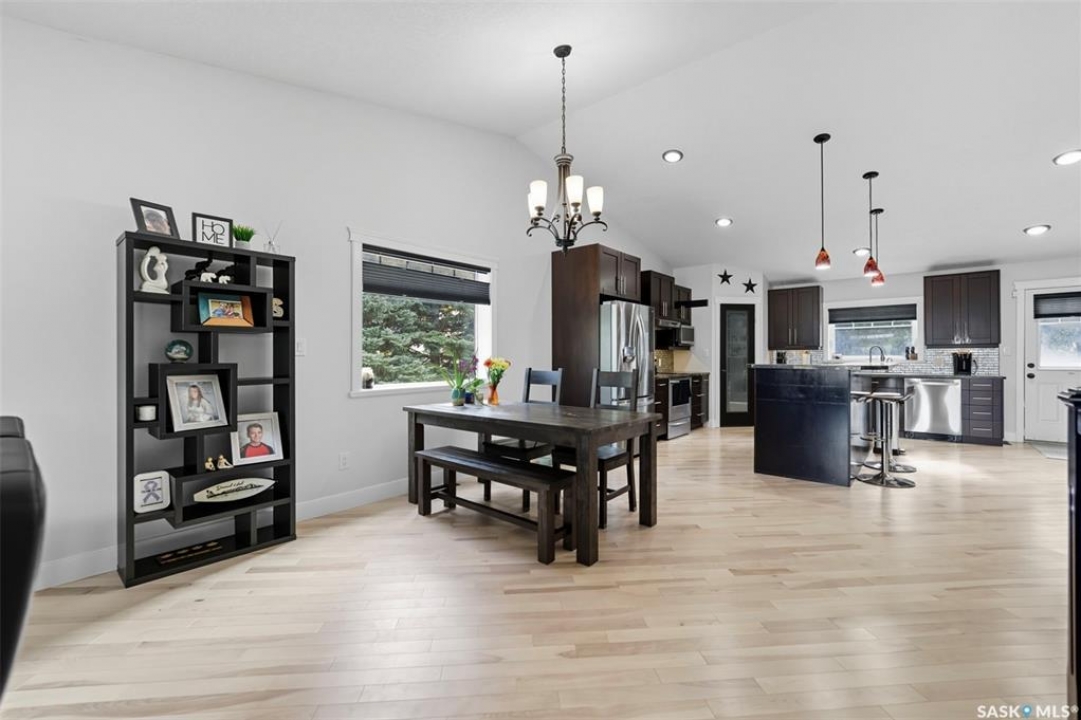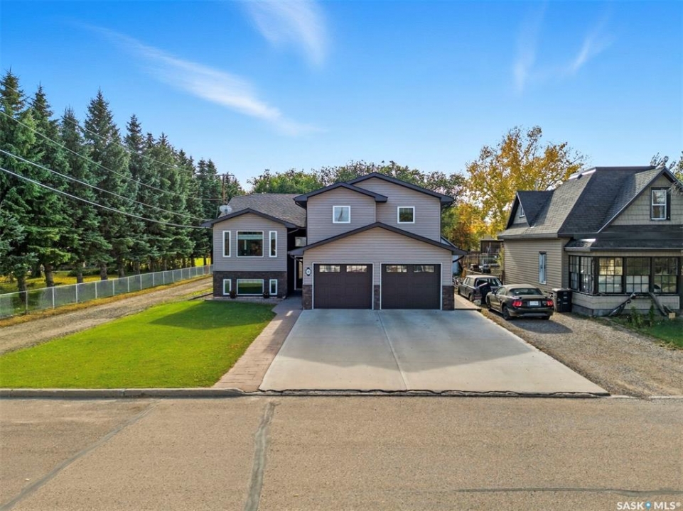 Prepare to be impressed by this stunning modified bilevel in the busy town of Watrous! Step into the roomy entrance with porcelain tile floors and a huge closet. Main level has an inviting open concept living room, dining area and kitchen - perfect for family living and entertaining! The huge kitchen is a chef's dream, offering an incredible amount of maple cabinetry with ample counter space, corner pantry and updated stainless appliances. Beautiful hardwood floors extend throught the main living areas ind into the bedrooms, enhancing the warm and welcoming atmosphere. The deck overlooking the backyard is easily accessed from the kitchen, offering ideal space for outdoor enjoyment. The spacious primary suite is a true retreat, complete with double sinks and a separate tub and shower in the ensuite. A huge walk in closet completes the suite. A full bath with custom tile work, and laundry with storage and folding counter are easily accessed from the main living area or the 3 bedrooms on the 2nd level. Custom blinds throughout provide privacy and light control. Downstairs, you''ll find a sprawling family room, a den and bonus room (currently set up as home gym), 2 more bedrooms, a 3 pc bath with tiled shower and the utility room. Foyer also accesses the double attached heated garage. Concrete driveway and stamped concrete sidewalks are the icing on the cake. Back yard is mostly fenced and xeriscaped - easily customizable for your best use. There is an alarm system hardwired but not currently active.Located just off Main Street behind the cenotaph park, this home is footsteps to the elementary school and all the amenities of down town. Watrous is a thriving community within 30 minutes of 3 mines and 45 minutes from BHP Jansen. Saskatoon is just over an hour away, and Regina is under 2 hours. Resort Village of Manitou Beach is 5 minutes away. Call today for your viewing appointment!