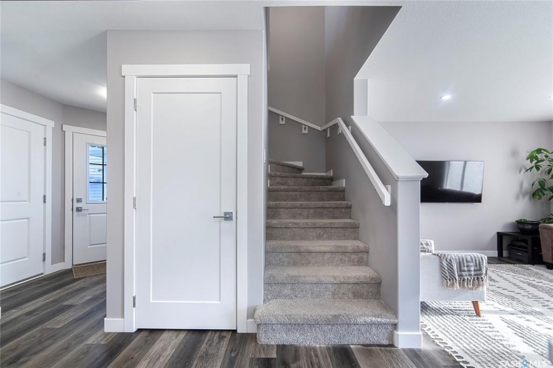 Welcome to 148 Tufts way in sought after neighborhood of Brighton, a true functional masterpiece! This half duplex model offers 1,436 sqft of luxury living with 3 Bed + Bonus room, 3 Bath, Double attached garage. This brilliant design offers a very practical kitchen layout, complete with quartz countertops and ample cabinets, walk in pantry, a great living room with extra large windows overlooking backyard, perfect for entertaining and a 2-piece powder room on main floor. On the 2nd floor you will find 3 spacious bedrooms with a walk-in closet off of the primary bedroom, 2 full bathrooms, second floor laundry room with extra storage, bonus room/flex room with an oversized windows giving the home an abundance of natural light. This house is equipped with all Stainless steel appliances , washer & dryer an a central air conditioner. This property features a front double attached garage fully landscaped front, back and side yard with rear deck and double concrete driveway. There are NO CONDO FEE'S! This gorgeous semi-detached home truly has it all, quality, style and a flawless design! Brighton is currently the fastest growing neighborhood in Saskatoon and offers everything you need to stay close to home. Multiple restaurants, convenience stores, Landmark movie theatre, Wilson's Greenhouse, Stoked kitchen & bar, Motion Fitness, Save on Foods, Shoppers Drug Mart etc. The local parks are some of the best designed parks in Saskatoon! This is truly the place you want to live! Basement is unfinished with a separate entrance option and a possibility to convert to a legal suite to generate rental income and if eligible buyers can be apply for SSI (Secondary suite incentive) Rebate. Call today to book a viewing!