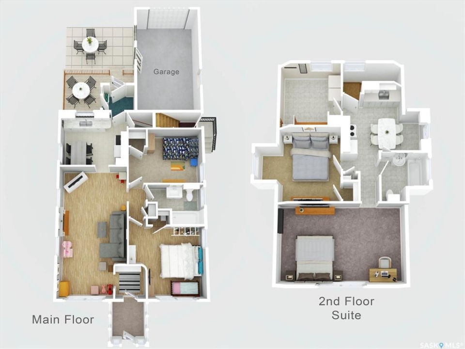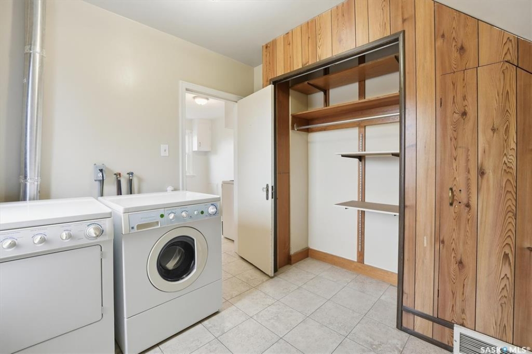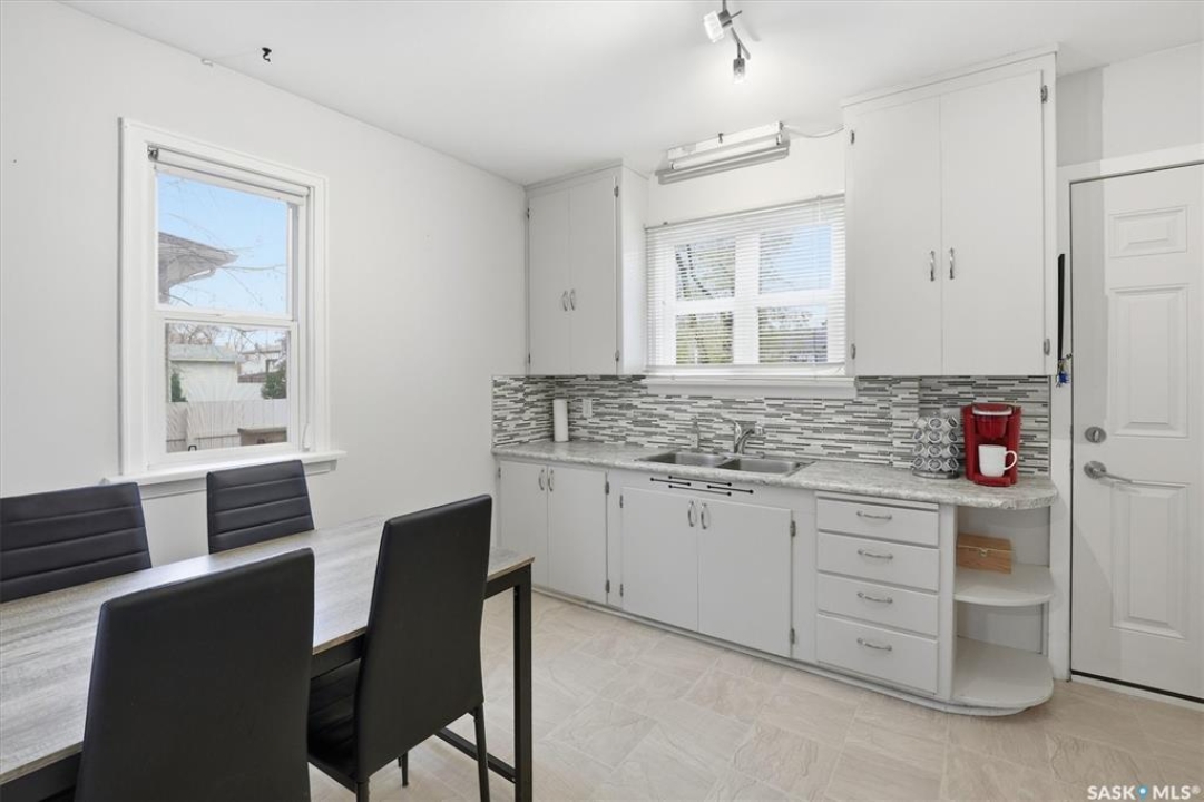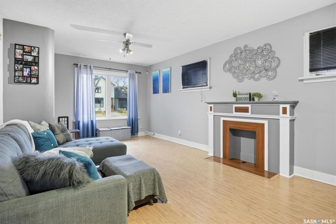Welcome to 1413 Alexandra Avenue, an exceptional opportunity in one of Saskatoon's most sought-after neighbourhoods — North Park. Just steps from the South Saskatchewan River, Meewasin Trail, parks, and schools, this home combines character, functionality, and investment potential. Sitting proudly on a 50' x 125' lot, the property features mature trees, a fully fenced yard, and both rear off-street parking and a single attached garage. The exterior is finished in durable stucco, offering timeless curb appeal. Inside, you'll find 1,326 + sq. ft. of living space split into two self-contained suites, offering two bedrooms om main and one bedroom+ on second floor suite, a kitchen, and a 4 piece bathrooms with updated tub surround systems—ideal for generating rental income, housing extended family, or living in one suite while renting out the other. The main floor welcomes you with a spacious, sun-filled living room featuring a decorative fireplace facing, and a functional kitchen with an eating area. Plus full height open basement with laundry. Upstairs, the second suite offers large windows, its own kitchen, and comfortable living room with large window, one bedroom + and large laundry/storage room. Major updates have been completed over the years, including the roof 2014, windows 2009, furnace 2014, A/C 2021and water heater 2017, providing peace of mind for the next owner. This property also holds incredible redevelopment potential—the lot and zoning make it an ideal candidate for a duplex or fourplex, subject to city approval. Whether you're an investor seeking reliable returns, a developer envisioning your next infill project, or a homeowner looking for charm and flexibility in a riverside community, this North Park gem is a must-see.