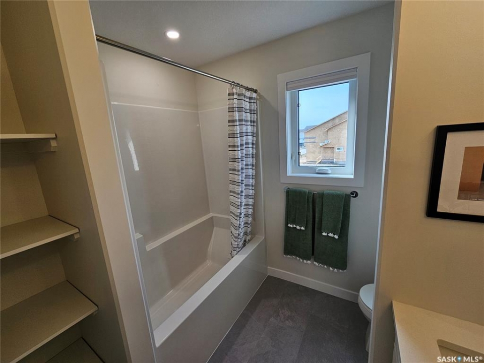 Welcome to the Havenberg, Ehrenburg Master Builders latest offering in Eastbrook. Discover this stunning 2,194 sq ft two-story brand-new build. This elegant home features a double attached garage and a separate side entrance. As you step inside, you're welcomed by an open and spacious floor plan, perfect for modern family living. The bright foyer flows effortlessly into the inviting kitchen and living area, creating a perfect space for relaxation and entertaining. The kitchen boasts an abundance of counter space, a functional island with an eat-up bar, and ample storage in the butlers panty, beautiful quartz counters and tiled backsplash. Large sunlit dining room and spacious living room with fireplace feature wall. A versatile main-floor bedroom, which can also serve as a home office or den, full bath and locker/mudroom completes the first level. Upstairs, the expansive primary suite has a large walk-in closet and a luxurious en-suite bathroom featuring dual sinks. Three additional spacious bedrooms all generous in size. The convenience of second-floor laundry, a bonus room perfect for entertaining or play area, and an additional 4-piece bathroom round out this level. Bsmt is perimeter framed and insulated, rough in plumbing and separate side entrance. Large yard with rear deck. 20x24 double attached garage. Situated in the vibrant community of Eastbrook close to parks, schools, and all essential amenities. The Havenberg home blends comfort, style, and functionality. Superior construction foundation has a 4” rebar reinforced slab and is built on piles. Exterior features front landscaping, sidewalk, and underground sprinklers. Saskatchewan new home warranty included. So many extras with an Ehrenburg Home call today for more details and a personal viewing! Interior photos from previous build.