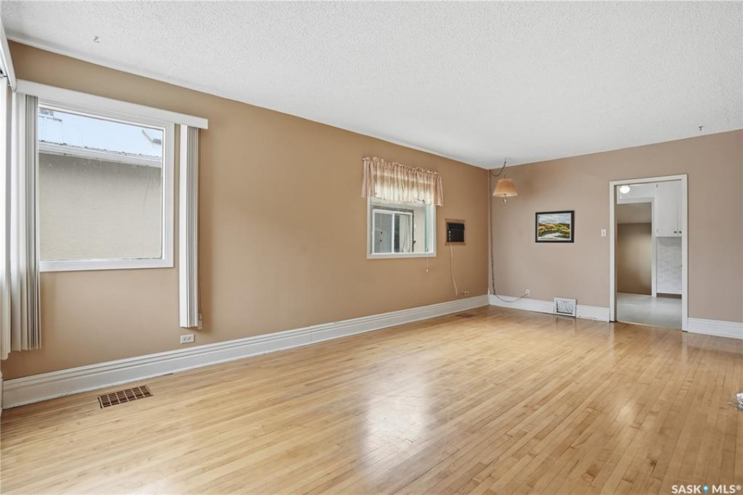 Very well cared for bungalow close to school. 2 bedroom, 1 bath with basement rec room, hardwood through main floor. Large bright living room with South and East windows. Nice kitchen with ample counter space including fridge, stove and dishwasher. Main bedroom has walk-in closet. 4 piece main bath with acrylic soaker tub. Basement offers rec room with wet bar area, Laundry area with washer and dryer and storage area. Large backyard with room for Garage off the alley.