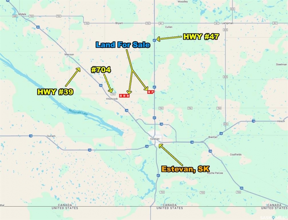 An exceptional opportunity to acquire 765 acres of highly productive farmland ideally located just outside the city of Estevan, Saskatchewan in the RM of Estevan #5. This land offers excellent accessibility and exposure along the 704 Grid, strategically positioned between Highways 47 and 39, with frontage along Highway 47. All five parcels have three phase power lines along the perimeters. The property is divided into two main blocks. Block 1: 473 contiguous acres running east–west, including a half section that can be farmed as a single field, with a grid road separating the third quarter. Block 2: 292 contiguous acres situated at the junction of Highway 47 and the 704 Grid. The acreage in the southeast corner of the SE 27-3-8 W2 is not owned by the seller and is not included. Land Details: According to SAMA Field Sheets, the land features approximately 663 cultivated acres with a soil final rating weighted average of 52.08. Topography is rated T1 (level to nearly level) and stones S2 (slight). Saskatchewan Crop Insurance classifications include three “H” quarters and two “J” quarters, reflecting strong productive capacity across the farm. Occupancy: The land is available to be farmed by the Buyer for the 2026 crop year, with no right of refusal in place. Sale Structure: Four quarters are being sold by way of share sale (NW 24-3-9 W2, NE 24-3-9 W2, NW 19-3-8 W2, Pt SE 27-3-8 W2 Ext 1), while one quarter will be sold by title transfer (SW 27-3-8 W2). While the owners preference is for the sale of shares for the four quarters they will also consider offers for the titles (non-share sale).