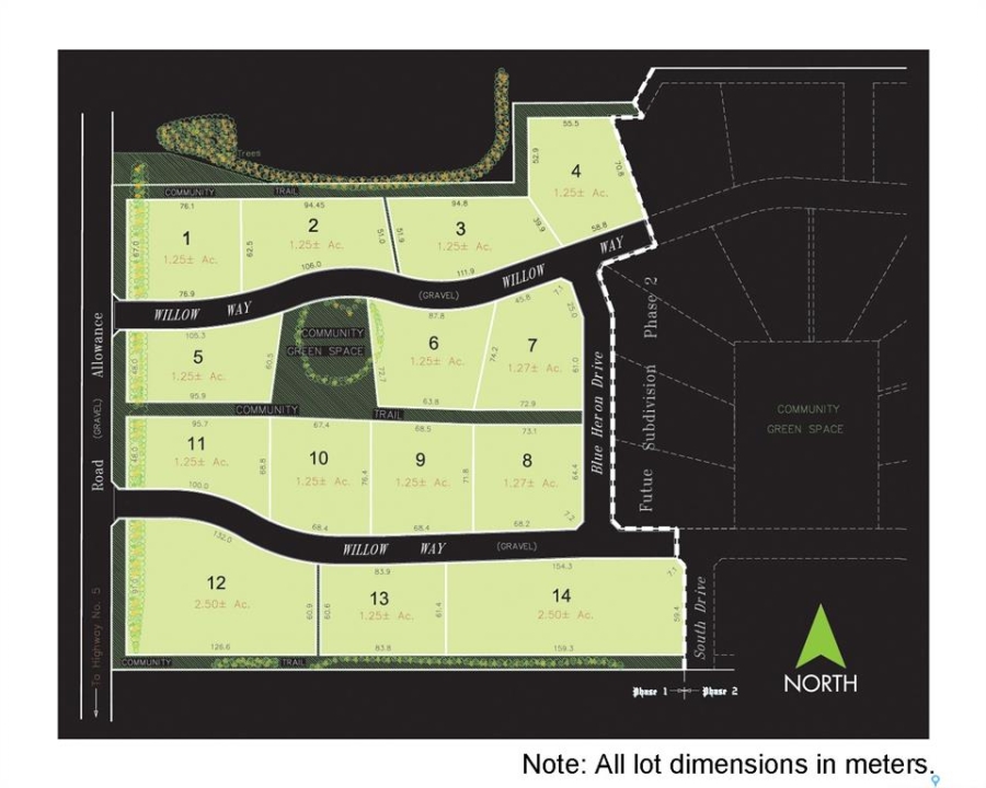 Buy Now, Pay Later! Get ready to build your dream home at Prairie View Properties! Lot 12 Willow Way at Prairie View Properties is a landscapers dream come true. Current shallow pond can be further developed into an impressive water feature or converted to more upland space for your development creations. North facing lot on 2.5 acre lot. Located in the RM of Humboldt #370, just 2 KM North East of the City of Humboldt & approx. 40 min from BHP Jansen Mine. Relax and enjoy the natural beauty of this acreage development enhanced by greenspaces, walking trails and a pond. Lots are serviced to the Property line with Power, Phone, Natural Gas and SHL Rural Pipeline Water. Sewer Service to be selected by Buyer. Approved for Type 2 Mound or Septic Holding Tank. Purchase Price is Plus GST. Buyer to pay non-refundable down payment to hold the lot with the obligations to pay the balance upon occupancy or two years. Call today for more information or to view!