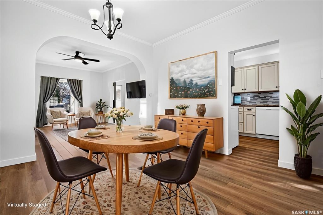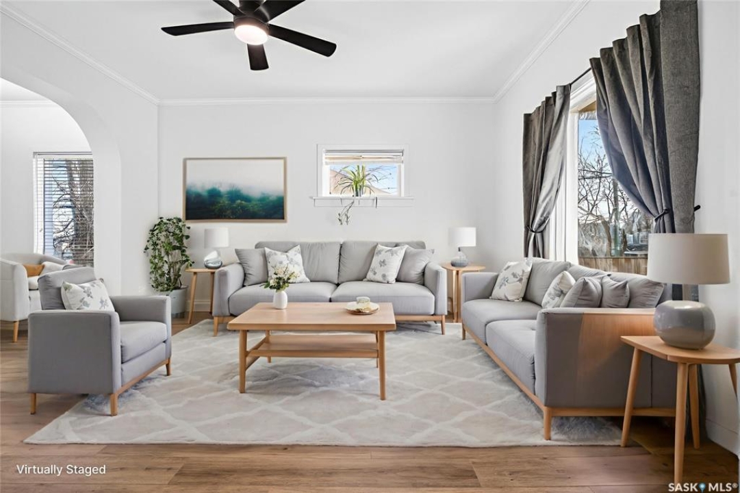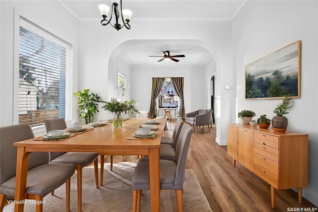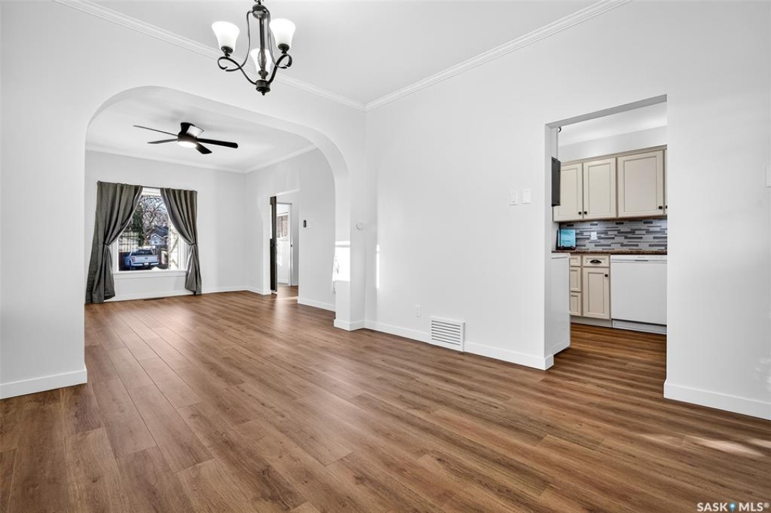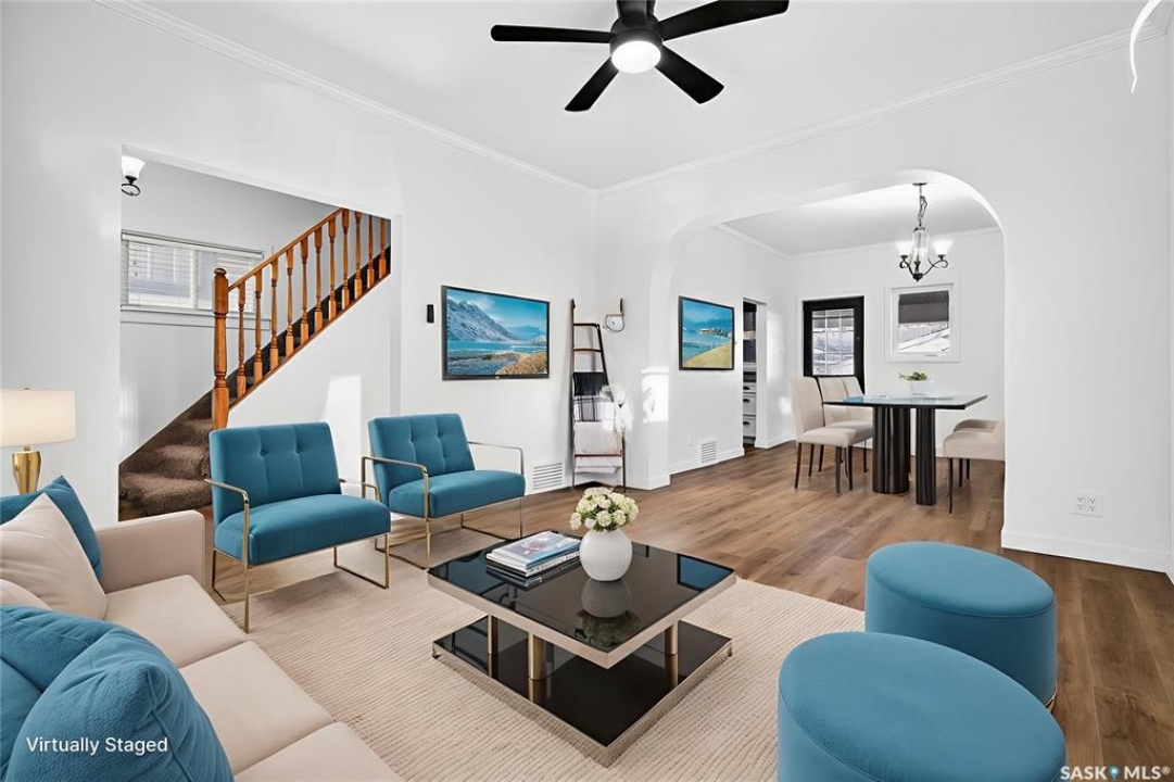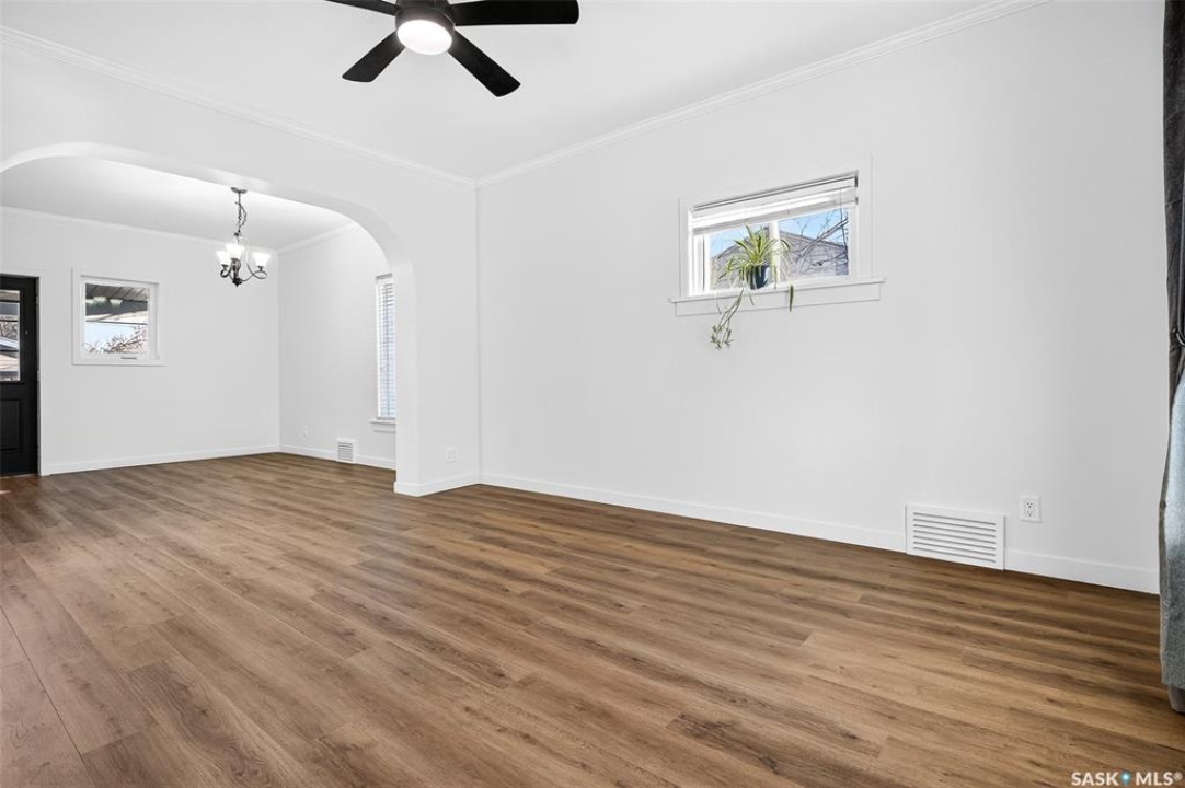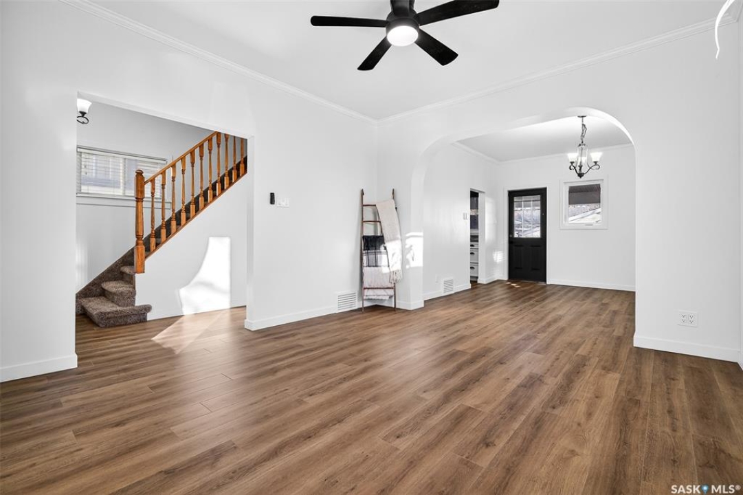 Welcome to 837 5th Ave NW — a charming, updated home close to elementary schools! This move-in-ready property blends classic character with modern upgrades including new electrical, all new flooring, trim, lighting, and ceiling fans throughout. The main floor features bright living and dining areas with laminate flooring and crown molding, plus a functional kitchen with glass tile backsplash, fridge, stove, dishwasher, and microwave range. Upstairs offers three bedrooms, each refreshed with new carpet, trim, doors, and hardware. The bathroom has been fully updated with a new vanity, toilet, and taps. Enjoy additional space in the basement with a cozy den, laundry area, and high-efficiency furnace. Exterior highlights include vinyl siding, aluminum soffit/fascia, new shingles on the front porch, covered back deck with metal roof, new sod, wood-fenced yard, Double Garage, and a Brand-New central air conditioner. Attic reinsulated to R40. A must-see home offering comfort, style, and convenience in a family-friendly location!