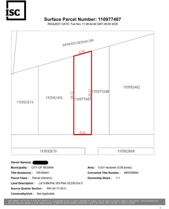 Rare commercial land opportunity. Prime high-traffic location with excellent visibility on Saskatchewan Drive near Elphinstone Street, Mosaic Stadium, and Downtown. Priced aggressively to sell, this single lot offers great opportunities for storage or future development.