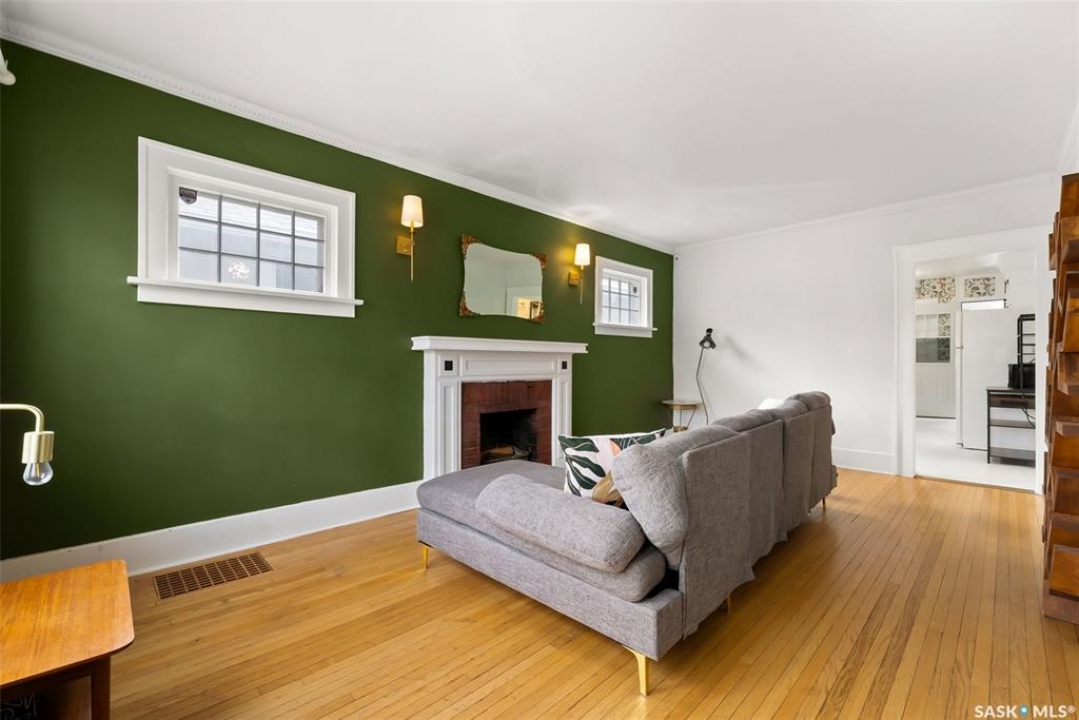 Welcome to 2314 Elphinstone Street, a home filled with character, personality, and potential. Nestled on a beautiful tree-lined street just steps from Kwanis Waterfall Park, Wascana Park, bike paths, shopping, and schools, this 3-bedroom, 2-bath bungalow is full of charm while still allowing space to make it your own. The front entry opens to a bright living room where original hardwood flooring and a wood-burning fireplace create a cozy, welcoming space. The dining area and kitchen continue the home's unique appeal with two-toned cabinets, open shelving, and all appliances included, along with a recent kitchen refresh that adds both style and function. Down the hall are two comfortable bedrooms with generous closets and an updated bathroom with crisp subway tiles, featuring a newer tub, vanity, and toilet. The lower level adds great versatility with a spacious family room, laundry area with washer and dryer, an updated three-piece bath, and an additional bedroom that could serve as a guest room, home office, or potential mortgage helper. Notable updates include some windows, high-efficiency furnace (2019), sewer line (2022), and kitchen refresh to note a few. The backyard offers a large deck, single detached garage, and the opportunity to create your own outdoor oasis. Full of charm and ready for a new chapter, this lovely home offers quick possession so you can be settled in time for the holidays! Contact your agent today for a private showing.