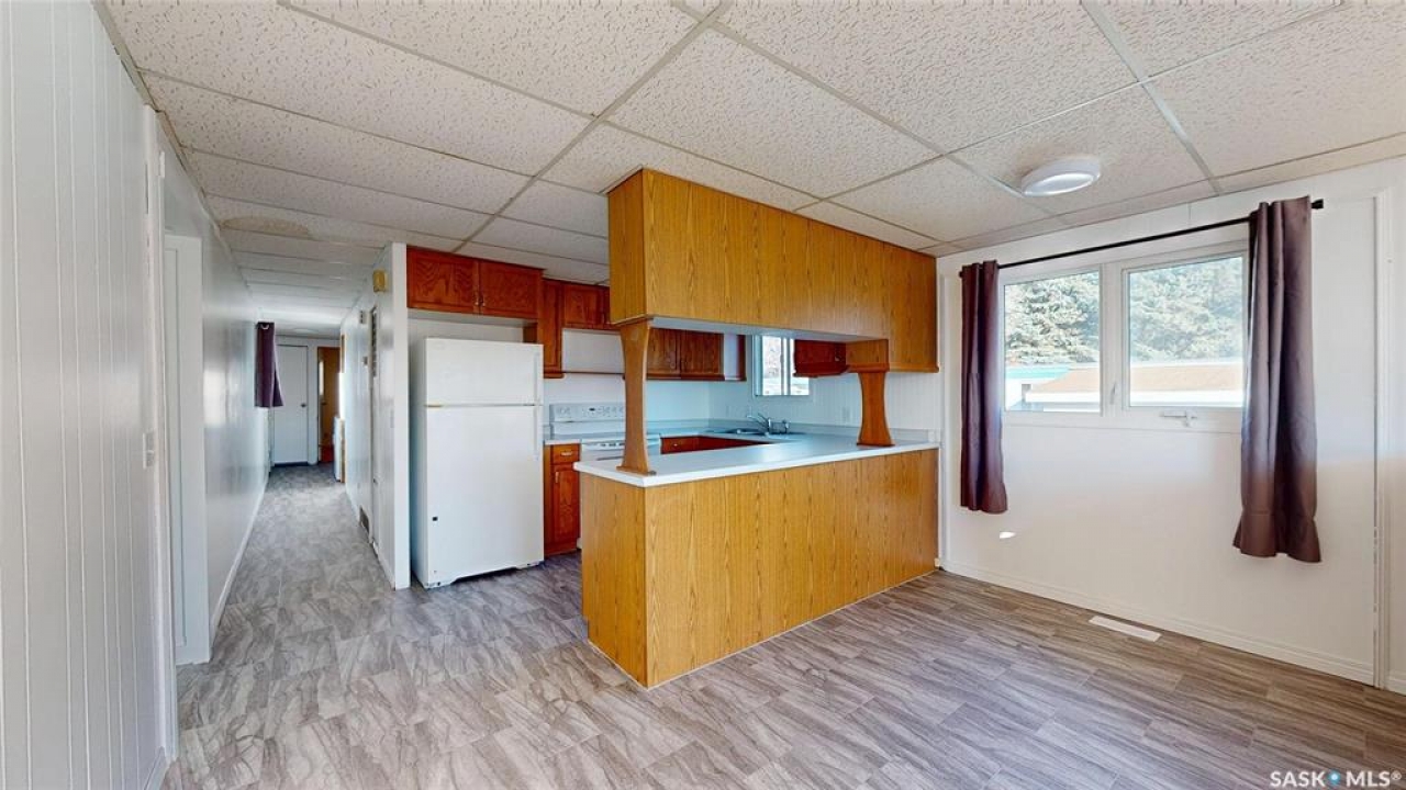 talk about AFFORDABLE living!! 211 railway avenue; situated in the quiet community of wawota — this 1978 mobile home was moved to town in 2012 and features 2 bedrooms, open concept kitchen, dining, living, a 1-4pc bathroom, and laundry all on one level...no need to worry about a basement on this one! Buyers will enjoy the comforts of just shy of 1000 SQFT of living space, updated linoleum flooring, freshly painted walls, good sized kitchen, updated furnace, and a few new windows, all situated on an OWNED 39' x 120' lot! With the possibility of a $350/month mortgage payment with just 5% down...what more could a person ask for? AFFORDABLE PRICE—OFFERED at $48,000! Click the virtual tour link to take a quick tour of this mobile home OR call an agent to book in a showing to have a look for yourself!